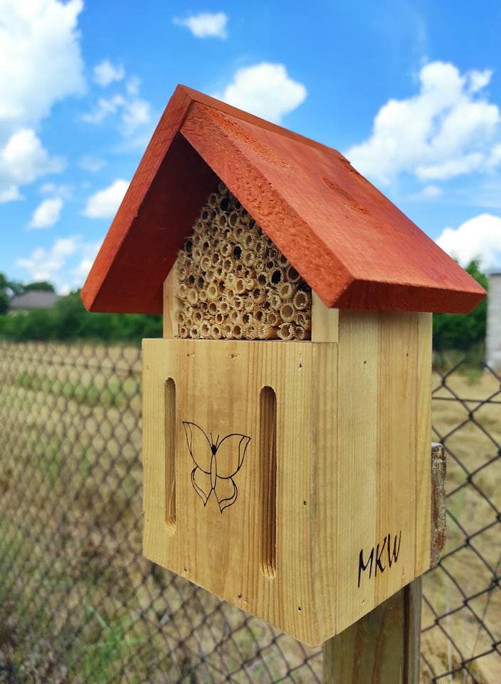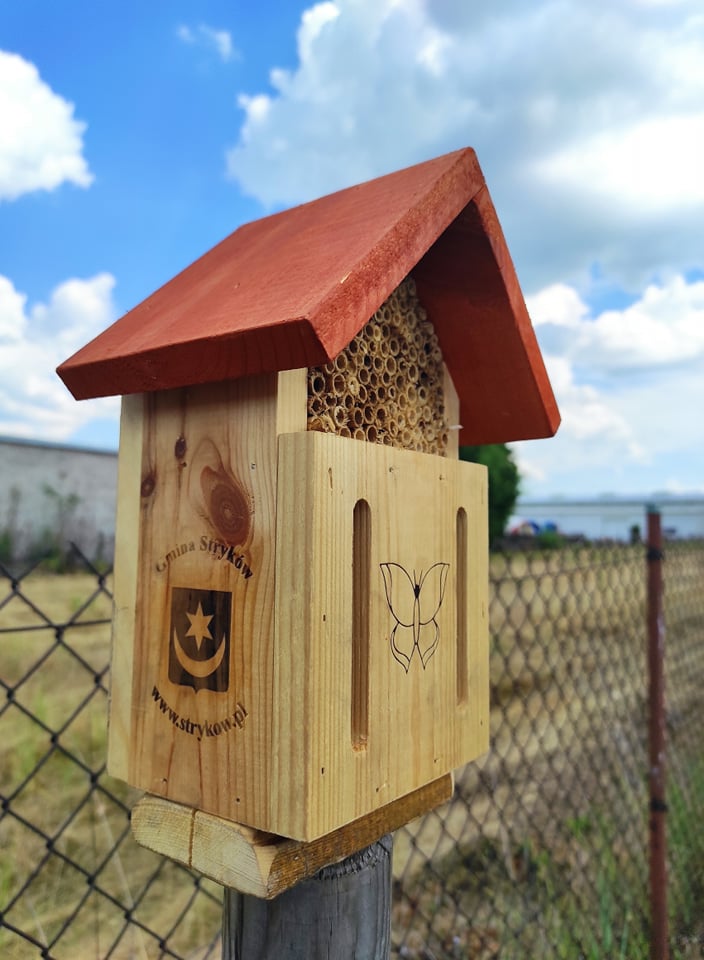 Na terenie naszego ogródka szkolnego powstaje łąka kwietna. Rośliny zasiane kilka dni temu już ładnie wykiełkowały. Obok łąki zainstalowane zostały 2 budki dla owadów. Powyższe działania to realizacja projektu "ECO GMINA STRYKÓW"