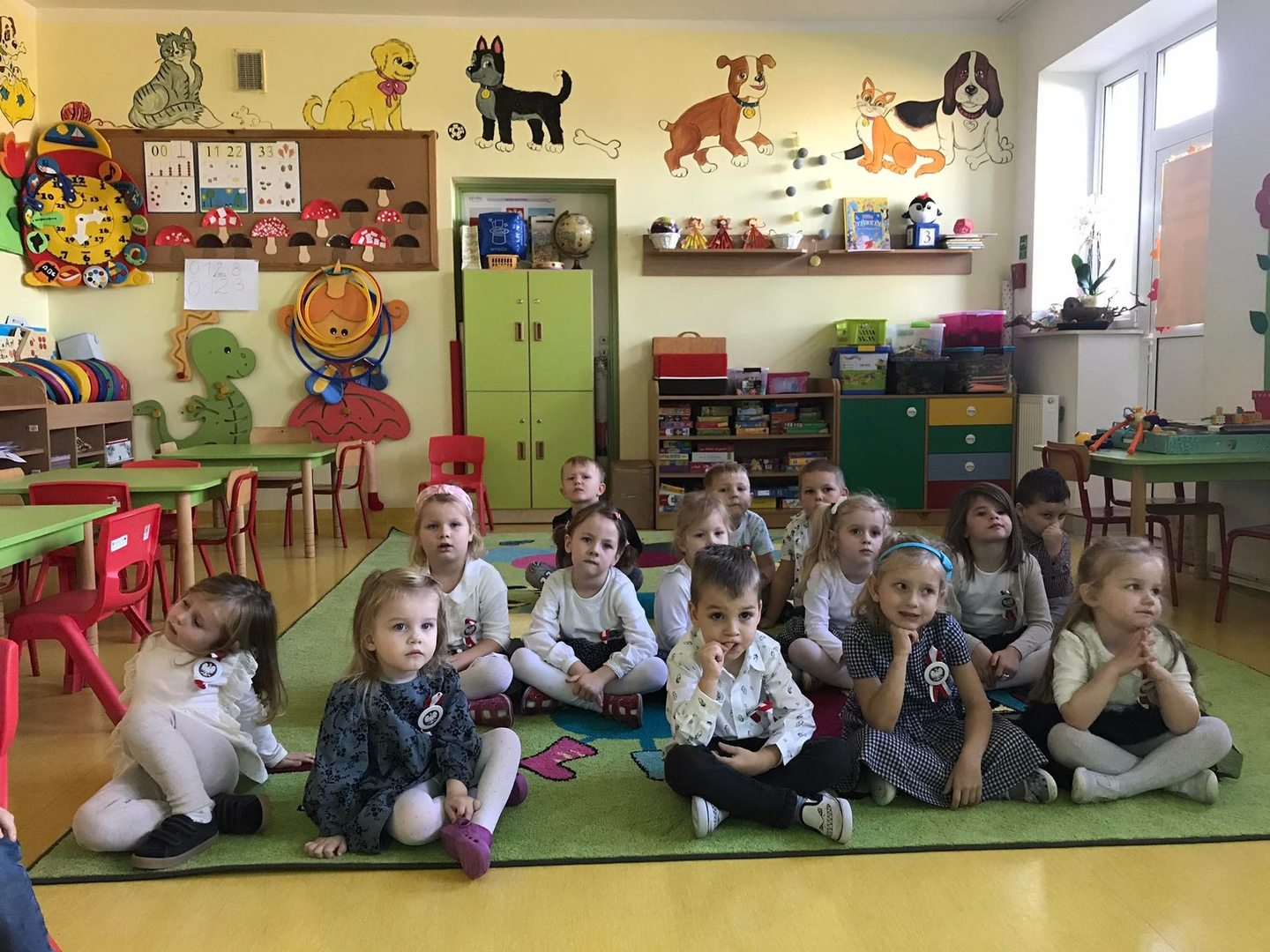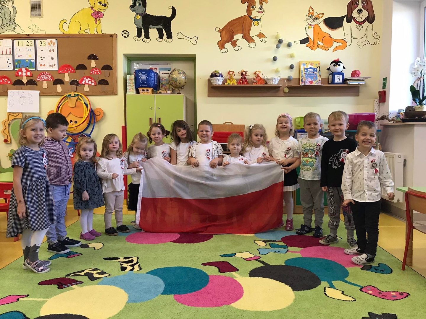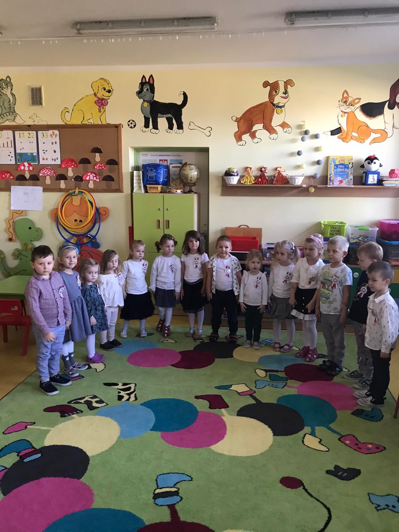 W tym roku po raz kolejny nasza szkoła włączyła się w ogólnopolską akcję "Szkoła do hymnu". 10 listopada 2021r. o godz. 11:11 dzieci z Oddziału Przedszkolnego uroczyście odśpiewały hymn państwowy. Dzieci w ramach zajęć i zabaw edukacyjnych zapoznawały się z mapą Polski, historią, zabytkami, charakterystycznymi miejscami, znanymi postaciami, muzyką, strojami regionalnymi, legendami itd. Udział w akcji jest jednym z działań rozwijających ich świadomość narodową i kształcących postawę patriotyczną.