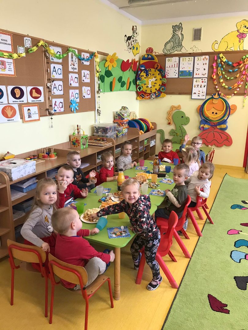 22 grudnia obchodziliśmy w naszym Oddziale przedszkolnym jeden z najpiękniejszych dni w roku – Wigilię Bożego Narodzenia. W salach przedszkolnych przedszkolaki wysłuchały życzeń, które złożyły im panie wychowawczynie. Następnie wszyscy zasiedli do pięknie, własnoręcznie przystrojonych stołów, na których czekał słodki poczęstunek. Nie zabrakło również wspólnego śpiewania kolęd i pastorałek. Czas upłynął w bardzo miłej i serdecznej atmosferze. Wszyscy poczuli zbliżające się wielkimi krokami Święta Bożego Narodzenia.