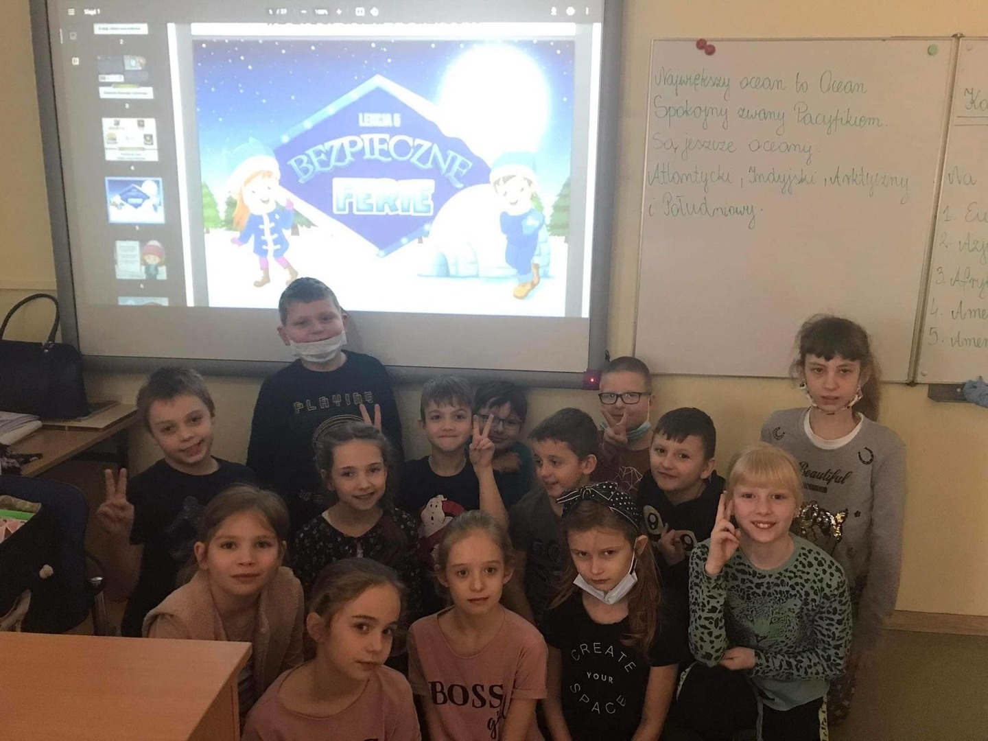 11 lutego w oddziale przedszkolnym i klasach I - III przeprowadzone zostały kolejne zajęcia w ramach Ogólnopolskiej Akcji Edukacyjnej „Dzieci uczą Rodziców”. Tematem lekcji 3 były - „Bezpieczne ferie”. Po I części teoretyczno – multimedialnej, uczniowie pracowali w zespołach, wykonując kilka zadań, związanych z tematem lekcji: - rozwiązywali zagadki, - układali i naklejali zdania z rozsypanki wyrazowej - wykonywali zadania na karcie pracy. Na zakończenie zajęć uczniowie pokolorowali obrazek zgodny z tematyką lekcji. Swoje prace zabrali do domu, aby pokazać rodzicom i porozmawiać z nimi na temat „Bezpiecznych ferii”.
