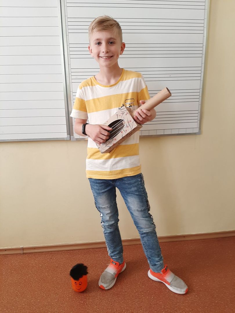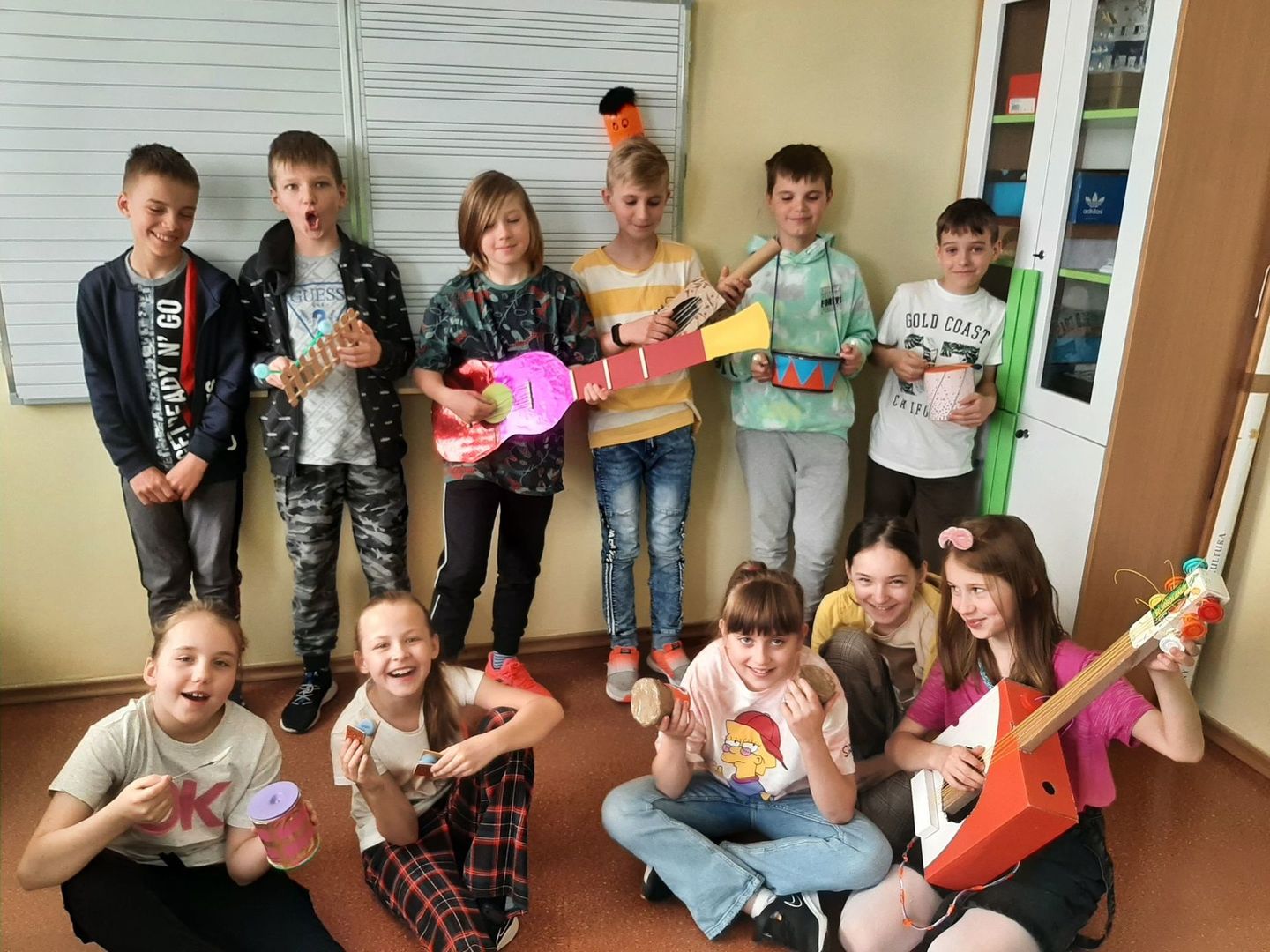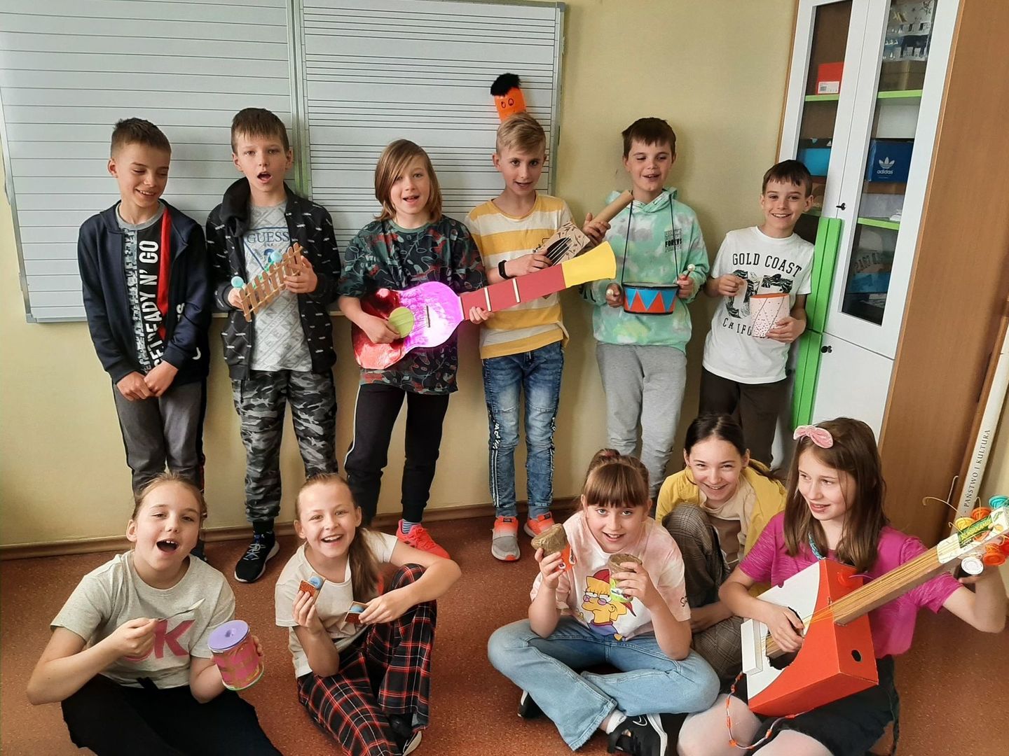 Uczniowie klasy IV własnoręcznie wykonali ekologiczne instrumenty muzyczne. Okazało się, że aby przygotować instrument wystarczy użyć wyobraźni, a materiał z którego można go wykonać znajdziemy w każdym domu. Największą frajdą było wspólne zagranie na wykonanych instrumentach. Przyniosło ono uśmiechu radości i dobrej zabawy. Prace zostały wykonane w ramach realizacji lekcji muzyki pod kierunkiem p. Bożeny Urqidi.