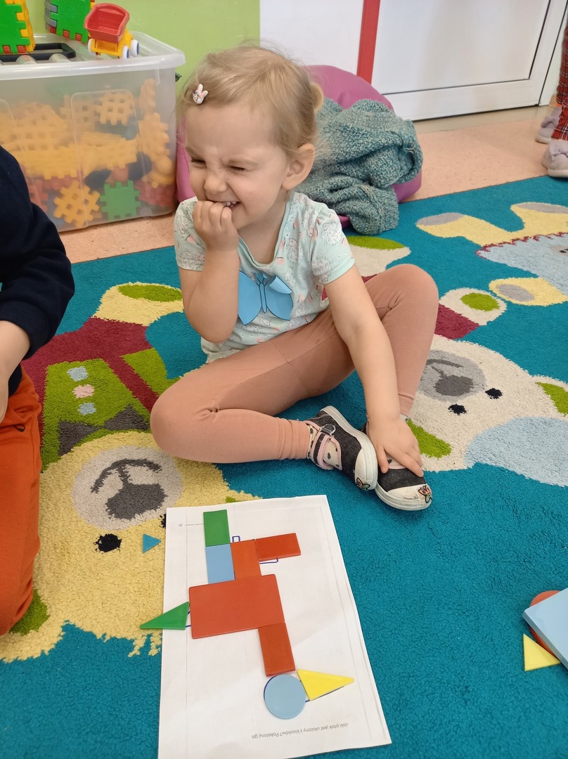 Kwadrat, trójkąt, koło dziś w przedszkolu będzie na pewno wesoło.
