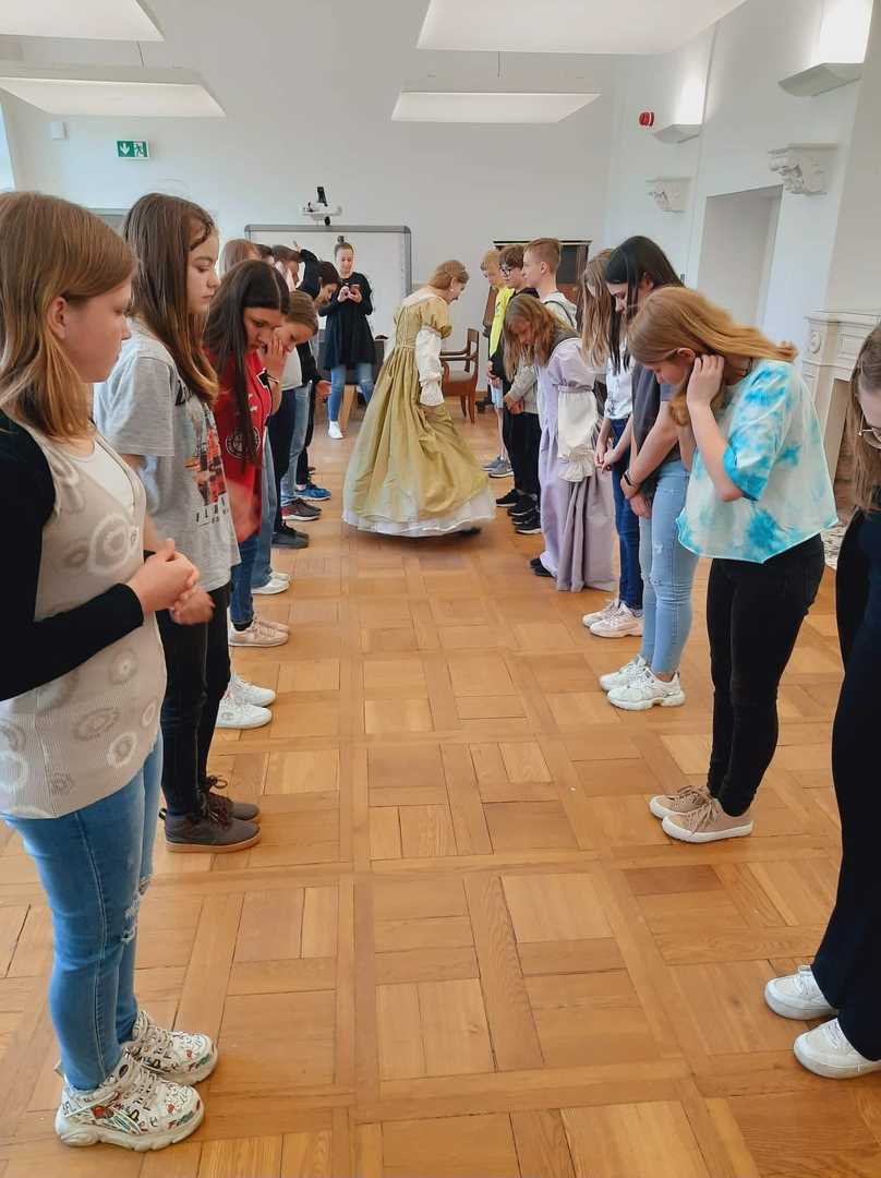 W Warszawie najpierw udaliśmy się do fragmentu muru getta przy ul. Złotej. Następnie poszliśmy Królewskim Traktem na Plac Zamkowy. Tam podziwialiśmy Zamek Królewski i Kolumnę Zygmunta. Stamtąd podeszliśmy do pomnika Małego Powstańca. Kolejnym punktem wyjazdu był Pałac w Wilanowie, gdzie uczniowie uczestniczyli w zorganizowanych warsztatach. Po wizycie w Wilanowie udaliśmy się do Łazienek Królewskich i spacerowaliśmy po Parku.