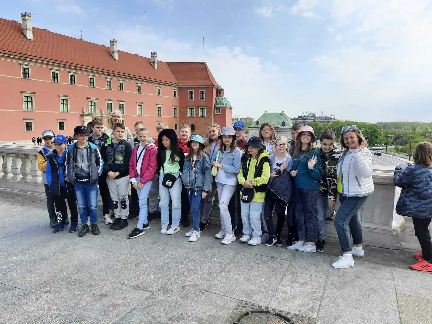 W dniu dzisiejszym (5. 05. 2022) uczniowie klas 4-7 wraz z nauczycielkami - p. Iwoną Ciecińską, p. Moniką Kalinowską, p. Aleksandrą Miller, p. Barbarą Antczak- Sadowską udali się na wycieczkę do stolicy Polski.