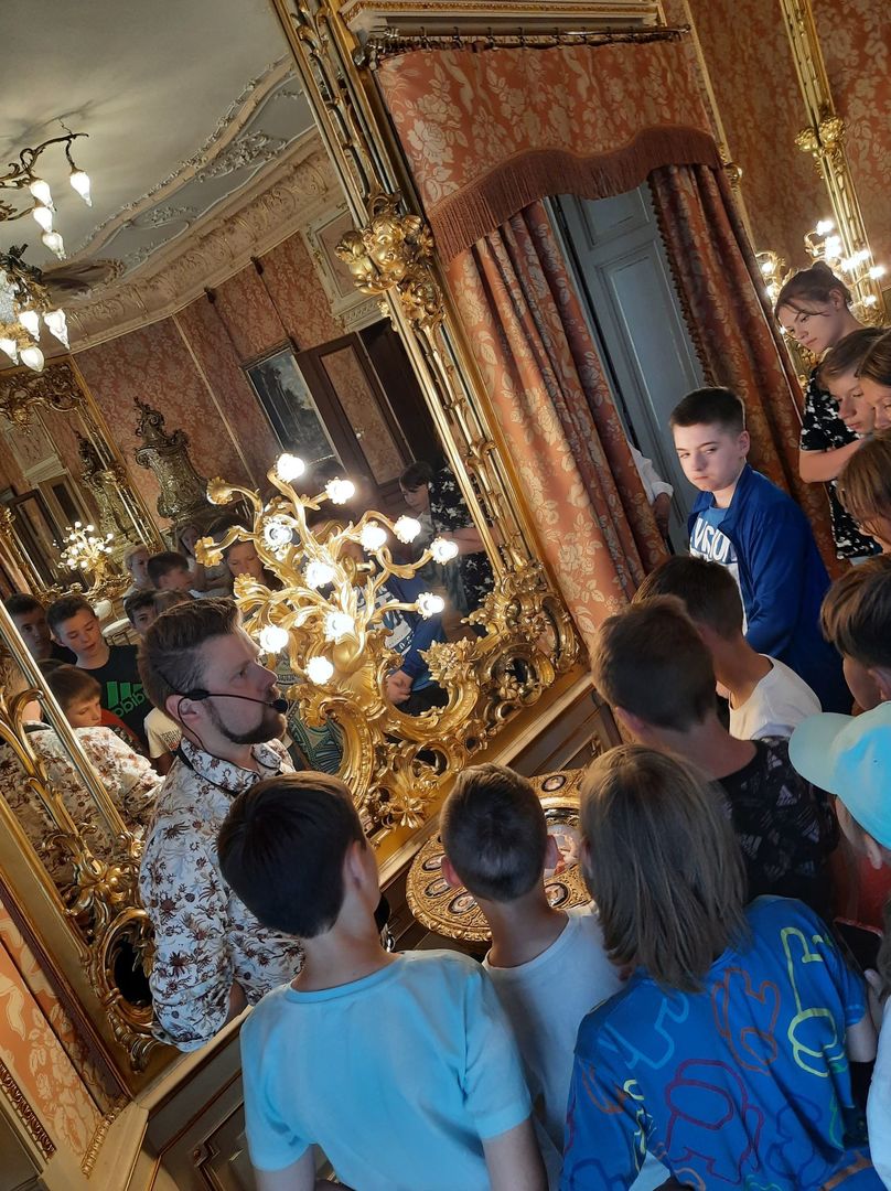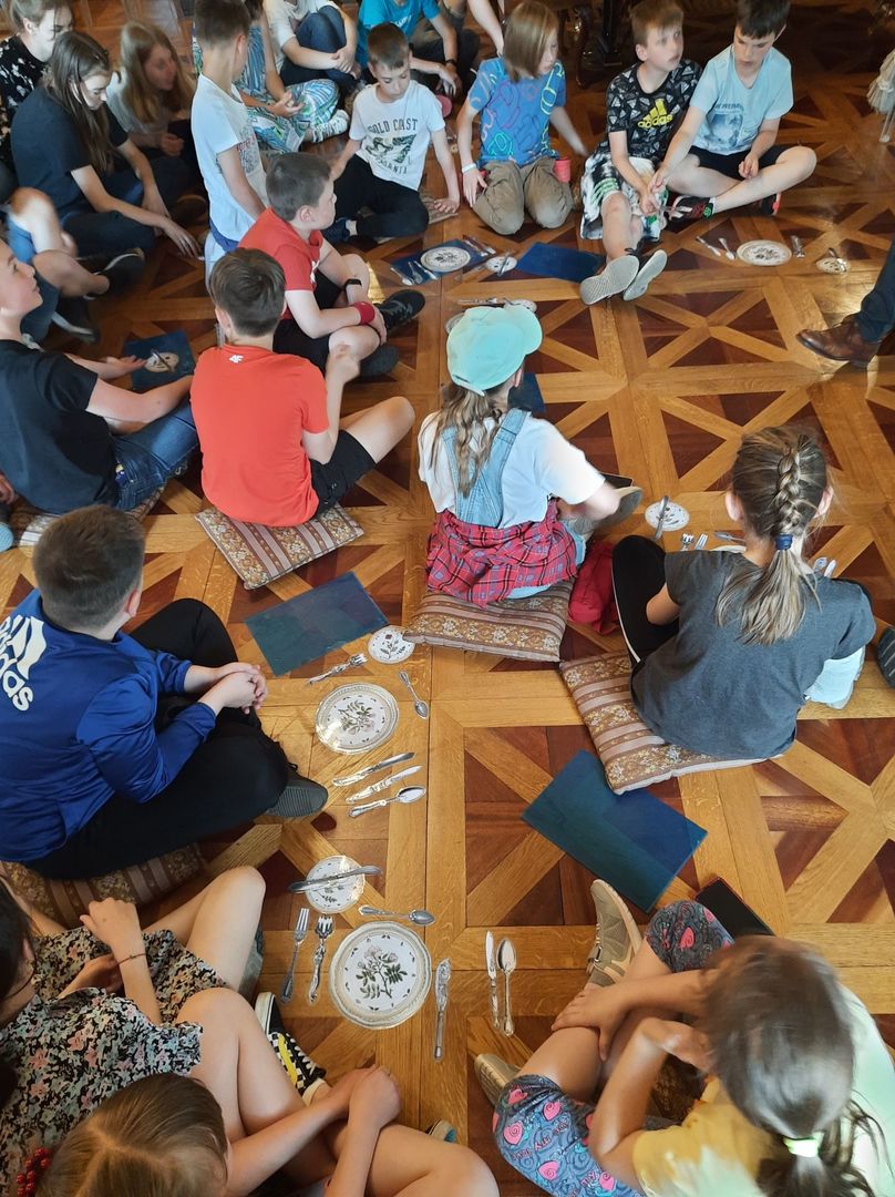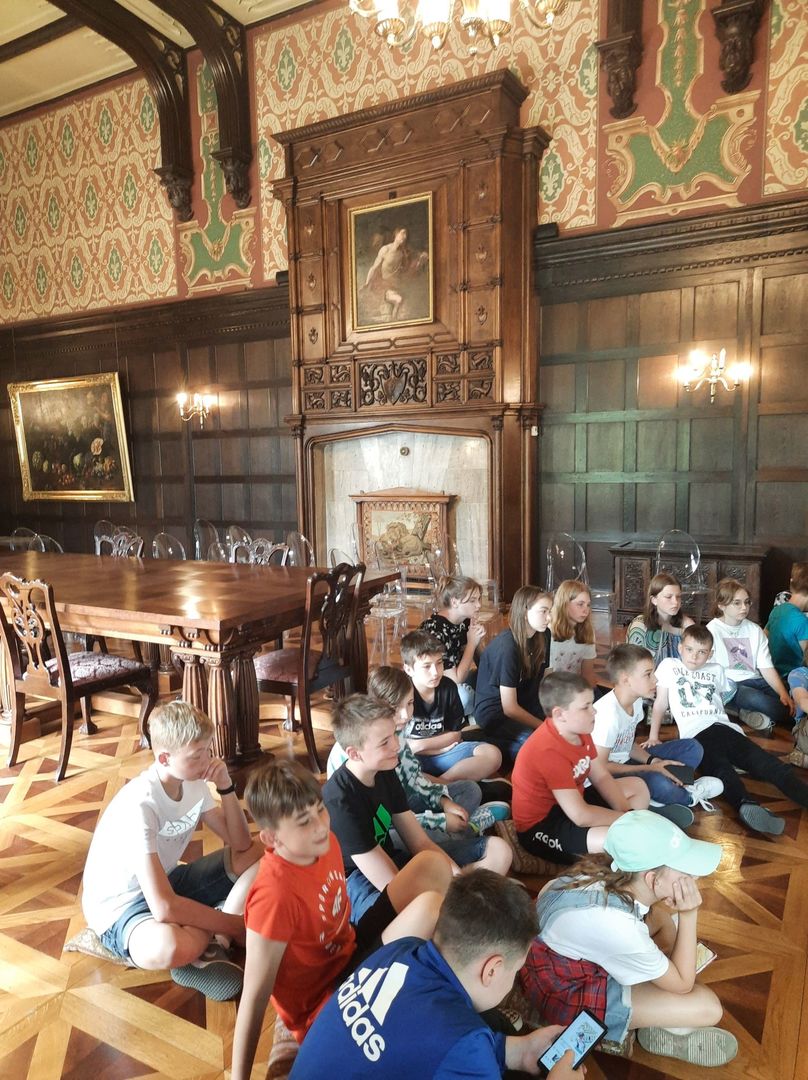 Po warsztatach w Monosferze udaliśmy się zwiedzać wnętrza pałacu Herbsta oraz poznać pałacowe maniery z XIXw.