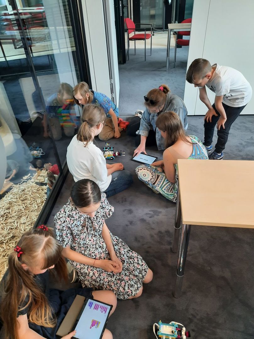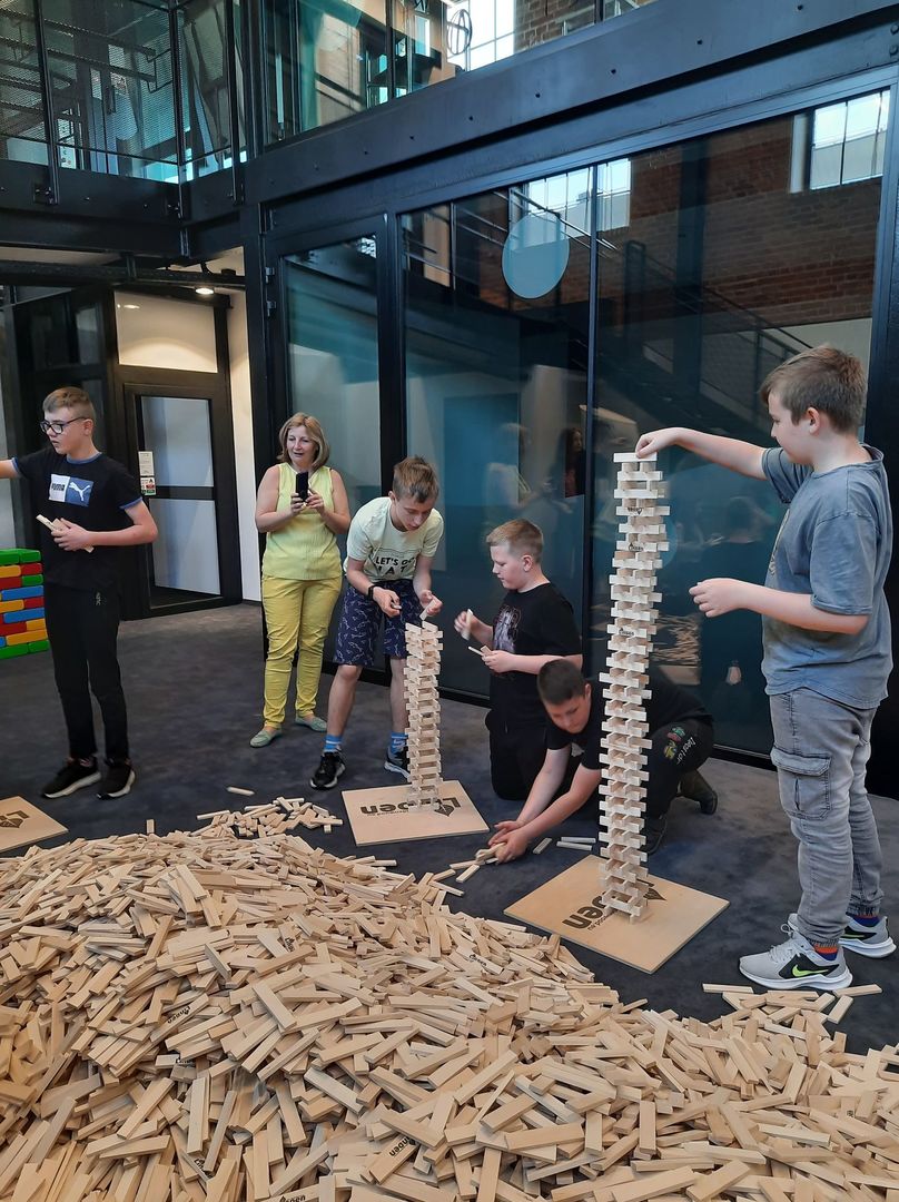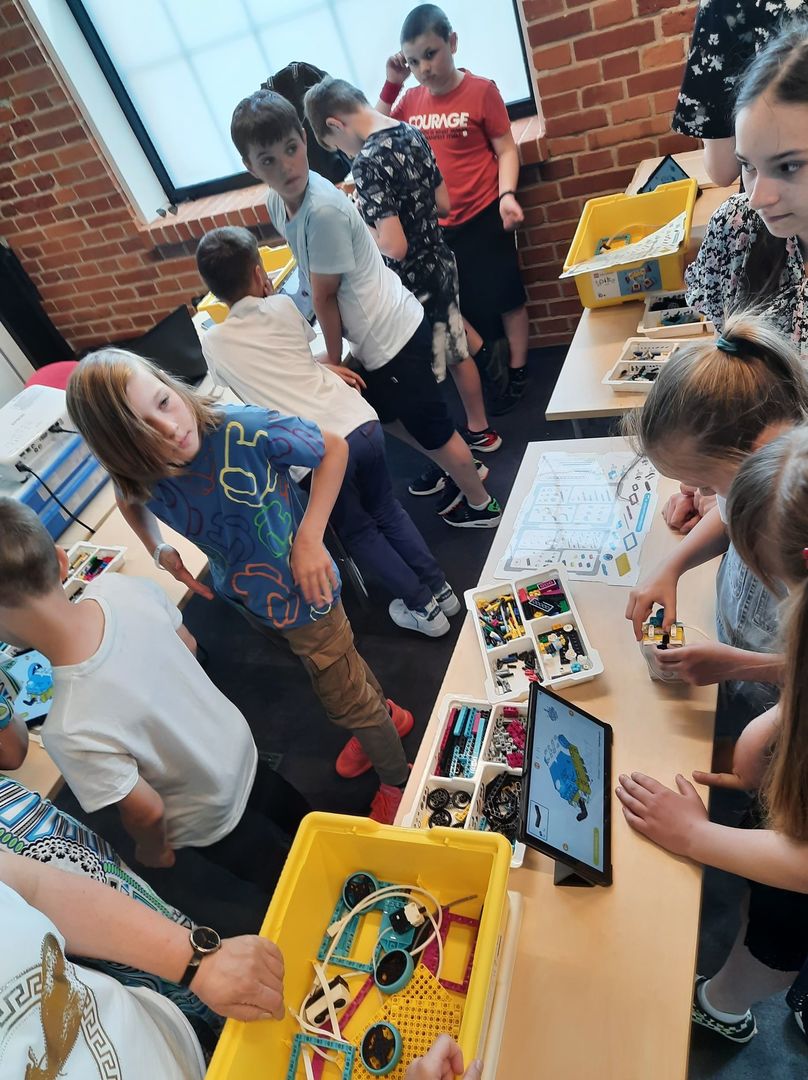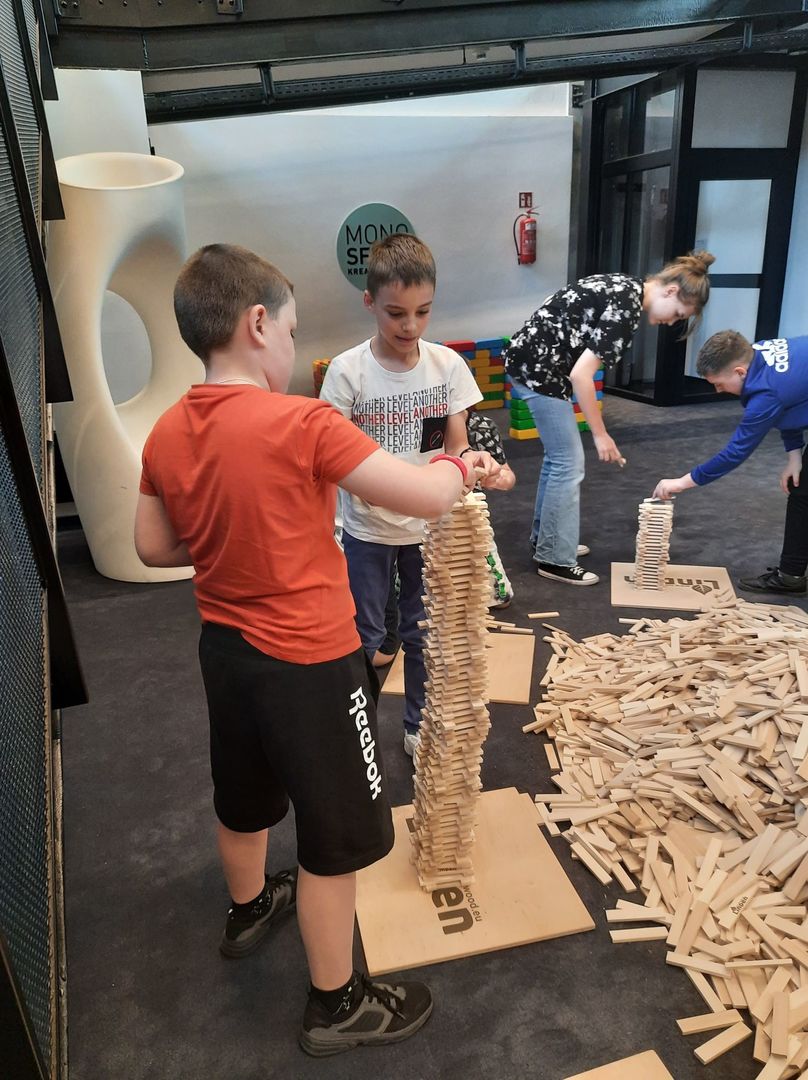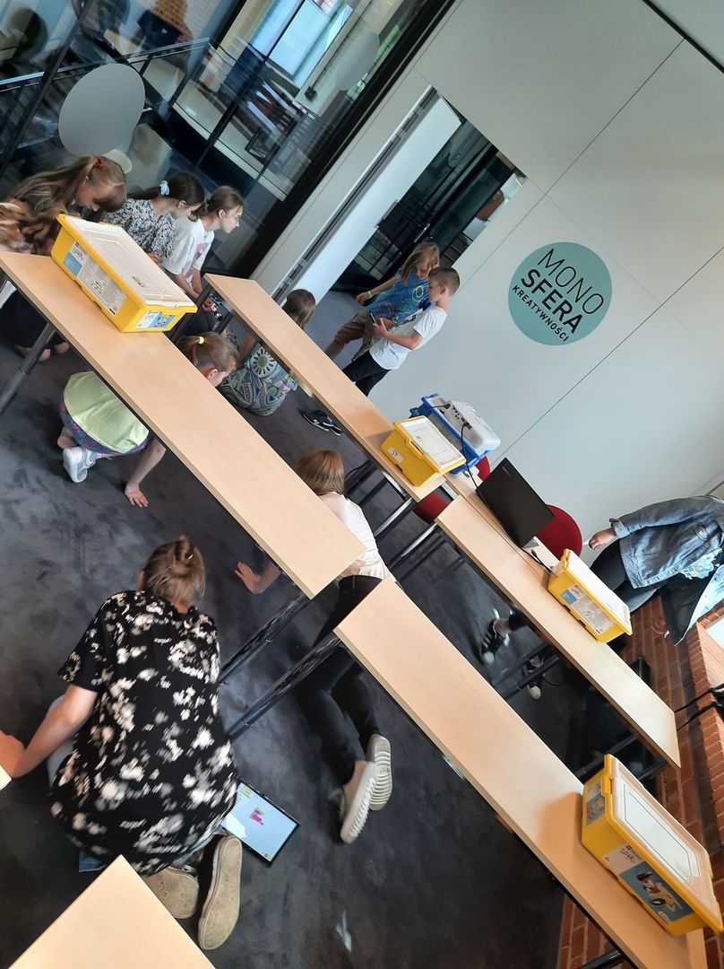 W dniu 12. 05. 2022 uczniowie klas 4-7 wzieli udział w warsztatach z LEGO robotyki oraz warsztatach w strefie klocków linden w Monosferze w Monopolis. W ramach warsztatów z LEGO robotyki z GO4Robot uczniowie pracowali w zespołach 2-3 osobowych budując robota nawiązującego do tematyki warsztatów. Wspólnie z animatorami programowali swoje roboty. Testowali działanie konstrukcji, wprowadzając zmiany w programach oddziałując na zmianę działania konstrukcji.