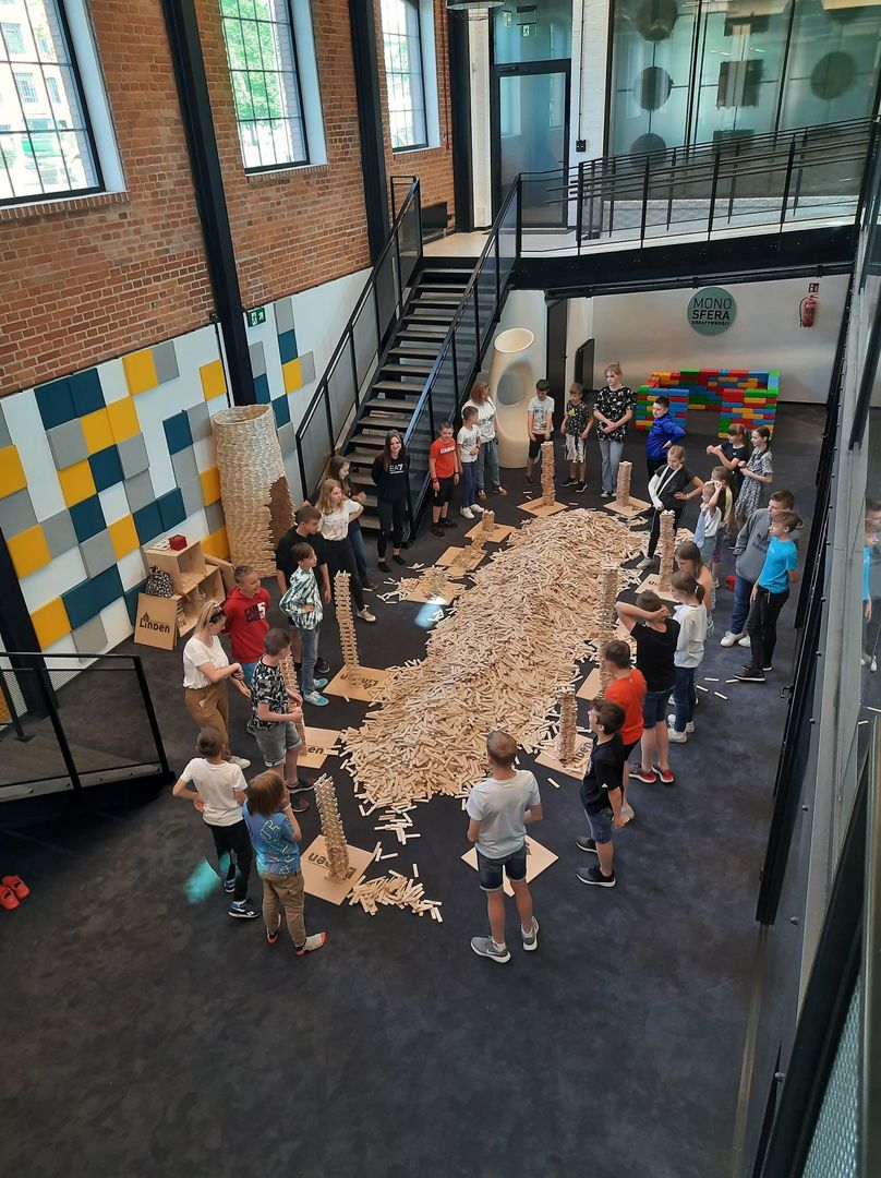 Strefa Klocków Linden liczy ponad 50 tysięcy elementów. Pozwala to na nieograniczoną niczym zabawę w konstruowanie budowli. Warsztaty uczyły: kreatywności, przestrzennego myślenia, planowania, koncentracji.