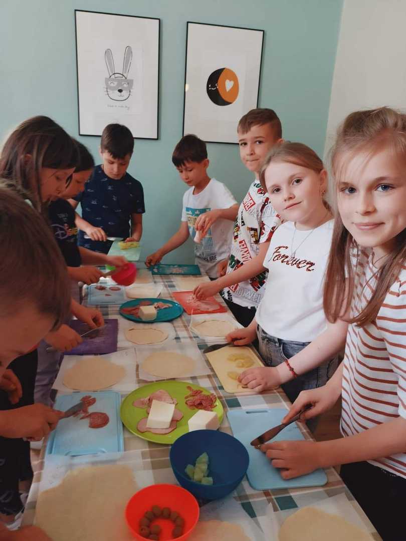 Uczniowie klas I - III w dniu 17 maja 2022r. odwiedzili Inspiro - Akademię Twórczego Rozwoju w Łodzi. Uczestniczyli tam w warsztatach kulinarnych i plastycznych. Samodzielnie przygotowali pizzę, wysłuchali ciekawostek o jej pochodzeniu, a później zjedli przygotowaną przez siebie kolorową pizzę.Warsztaty plastyczne polegały na przygotowaniu prezentu z okazji zbliżającego się Dnia Mamy. Dzieci wykonały pudełko metodą decoupage. Według własnego pomysłu zaprojektowały wzór i wybrały kolorystykę, co uczyniło każdy prezent bardzo oryginalnym. Jak zawsze wizyta w Inspiro wywołała u dzieci wiele radości.