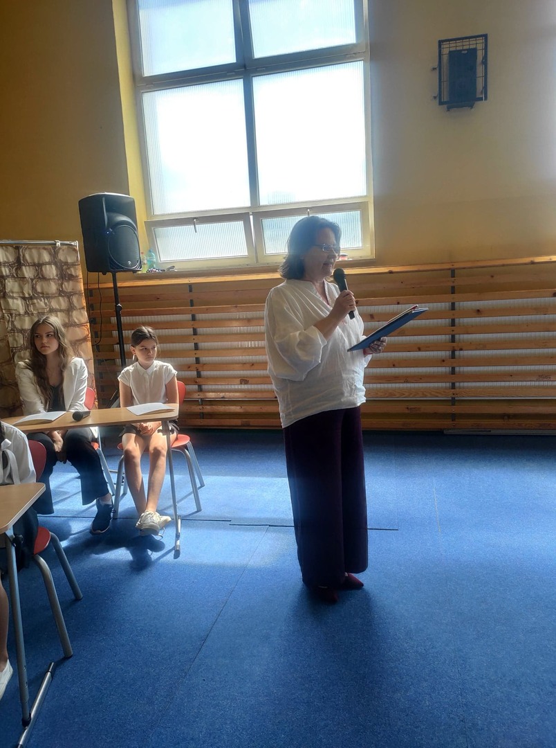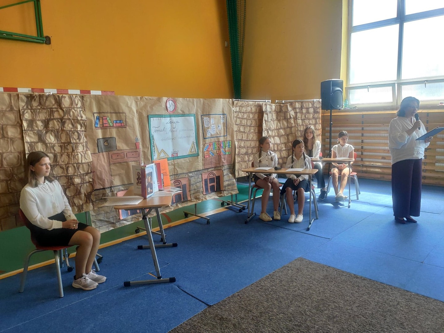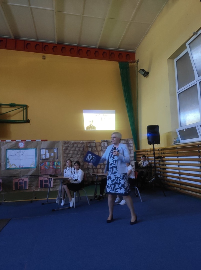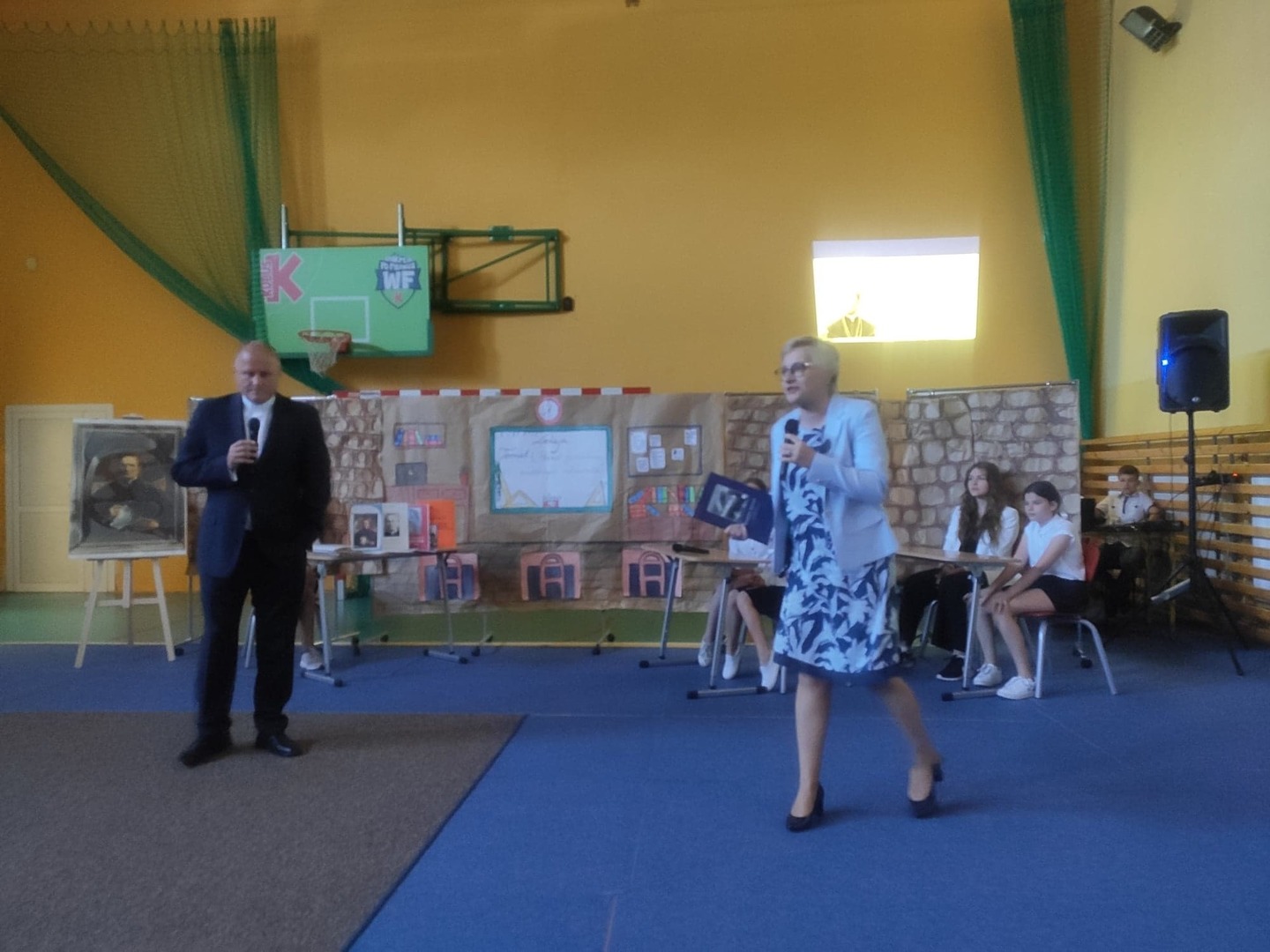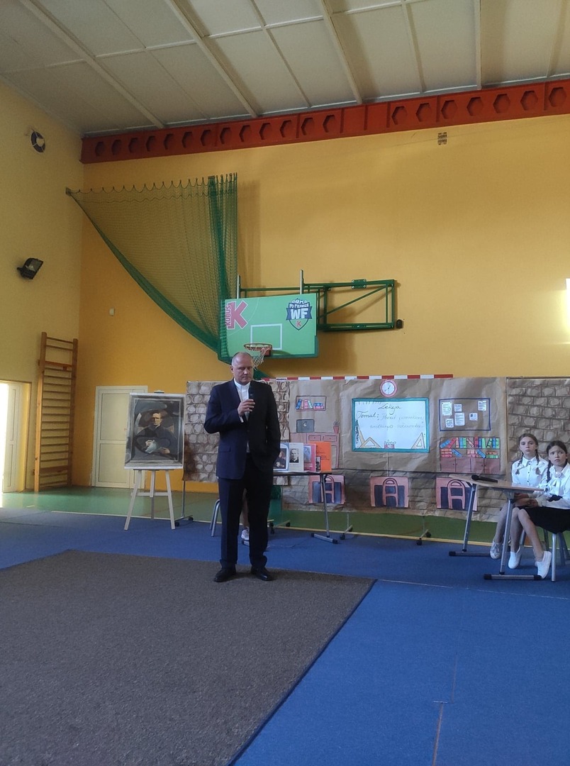 Uczniowie naszej szkoły zaś podzielili się z gośćmi swoim widzeniem postaci patrona szkoły. W krótkiej części artystycznej uczennice klasy siódmej oraz piątej zaprezentowały w formie lekcji „Przed pomnikiem wielkiego człowieka” twórczość naszych absolwentów dotyczącą osoby księdza Idziego Radziszewskiego – wiersze, listy, albumy oraz malunki.