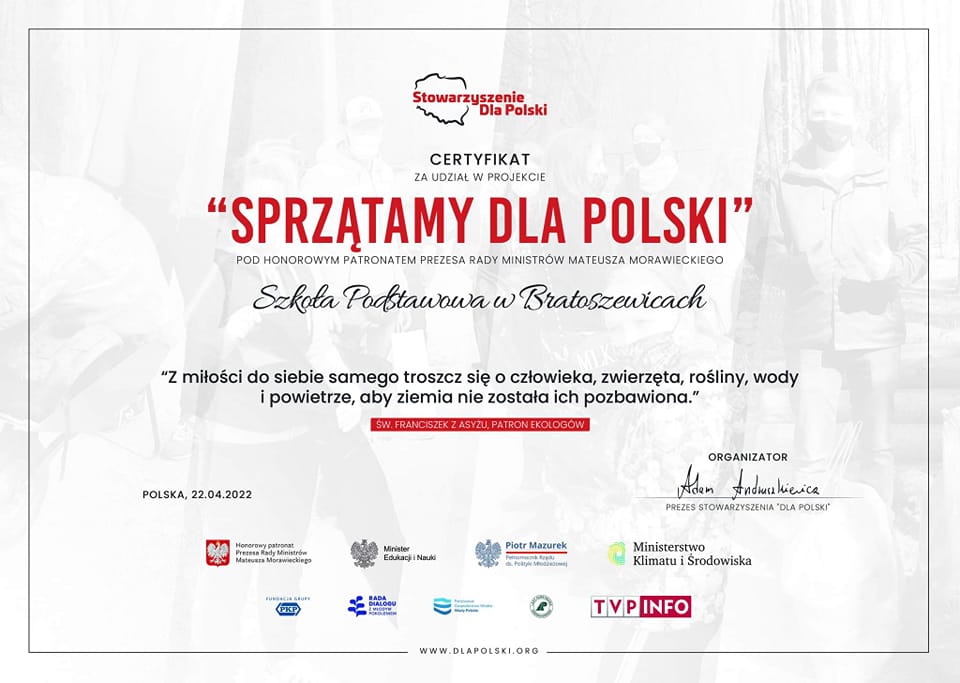 W tegorocznym Dniu Ziemi wzięliśmy udział w akcji sprzątania świata dzięki czemu otrzymaliśmy certyfikat dla naszej placówki.
