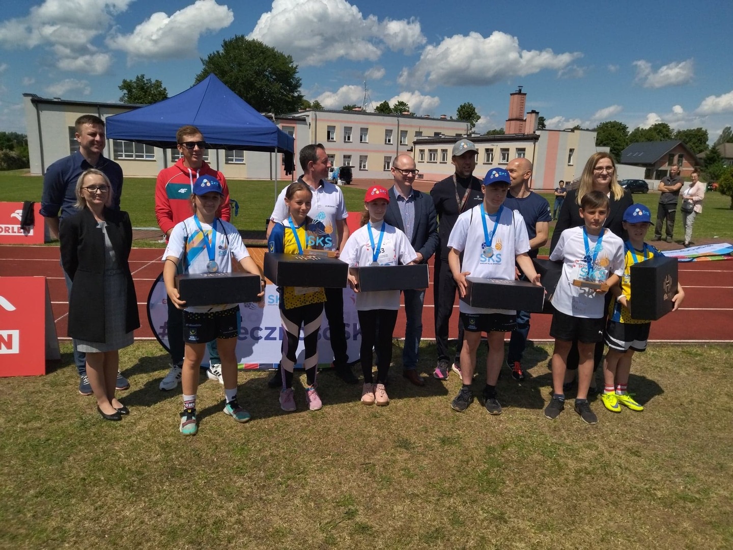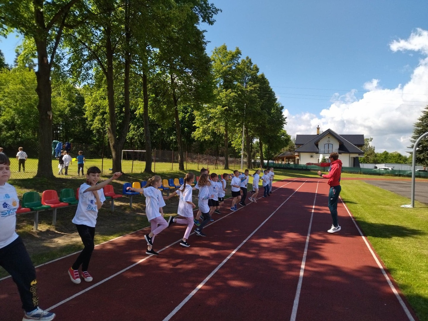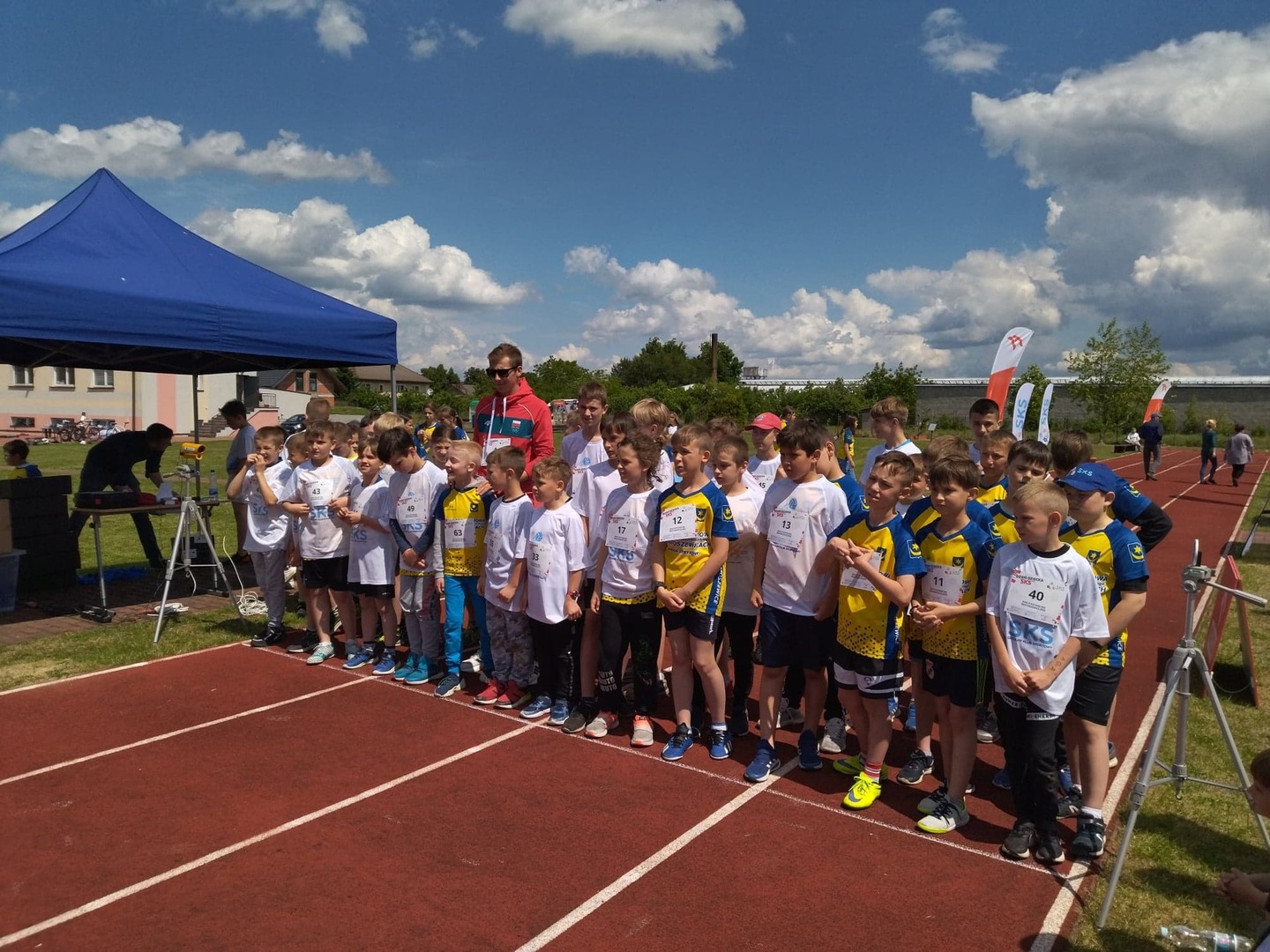rozgrzewkę i ćwiczenia lekkoatletyczne przeprowadził specjalista, olimpijczyk Mateusz Borkowski,