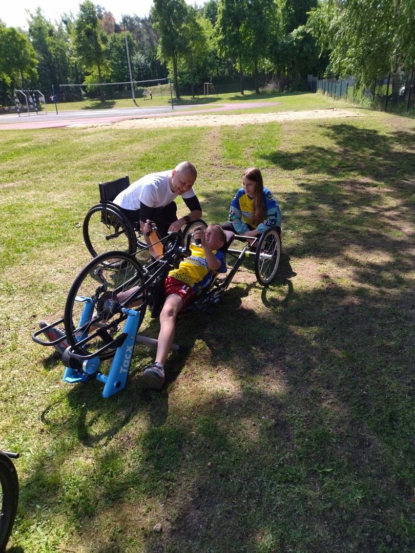 próby kręcenia na rowerach ręcznych uczniowie wykonywali pod okiem pana Krystiana Korzewskiego i jego siostry,