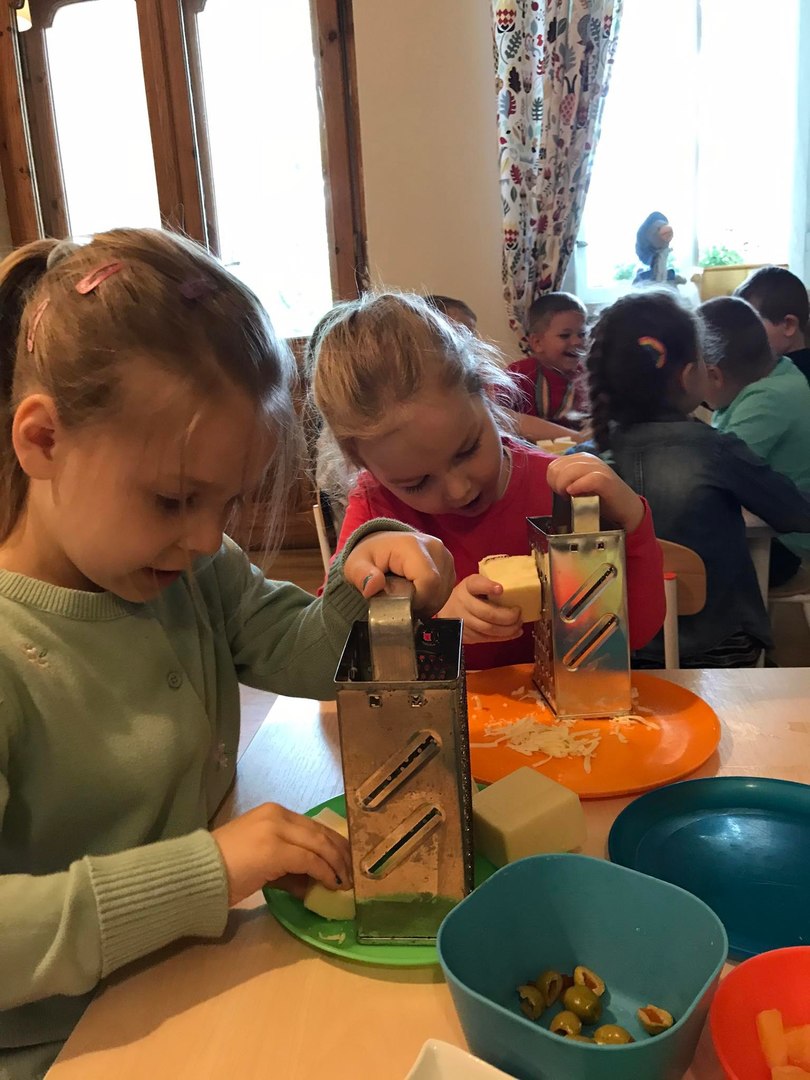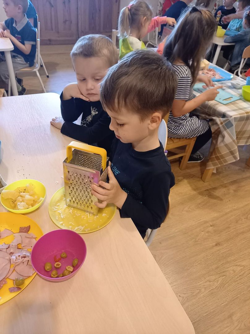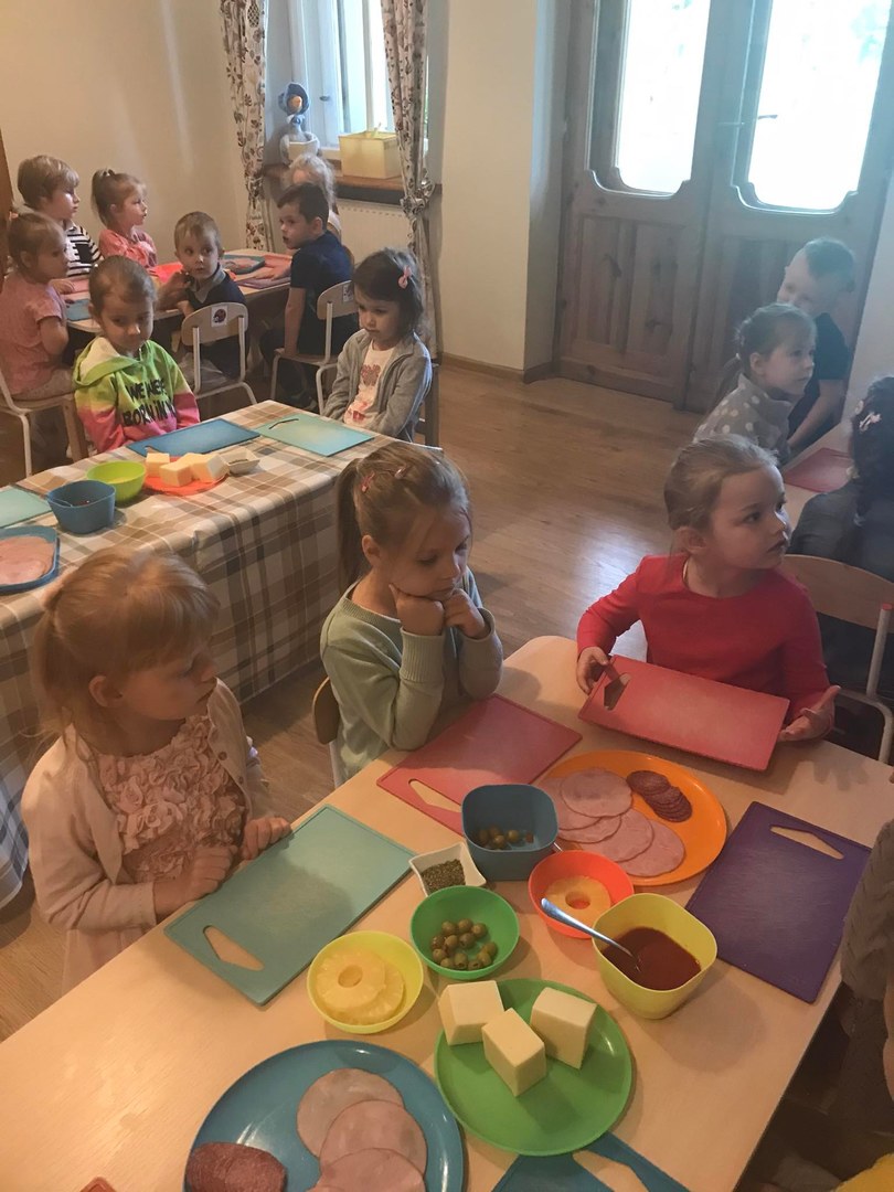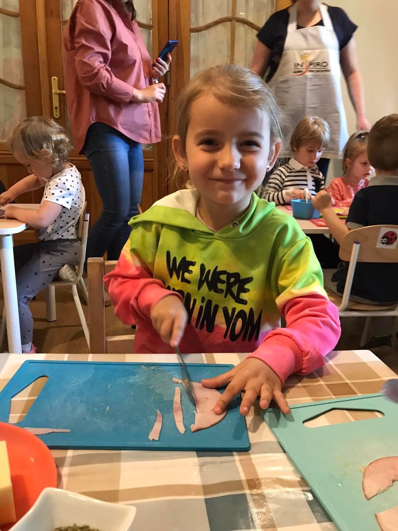 1 czerwca w Dzień Dziecka, przedszkolaki z grupy 0a i 0b wzięły udział w warsztatach robienia pizzy w Akademii Twórczego Rozwoju INSPIRO w Łodzi. Dzieci miały okazję dowiedzieć się skąd wywodzi się pizza i jak ją prawidłowo przygotowywać. Po pokazie przedszkolaki przystąpiły do samodzielnego przygotowania pizzy ze swoimi ulubionymi składnikami – wałkowały ciasto, smarowały sosem pomidorowym, układały ulubione produkty. Jak przystało na prawdziwych szefów kuchni z przygotowaniem pizzy dzieci poradziły sobie znakomicie. Zajęcia kulinarne to dla dzieci fascynująca podróż do świata smaków, zapachów i kolorów. Dzięki zabawie w gotowanie połączonej z elementami terapii sensorycznej w prosty i przyjemny sposób możemy wspierać dzieci w poznawaniu zmysłowym i rozumieniu przez nie otaczającego ich świata.