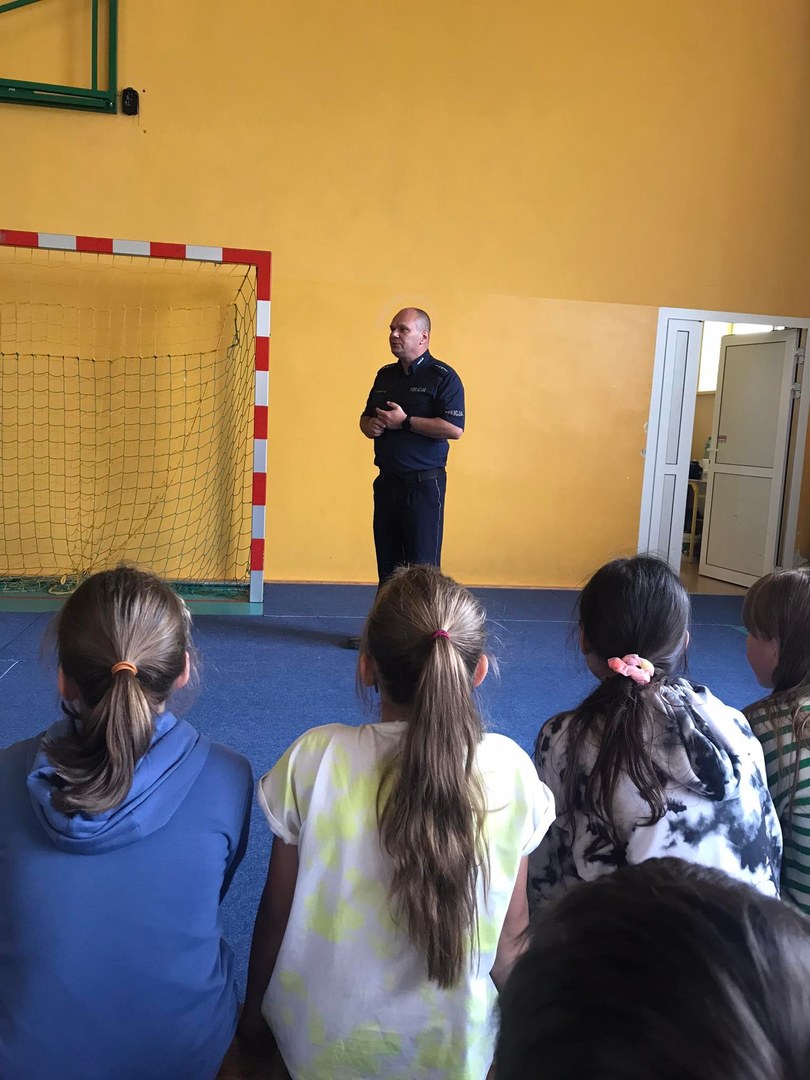 W dniach 8 i 9 czerwca 2022 w ramach działań profilaktyczno - edukacyjnych odbyło się spotkanie uczniów klas IV- VIII z funkcjonariuszem policji asp. Robertem Borowskim z KPP w Zgierzu na temat: "Odpowiedzialności prawnej nieletnich". Celem prelekcji było zapobieganie przejawom demoralizacji wśród dzieci i młodzieży. Policjant poruszył najważniejsze zagadnienia związane z odpowiedzialnością prawną nieletnich w przypadku konfliktu z prawem. Funkcjonariusz omówił konsekwencje jakie można ponieść za zachowania niezgodne z przyjętymi normami społecznymi. Ponadto poruszył temat bezpiecznego korzystania z Internetu, głównie ochrony prywatności w sieci. W związku ze zbliżającymi się wakacjami przypomniane zostały zasady bezpieczeństwa podczas pracy i zabawy w gospodarstwie rolnym ze szczególnym uwzględnieniem zagrożeń związanych z pracą maszyn rolniczych. Mamy nadzieję, że udział uczniów w prelekcjach przyczyni się do wzrostu ich świadomości o konsekwencjach niewłaściwego zachowania oraz pozwoli im uniknąć konfliktu z prawem. Spotkanie zainicjowała Wioletta Walak w ramach realizacji Programu Wychowawczo-Profilaktycznego. Tekst i zdjęcia: W. Walak