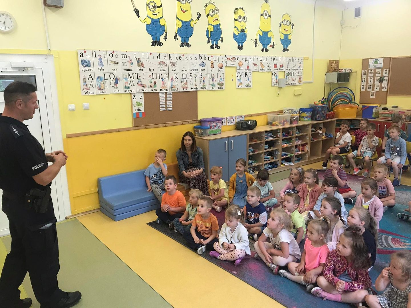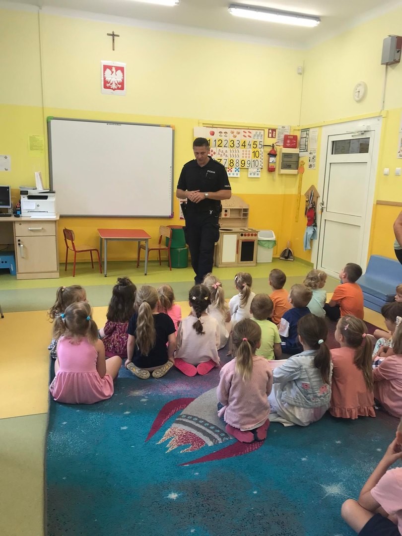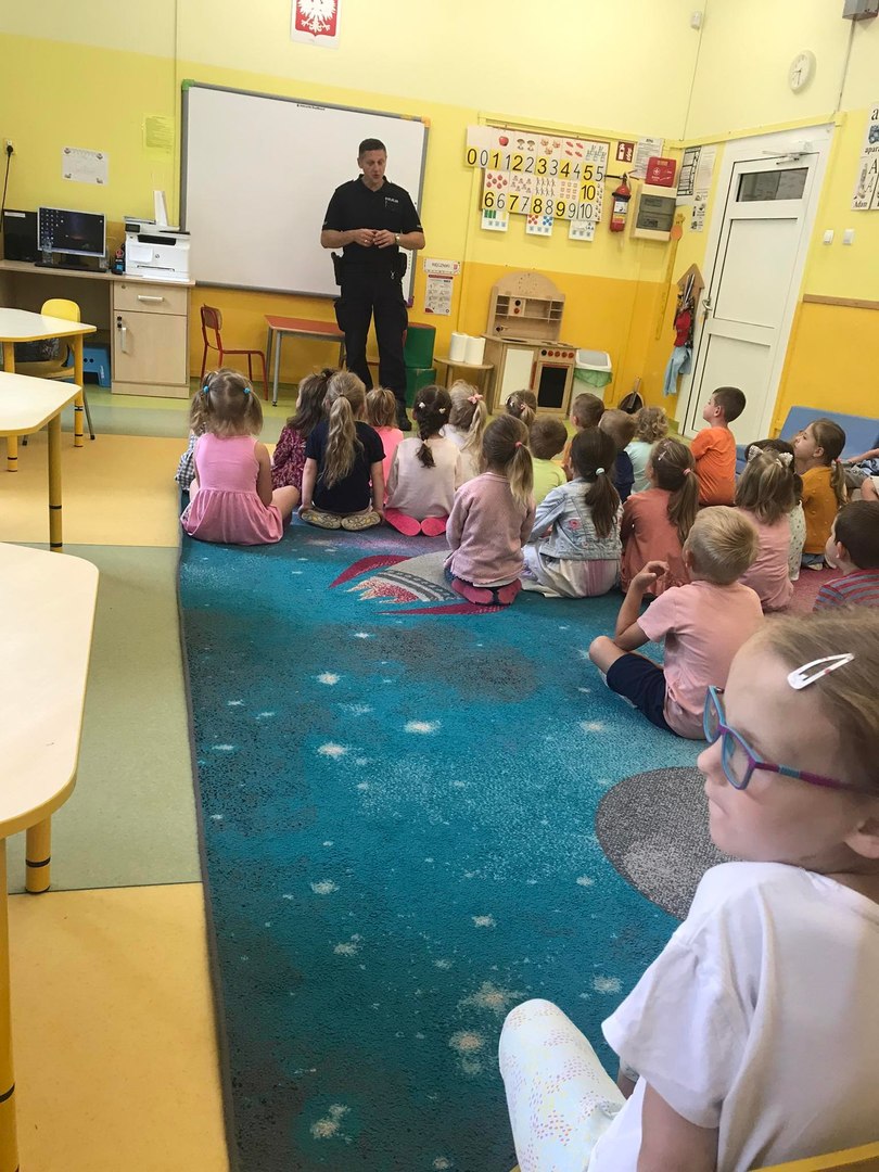 W dniu 20.06.2022. uczniów klas 0a, 0b, 0c oraz I-III odwiedził dzielnicowy p. Artur Katarzyński z Komendy Policji w Strykowie. Spotkanie zainicjowała pedagog Wioletta Walak w ramach realizacji Programu Wychowawczo- Profilaktycznego. Tematem spotkania było "Bezpieczeństwo podczas wakacji". Uczniowie dowiedzieli się, jak bezpiecznie zachowywać się podczas ferii letnich. Dzieci wspólnie z funkcjonariuszem przypomniały, jak bezpiecznie poruszać się po drodze oraz spędzać czas wolny przy akwenach wodnych i innych miejscach na świeżym powietrzu. Mamy nadzieję, że uczniowie skorzystają z dobrych rad i będą bezpiecznie wypoczywać podczas tego letniego czasu. Zdjęcia i tekst: W. Walak