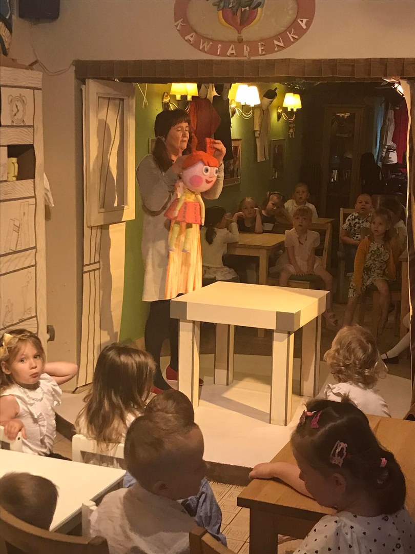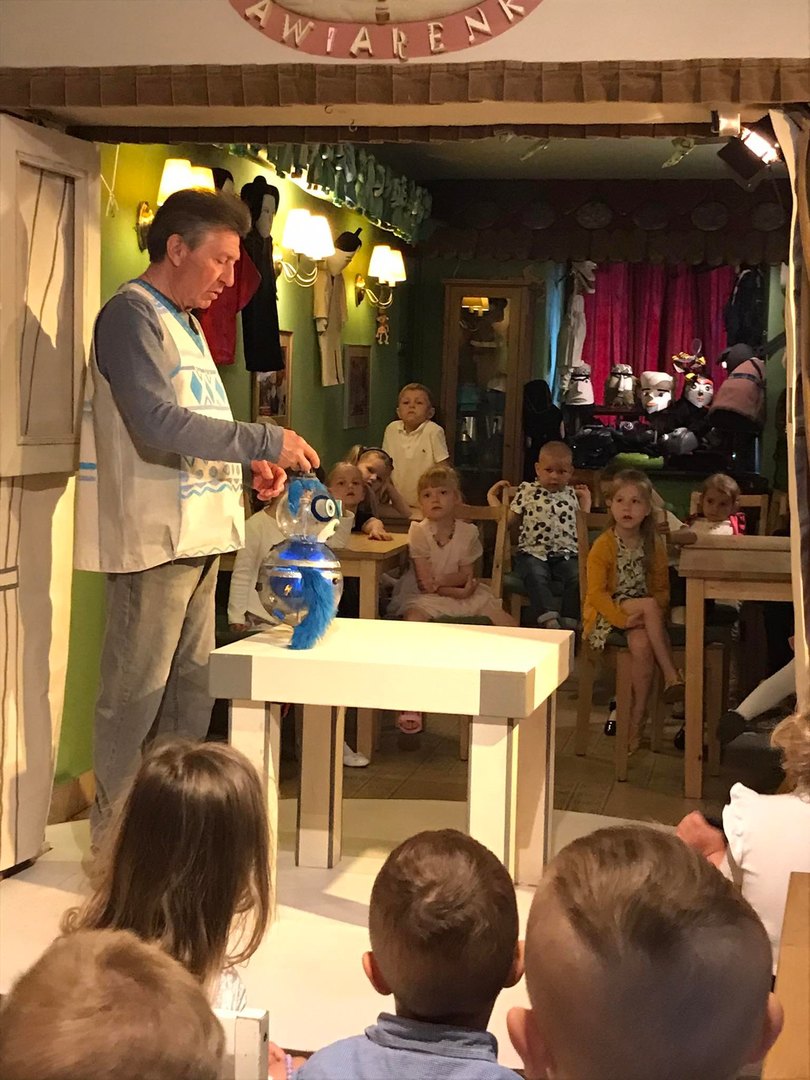 15.06.2022r. dzieci z grupy 0a i 0b pojechały do Baśniowej Kawiarenki w Łodzi na przedstawienie pod tytułem „Ada i Kosmitek”. Spektakl to historia niezwykłej przyjaźni samotnej dziewczynki Ady z mądrym przybyszem z innej planety – Kosmitkiem, misiem który ląduje pewnego dnia pod jej oknem w wyniku awarii pojazdu kosmicznego. Ada pomaga wystraszonemu Kosmitkowi, uczy go życia „na Ziemi”, pomaga także powrócić do domu. Przedstawienie uczy nas, że trzeba pomagać innym ludziom i stworzeniom i być wrażliwym na ich krzywdę. Po zakończeniu bajki aktorzy opowiedzieli dzieciom o oryginalnych i nietypowych kostiumach, dekoracjach i akcesoriach wykorzystanych w spektaklu oraz o tworzeniu lalki sycylijskiej. To była wspaniała przygoda!!!