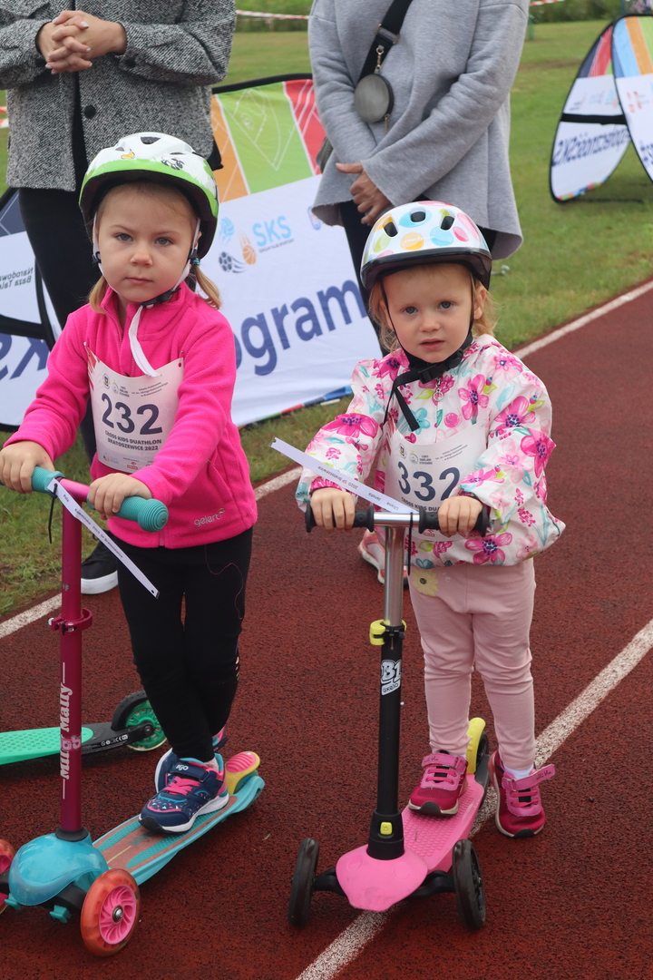 Na bieżni boiska zainstalowany został punkt startowy, z którego młodsi uczestnicy ruszali na hulajnogach bądź rowerach, starsi zaś rozpoczynali duathlon od biegu.
