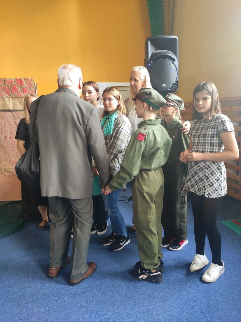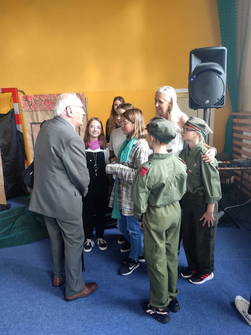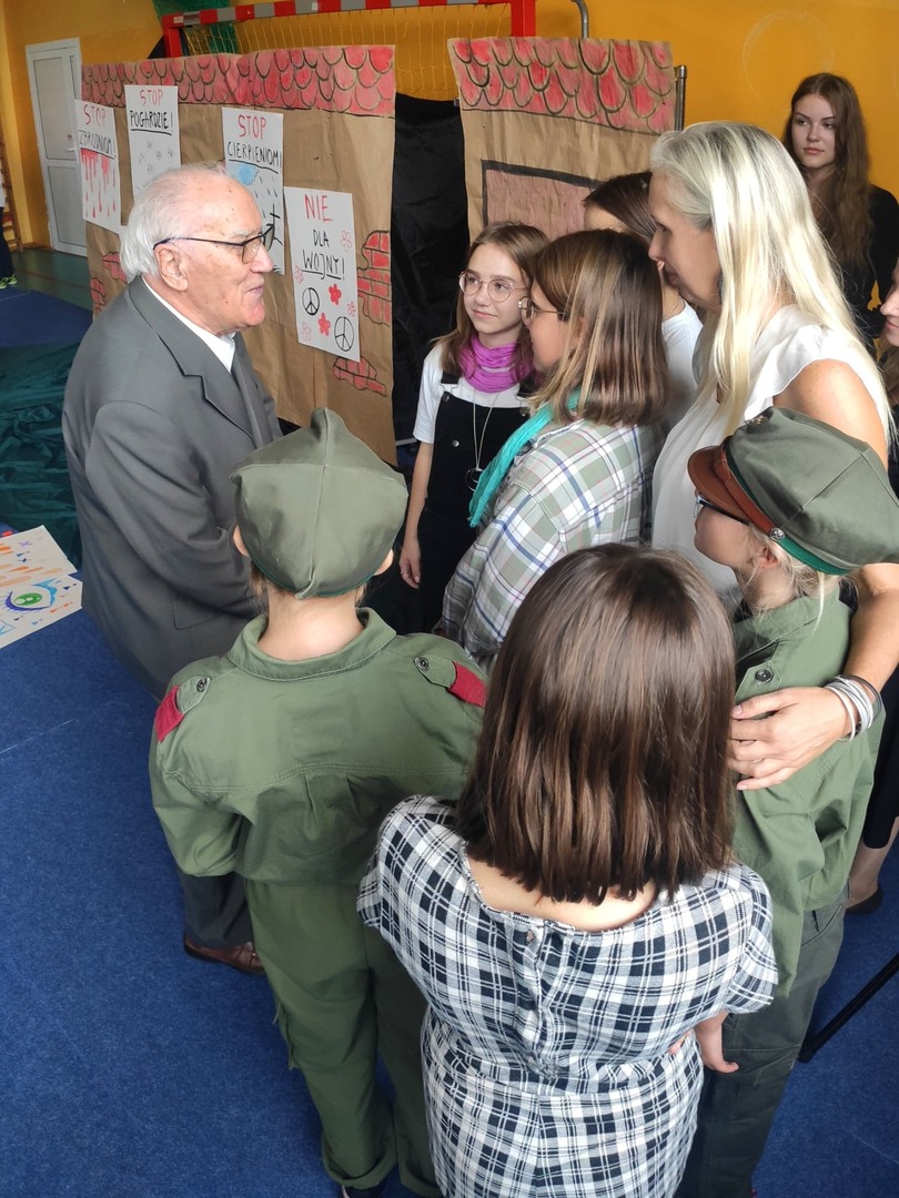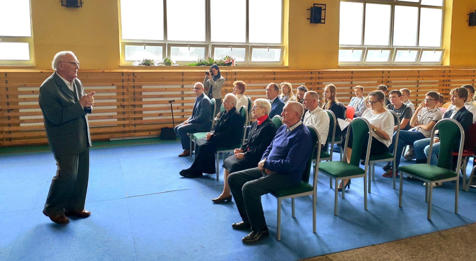 Uroczystości rocznicowe rozpoczęło wzruszające przemówienie pana Jakubowskiego, wieloletniego pedagoga, profesora Uniwersytetu Łódzkiego, który podzielił się z młodzieżą swoimi wspomnieniami z okresu początku wojny, jej wybuchu, ucieczek, strachu dzieci. Pan profesor ubolewał, że podobny los, który dotknął w dzieciństwie jego samego, stał się udziałem współczesnych młodych uchodźców z Ukrainy. Następnie głos zabrał Pan Burmistrz, podkreślając ogromną rolę kultywowania tradycji w młodym pokoleniu.