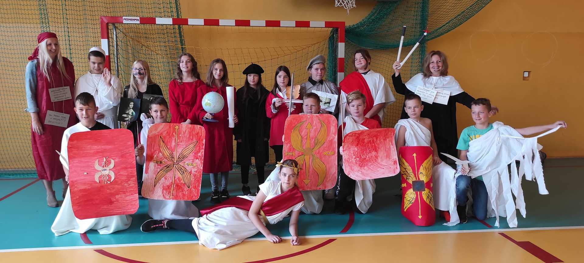 5 października w naszej szkole obchodzimy Dzień Języków Europejskich. Poszczególne klasy reprezentują kraje europejskie. Po szkole chodzą uczniowie przebrani za sławne postaci pochodzące z poszczególnych państw. W ramach obchodów uczniowie każdej z klas przygotowali film z zaprezentowaniem się w języku wylosowanego przez klasę państwa. Każdy wziął również udział w projekcie polegającym na zaprezentowaniu wylosowanego słowa w pięciu językach europejskich. Dla chętnych uczniów i nauczycieli przeprowadzony zostanie konkurs „Z jakiego języka pochodzi to słowo” wyłonieni zwycięzcy w kategorii uczeń i nauczyciel.