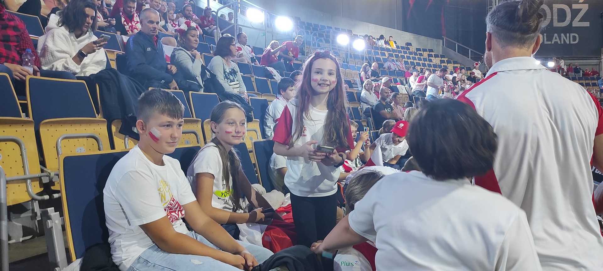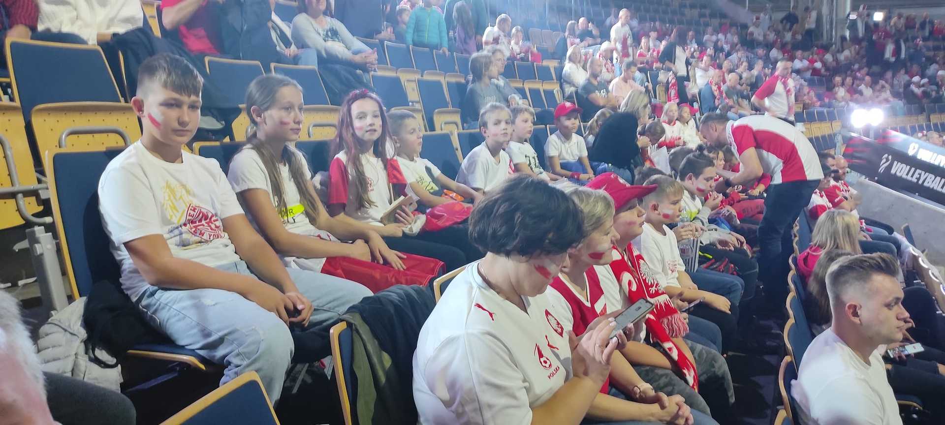 Emocje w trakcie meczu siatkarskiego Polek z Niemkami w ramach Mistrzostw Świata sięgały zenitu. Nasz szkolny team kibiców był wyjątkowo głośny i dodawał sił naszym siatkarkom. Uczniowie wybrali się do łódzkiej Atlas Areny świetnie przygotowani w zestawy kibica, poubierani w barwy narodowe z malunkami patriotycznymi na twarzy. Gardła też były świetnie przygotowane do śpiewu i okrzyków.