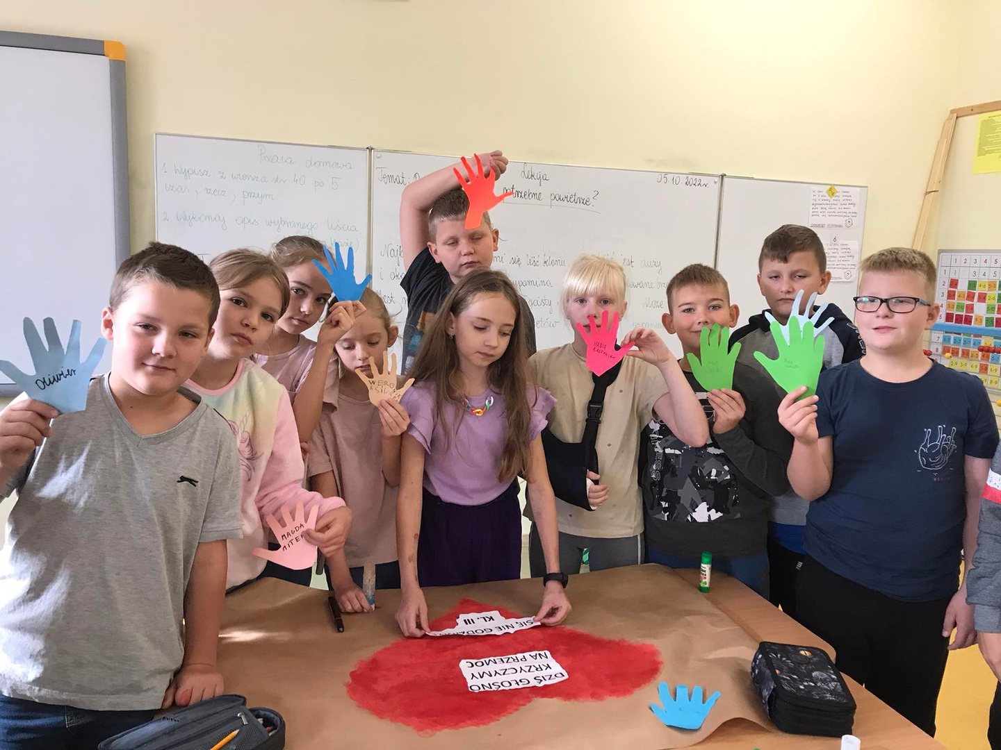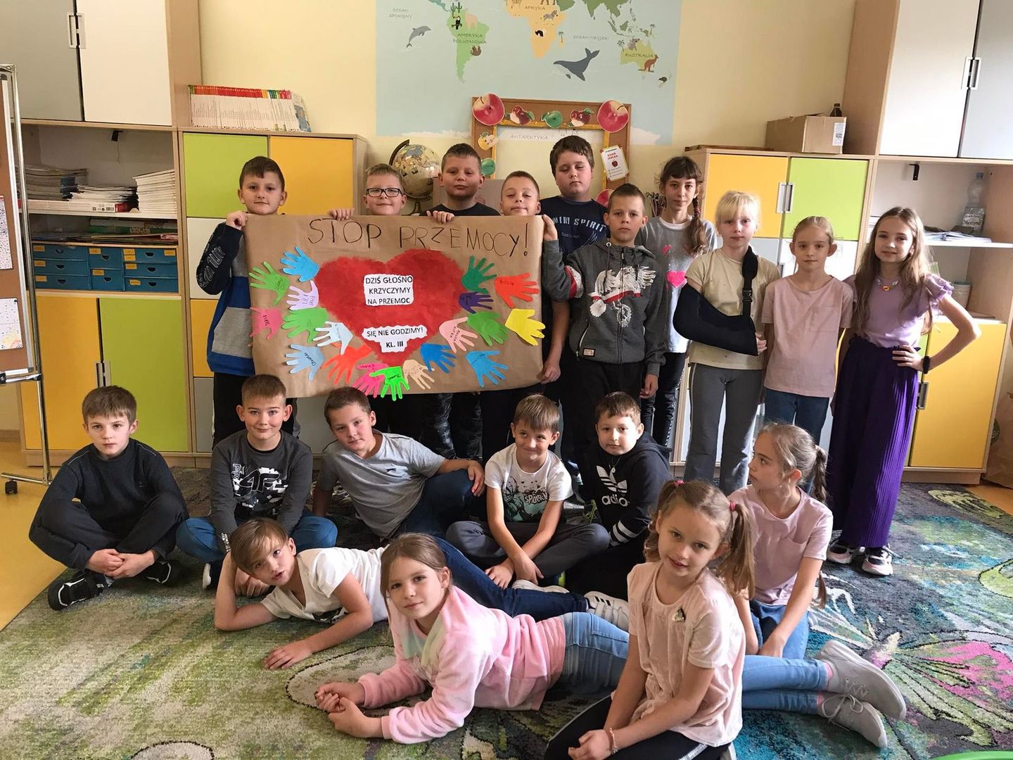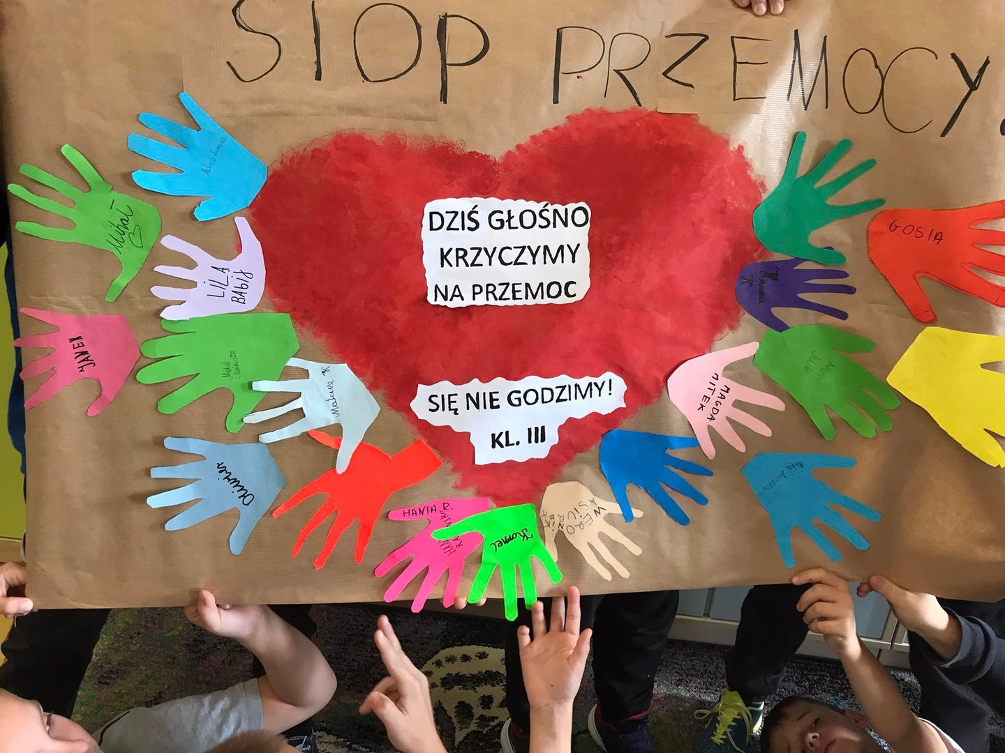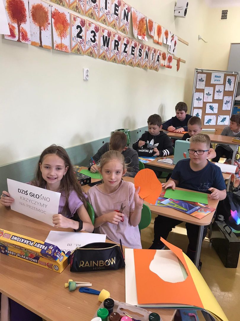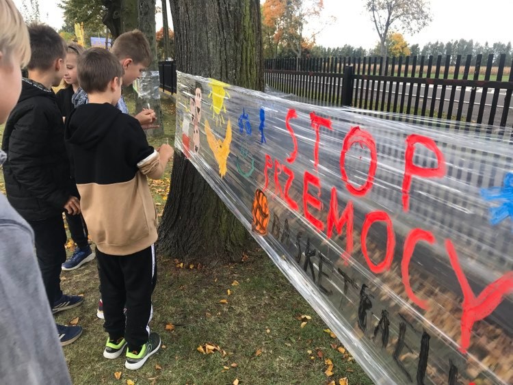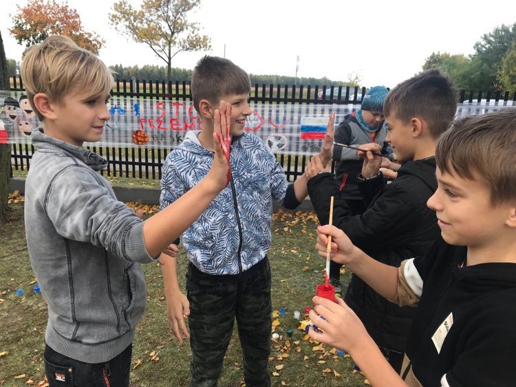 W dniach 3-7 października w naszej szkole obchodziliśmy "Tydzień bez przemocy”. Naszym celem było uświadomienie wszystkim potrzeby bezpieczeństwa, szkodliwości agresji i przemocy, a także wzmocnienie postaw asertywnych u uczniów wobec ewentualnych sprawców przemocy. W ramach obchodów zorganizowane zostały zajęcia profilaktyczne, zajęcia plastyczne, pogadanki, zajęcia sportowe promujące zasadę ,,fair play” oraz wybory najsympatyczniejszego ucznia w klasach. Kolejne działania w ramach obchodów to: 1. Uczniowie klasy pierwszej wspólnie ułożyli Klasowy Kodeks Życzliwości. 2. Klasa trzecia równie aktywnie włączyła się w obchody Tygodnia Bez Przemocy. Dzieci obejrzały prezentacje o rodzajach agresji i przemocy, rozmawiały jak sobie z nią radzić oraz wspólnie wykonały plakat Stop przemocy, na którym się podpisały pod hasłem „Dziś głośno krzyczymy, na przemoc się nie godzimy!” 3. Klasa V wraz z pedagogiem szkolnym wykonała plakaty ,,Szkoła moich marzeń” oraz ,,Przemocy stanowczo mówimy Stop”. Tekst: W. Walak Zdjęcia: W. Walak, K. Tomczyk, D. Dyjas