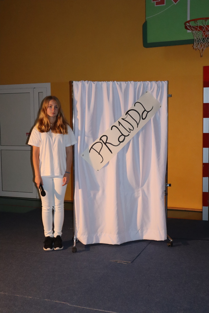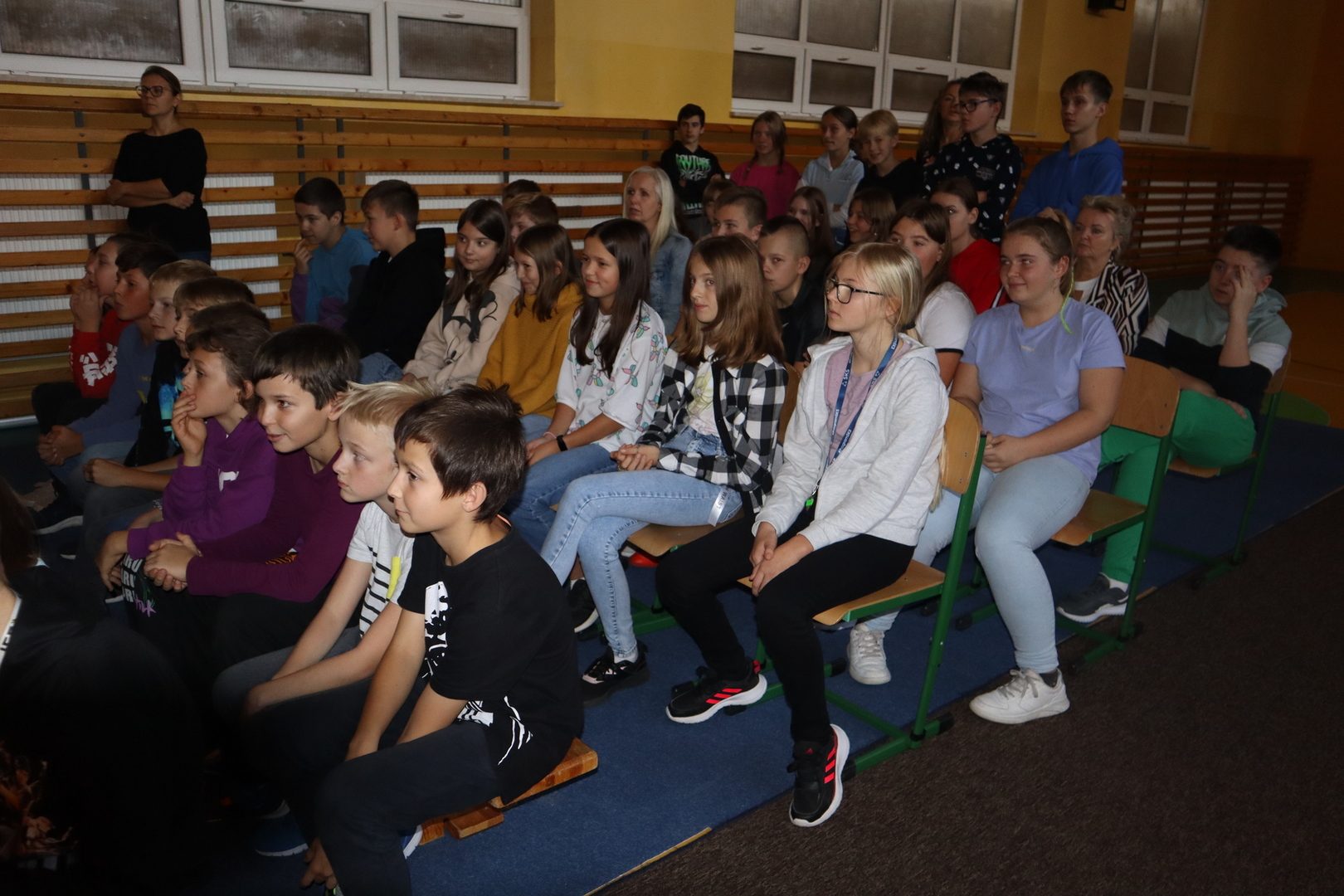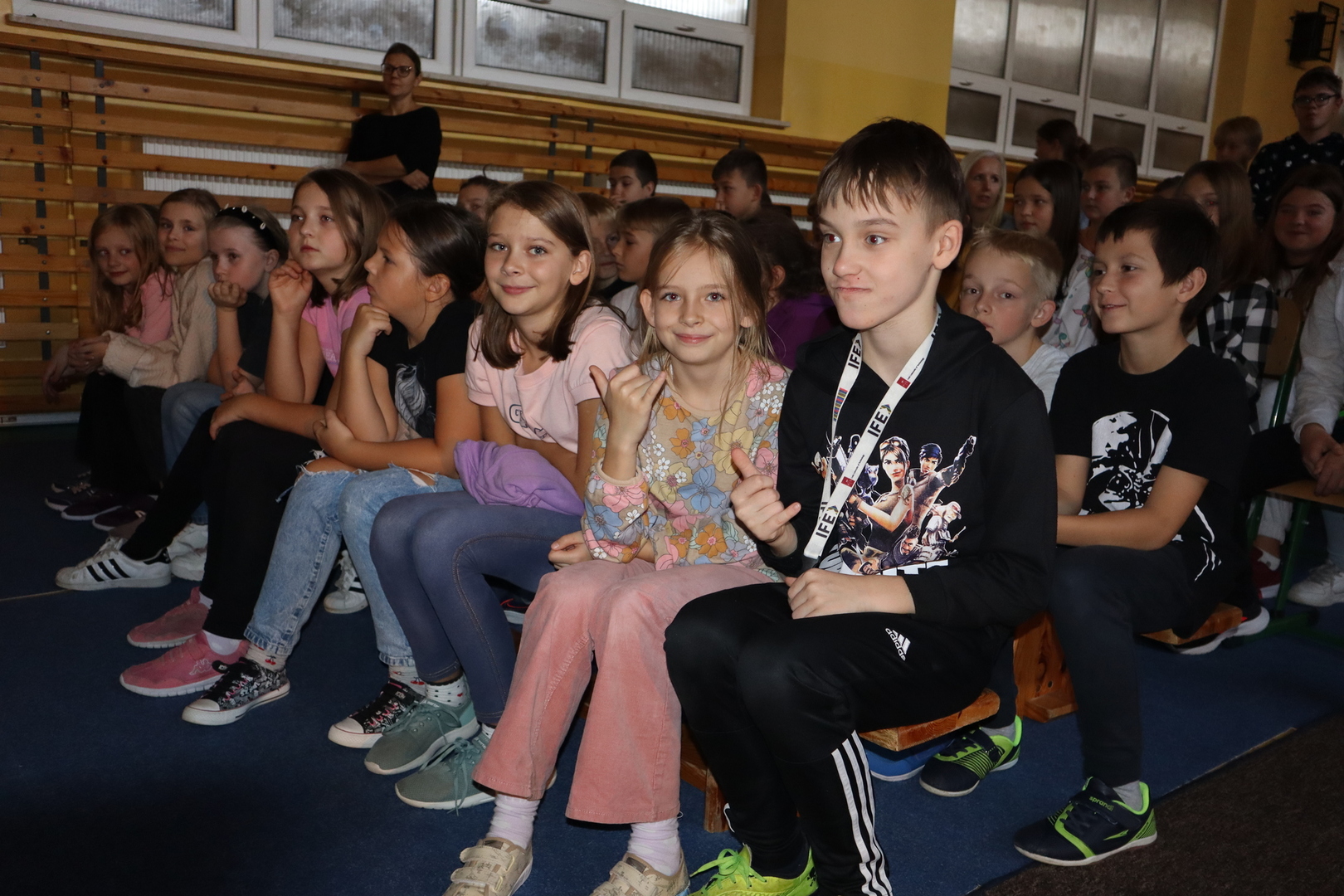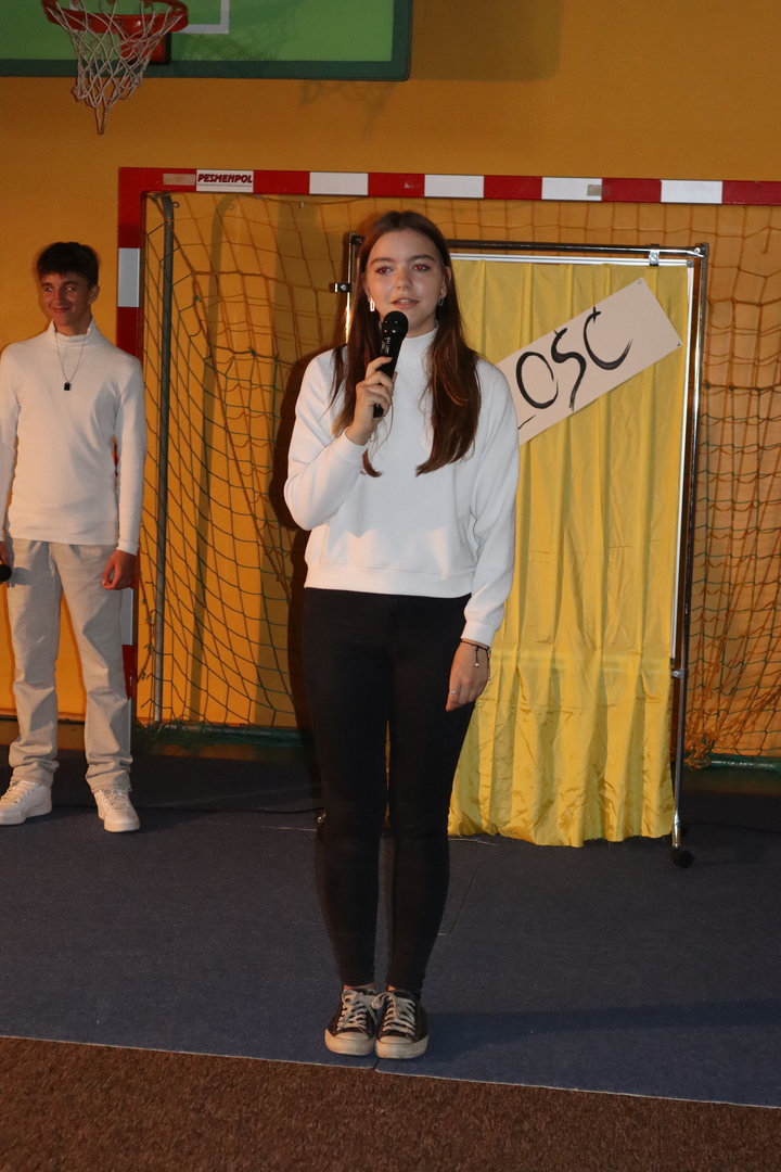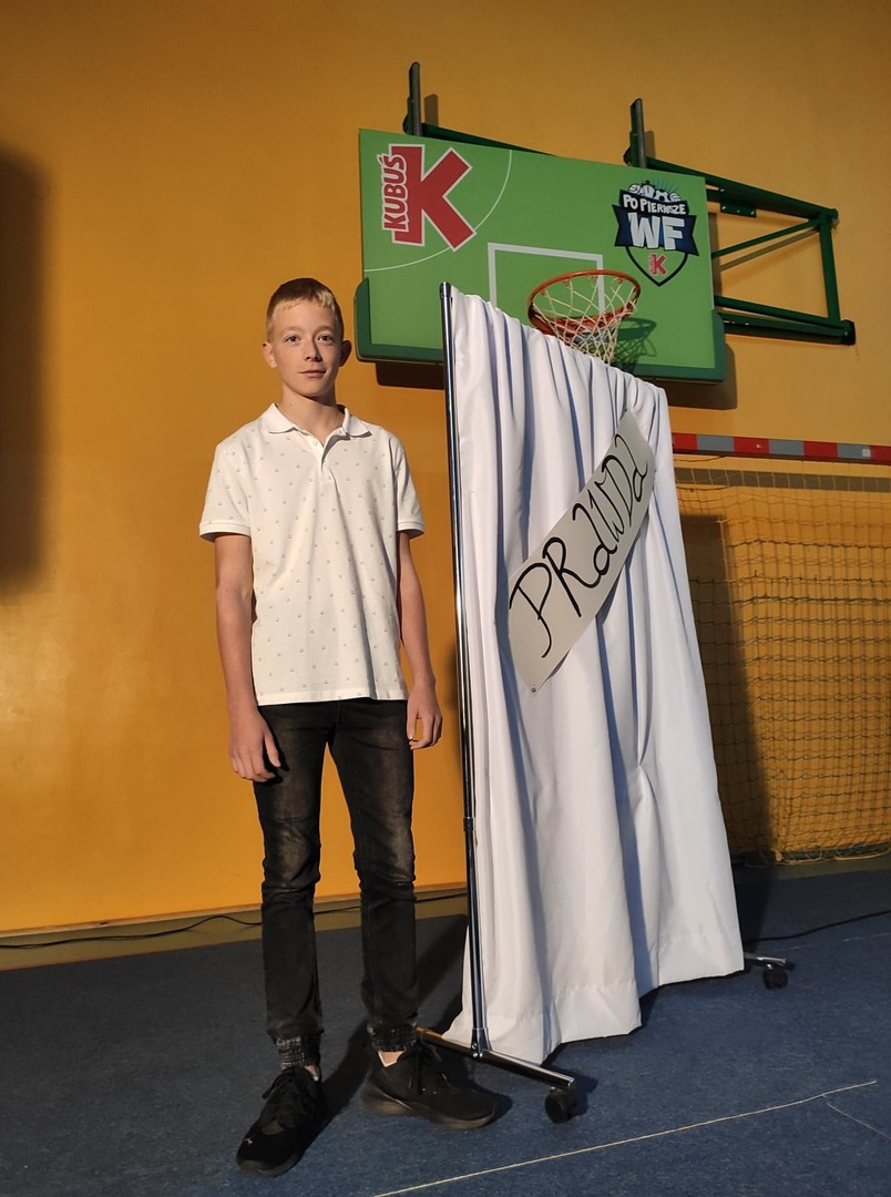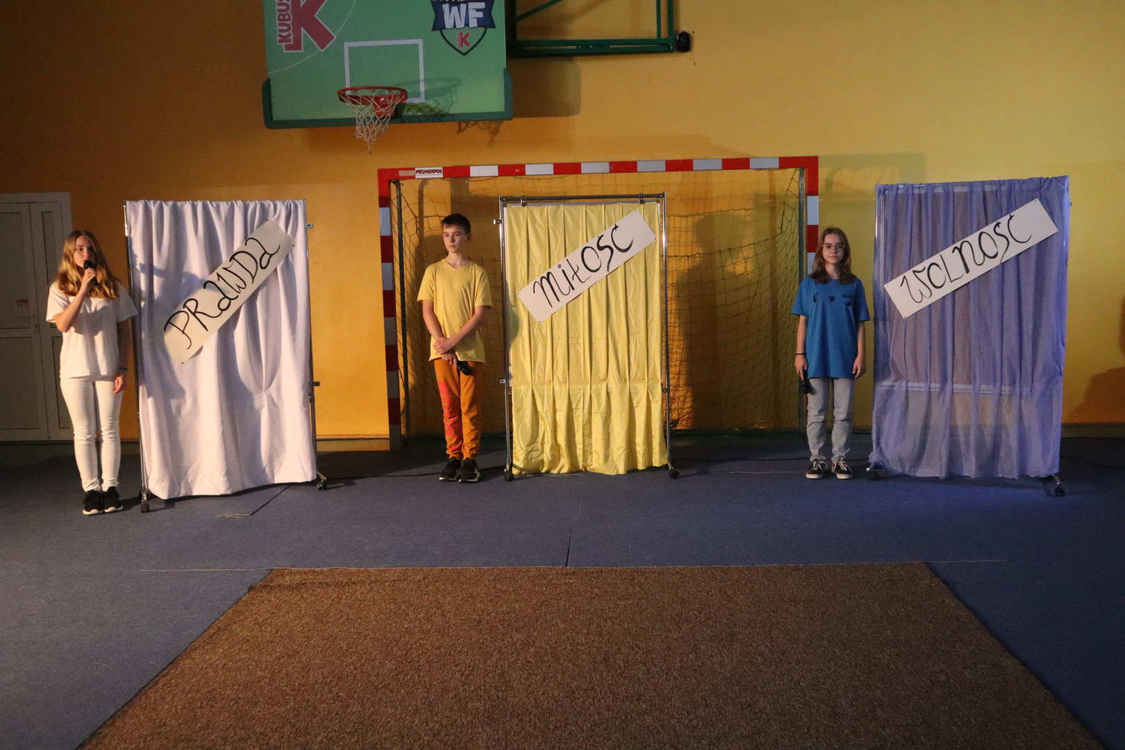 Dnia 17 października 2022 r. w naszej szkole odbył się, jak co roku, apel papieski przygotowany pod okiem p. katechety Zbigniewa Motyla. Wystąpili w nim uczniowie klasy VIII oraz VI. Motywem przewodnim tegorocznych obchodów Dnia papieskiego było hasło: Veritatis splendor czyli „Blask prawdy”. Hasło to jest tytułem jednej z encyklik Papieża Jana Pawła II. Młodzi aktorzy wcielili się w postaci świętych: Stanisława Kostki, Carla Acutisa oraz Tarsycjusza, dzięki którym mogliśmy głębiej zrozumieć podstawowe treści zawarte w papieskim dokumencie. Występ uświetnił śpiew z pokazywaniem pieśni religijnych oraz prezentacja multimedialna.