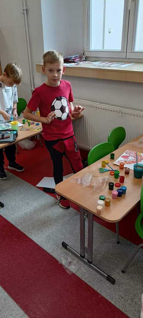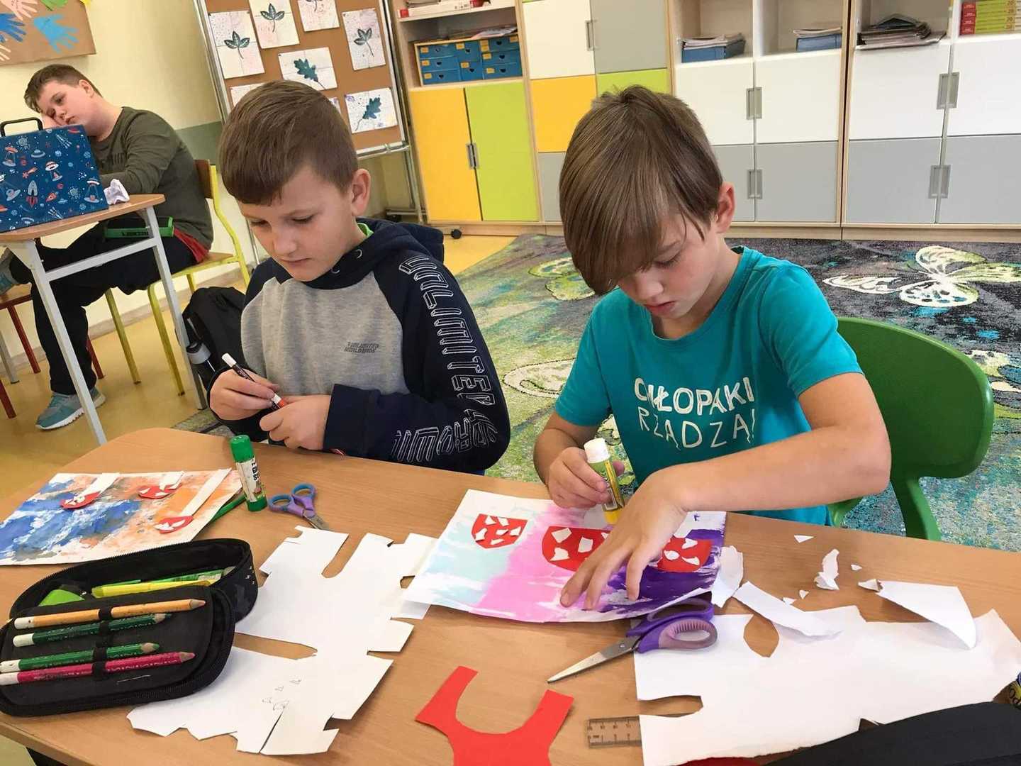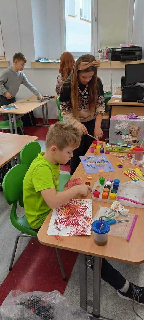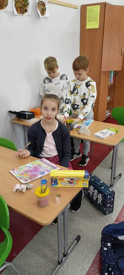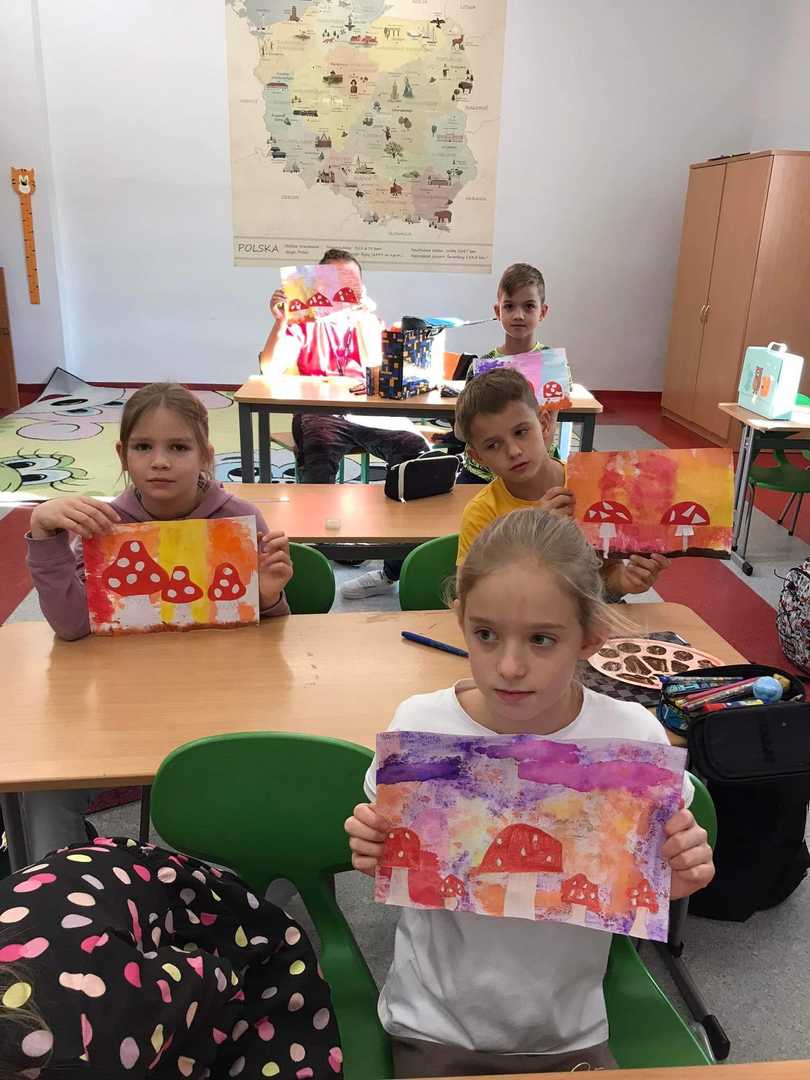 Uczniowie z klas 2 i 3 w tym roku szkolnym przystąpili do III edycji Międzynarodowego Projektu Edukacyjnego "Kreatywne Prace Plastyczne". Głównym celem projektu jest zaspokajanie naturalnej potrzeby tworzenia, wyzwalanie kreatywności i wyobraźni wśród dzieci oraz promowanie naturalnej i spontanicznej dziecięcej twórczości. W październiku uczniowie klasy 2 realizowali zadanie polegające na drukowaniu folią bąbelkową poprzez stworzenie wielokolorowego i oryginalnego papieru.Dzieci z klasy 3 przystąpiły do wykonania pracy plastycznej pt. „Muchomory” na stworzonym przez siebie tle z papieru artystycznego.