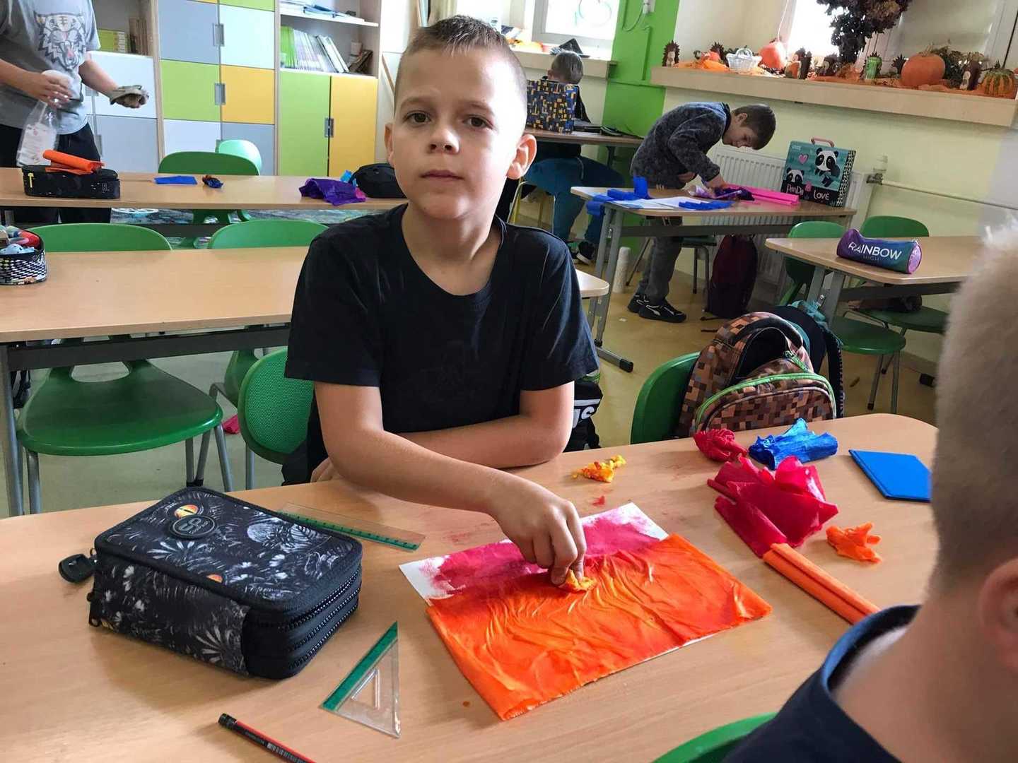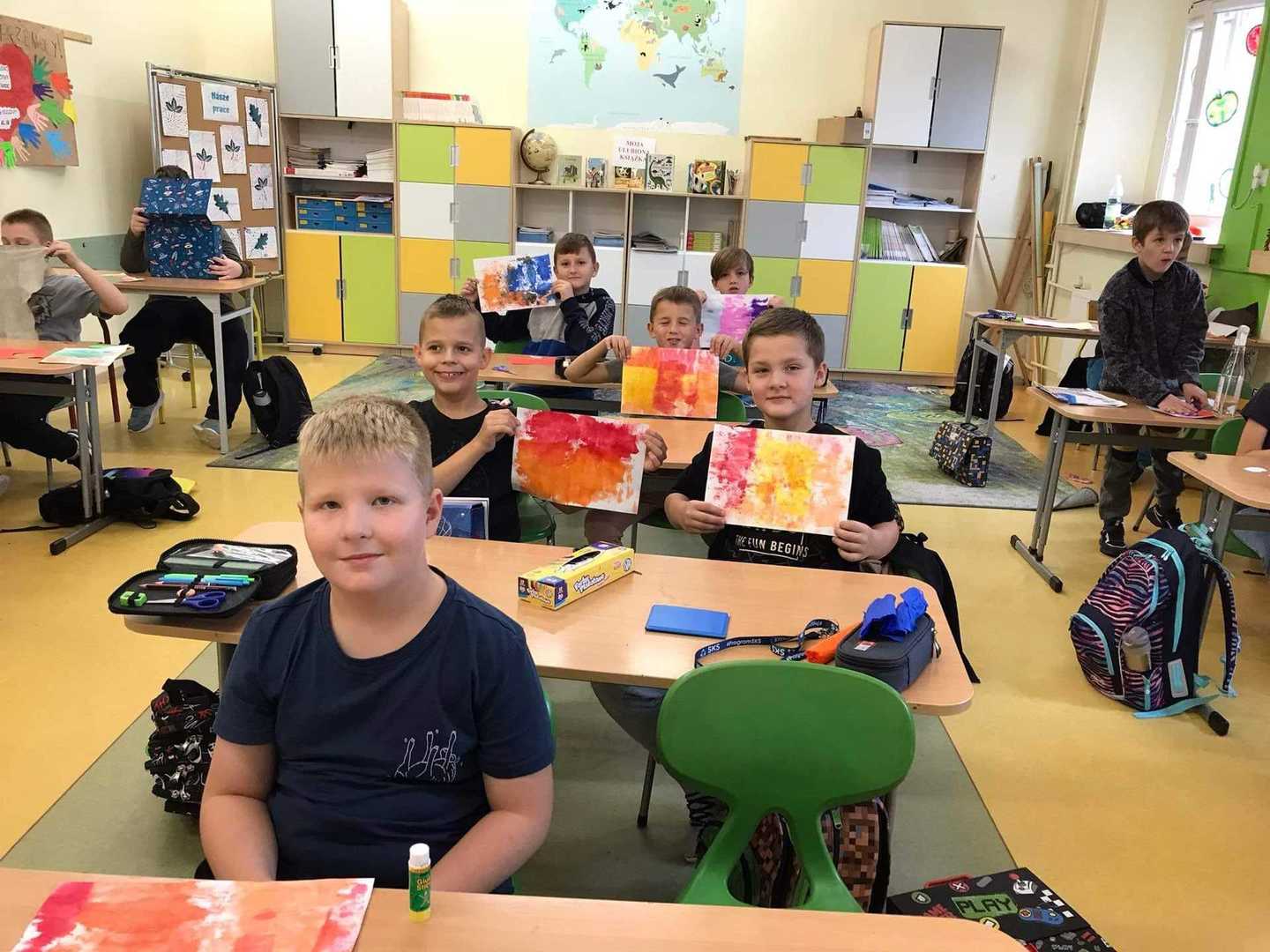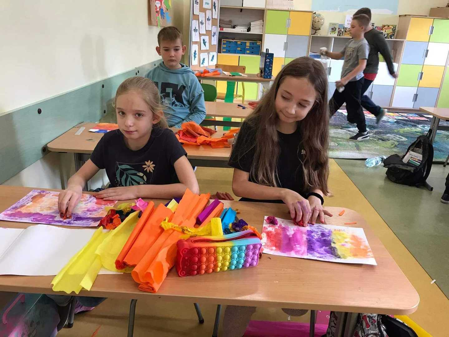 Uczniowie z klas 2 i 3 w tym roku szkolnym przystąpili do III edycji Międzynarodowego Projektu Edukacyjnego "Kreatywne Prace Plastyczne". Głównym celem projektu jest zaspokajanie naturalnej potrzeby tworzenia, wyzwalanie kreatywności i wyobraźni wśród dzieci oraz promowanie naturalnej i spontanicznej dziecięcej twórczości. W październiku uczniowie klasy 2 realizowali zadanie polegające na drukowaniu folią bąbelkową poprzez stworzenie wielokolorowego i oryginalnego papieru.Dzieci z klasy 3 przystąpiły do wykonania pracy plastycznej pt. „Muchomory” na stworzonym przez siebie tle z papieru artystycznego.