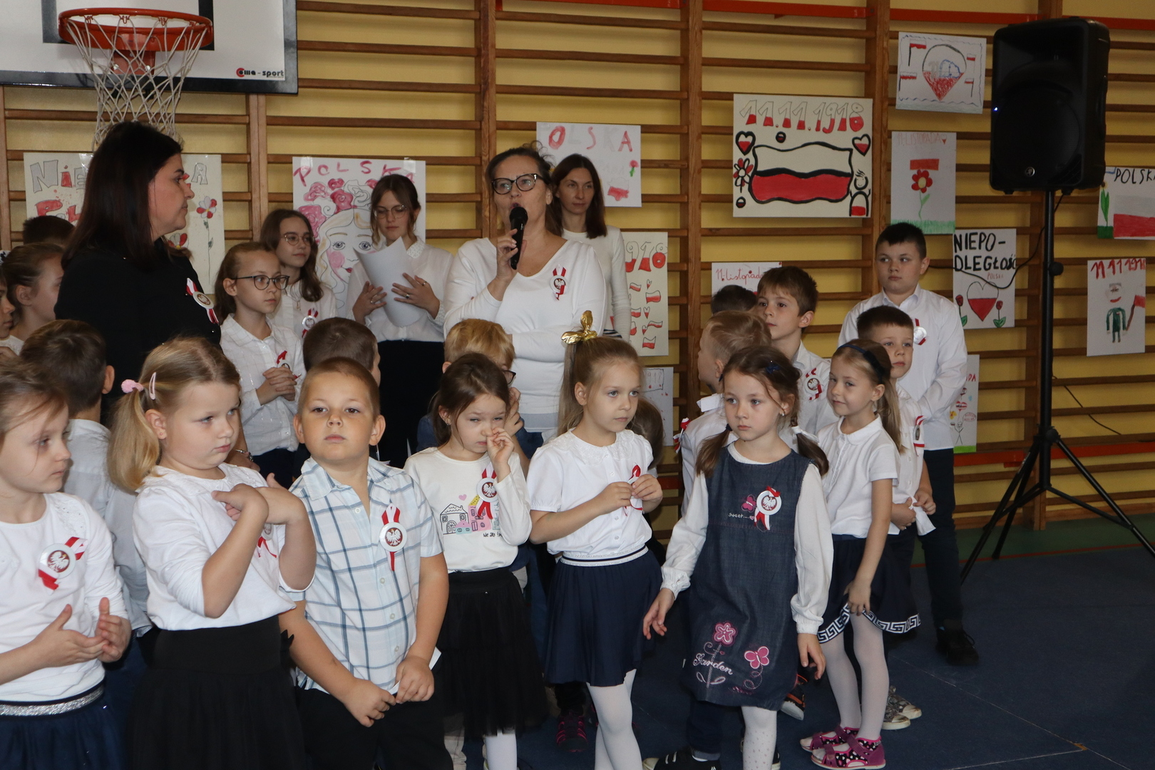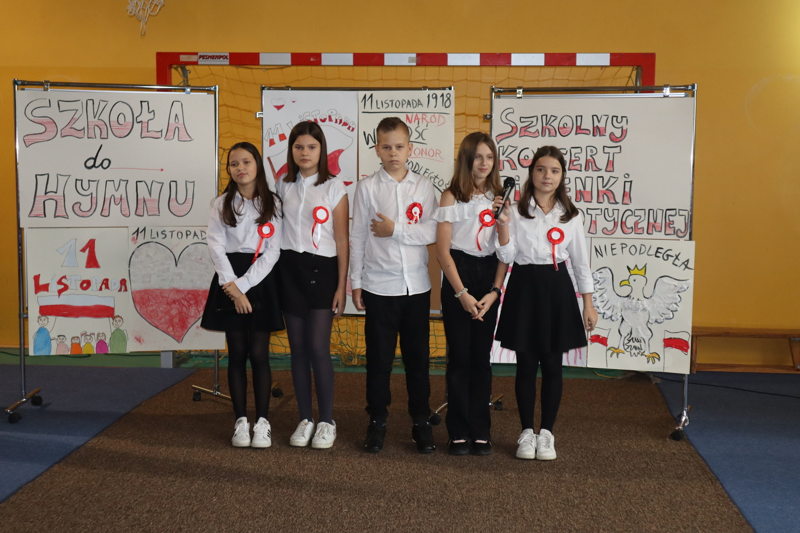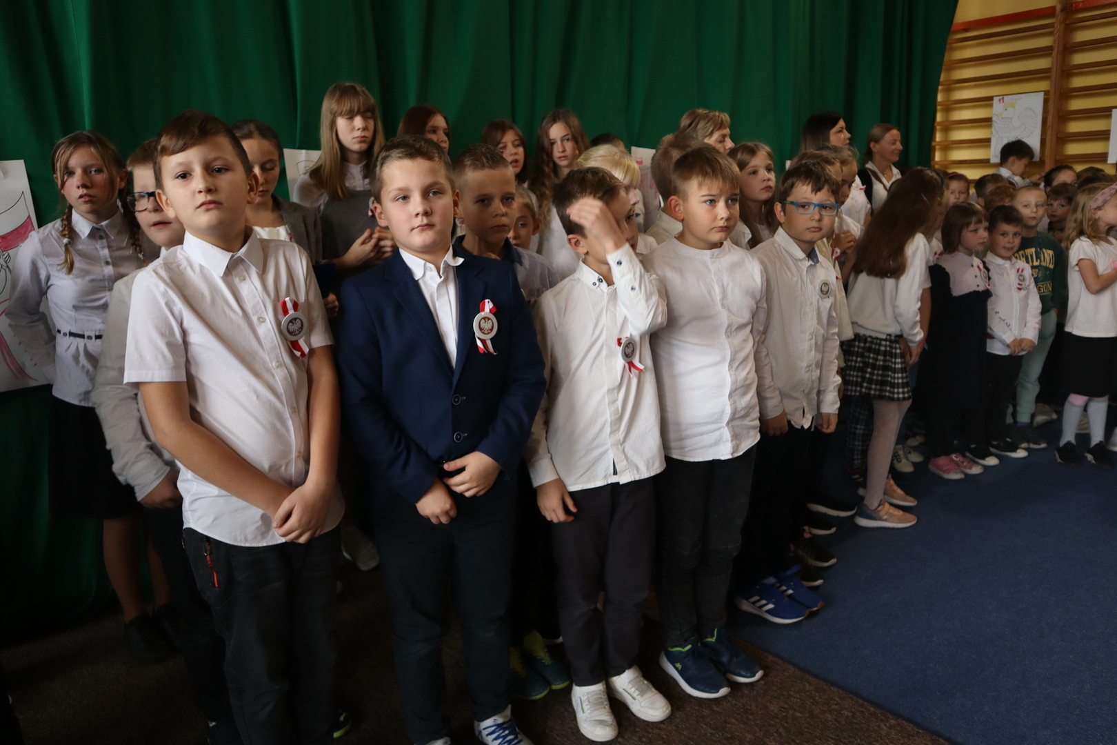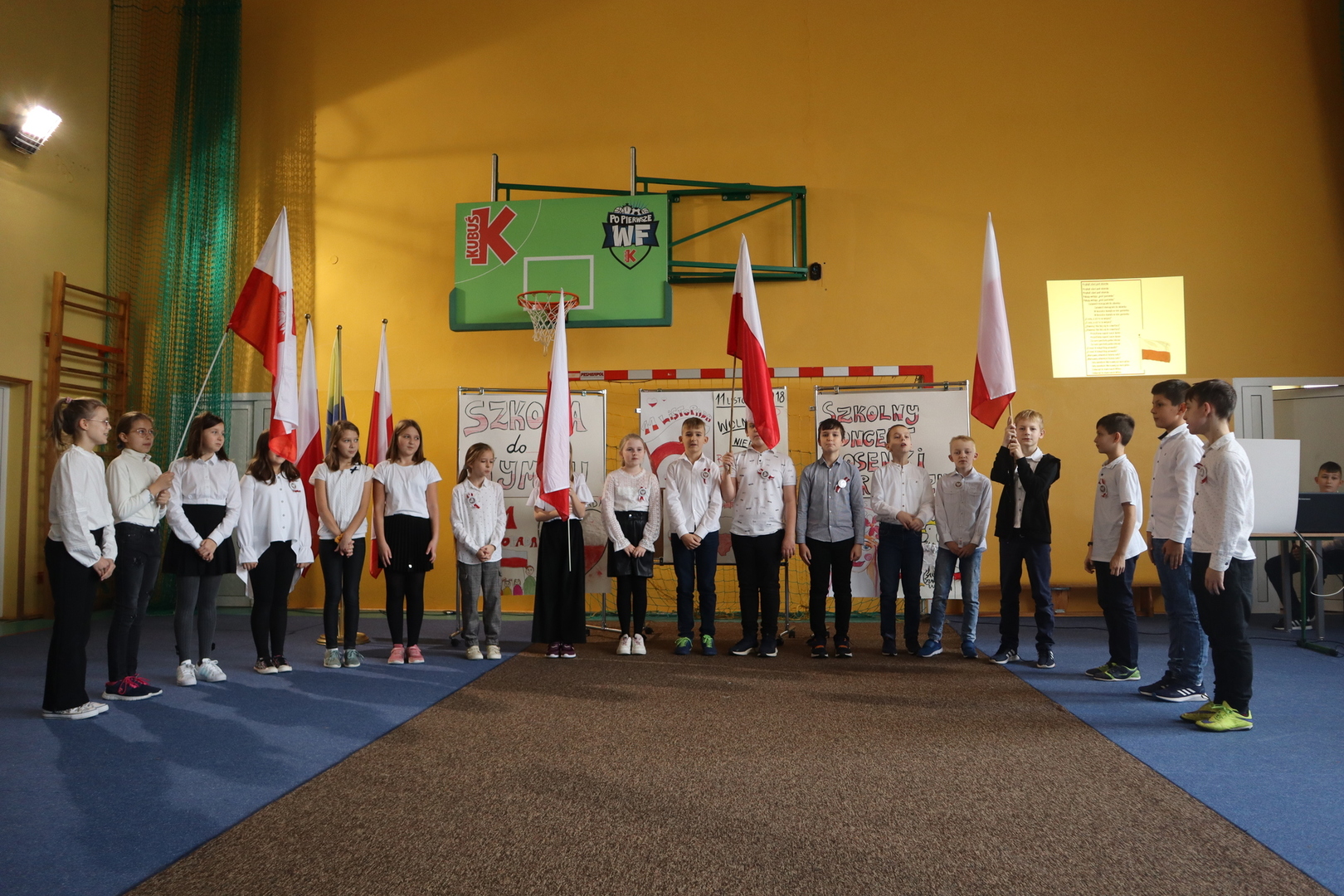 W dniu dzisiejszym (10. 11. 2022) uczniowie naszej szkoły ubrani na galowo i przystrojeni kotylionami wzięli udział w uroczystym apelu z okazji jutrzejszego Dnia Niepodległości. Najpierw obecności pocztu sztandarowego odśpiewany został w całości Hymn Narodowy. Tym samym Szkoła w Bratoszewicach wzięła udział w ogólnopolskiej akcji - "Szkoła do hymnu!". Następnie odbył się Szkolny Koncert Piosenki Patriotycznej. Uczniowie zaśpiewali przygotowane przez siebie najsłynniejsze piosenki patriotyczne. Cała sala udekorowana była plakatami związanymi z dniem - 11 Listopada - przygotowanymi na lekcjach plastyki pod okiem P. Aleksandry Miller. Wszyscy uczesticy koncertu nagrodzeni zostali gromkimi brawami.