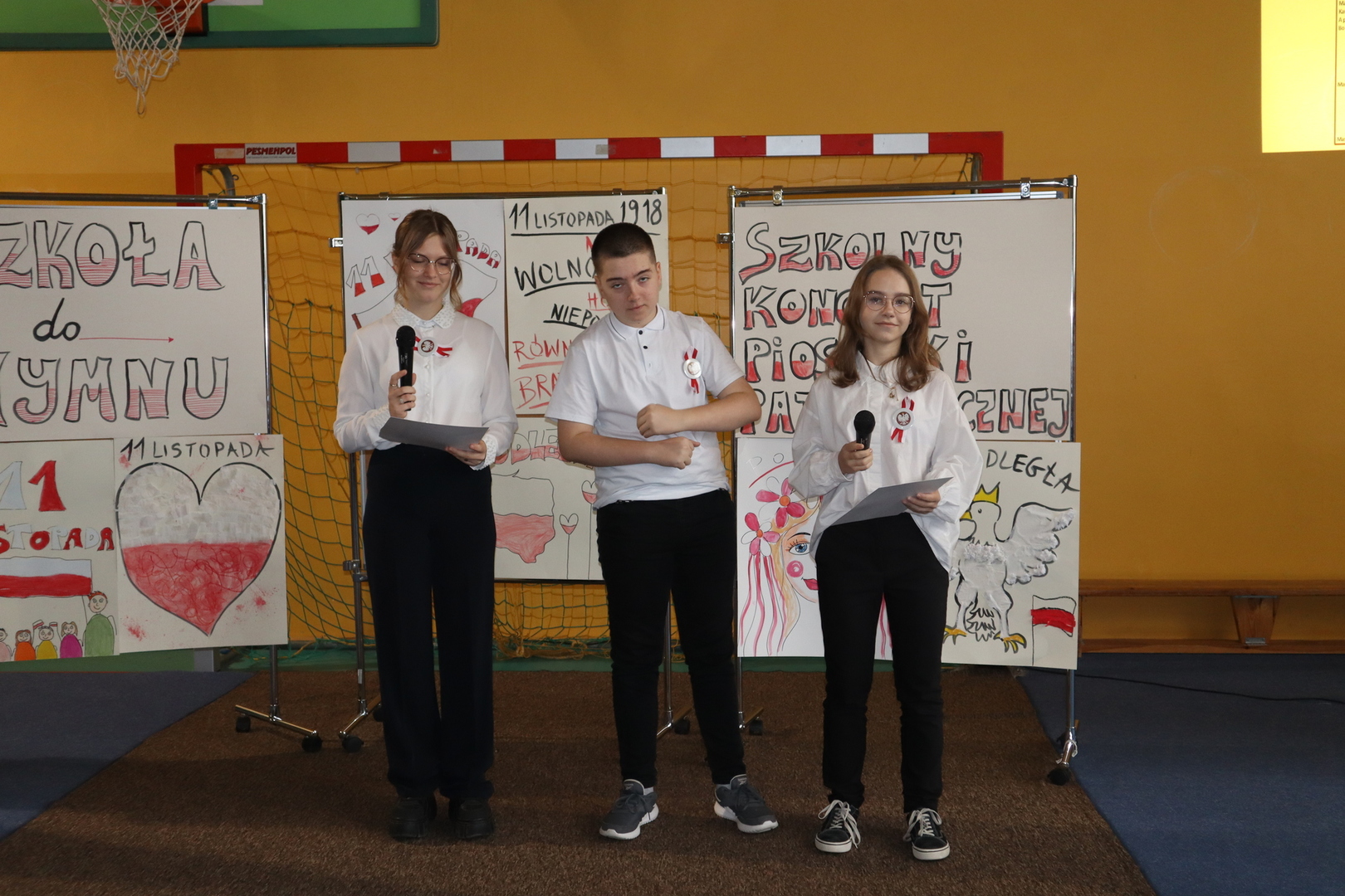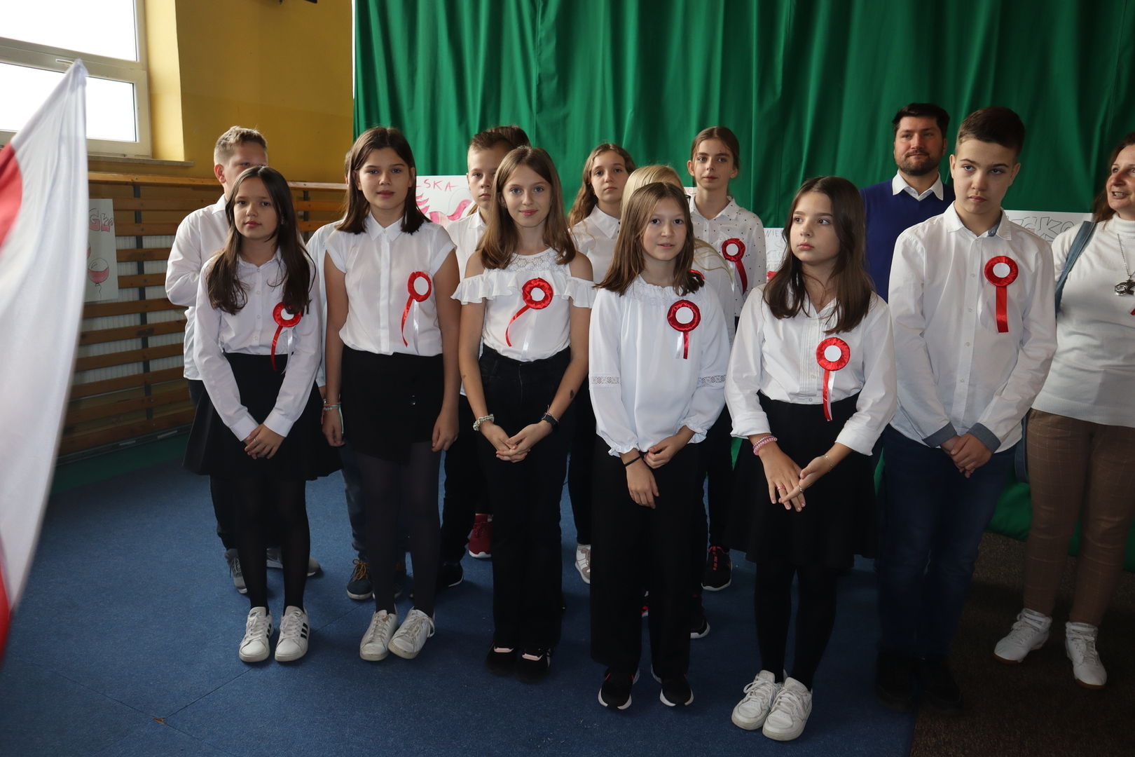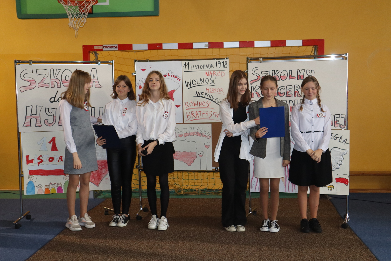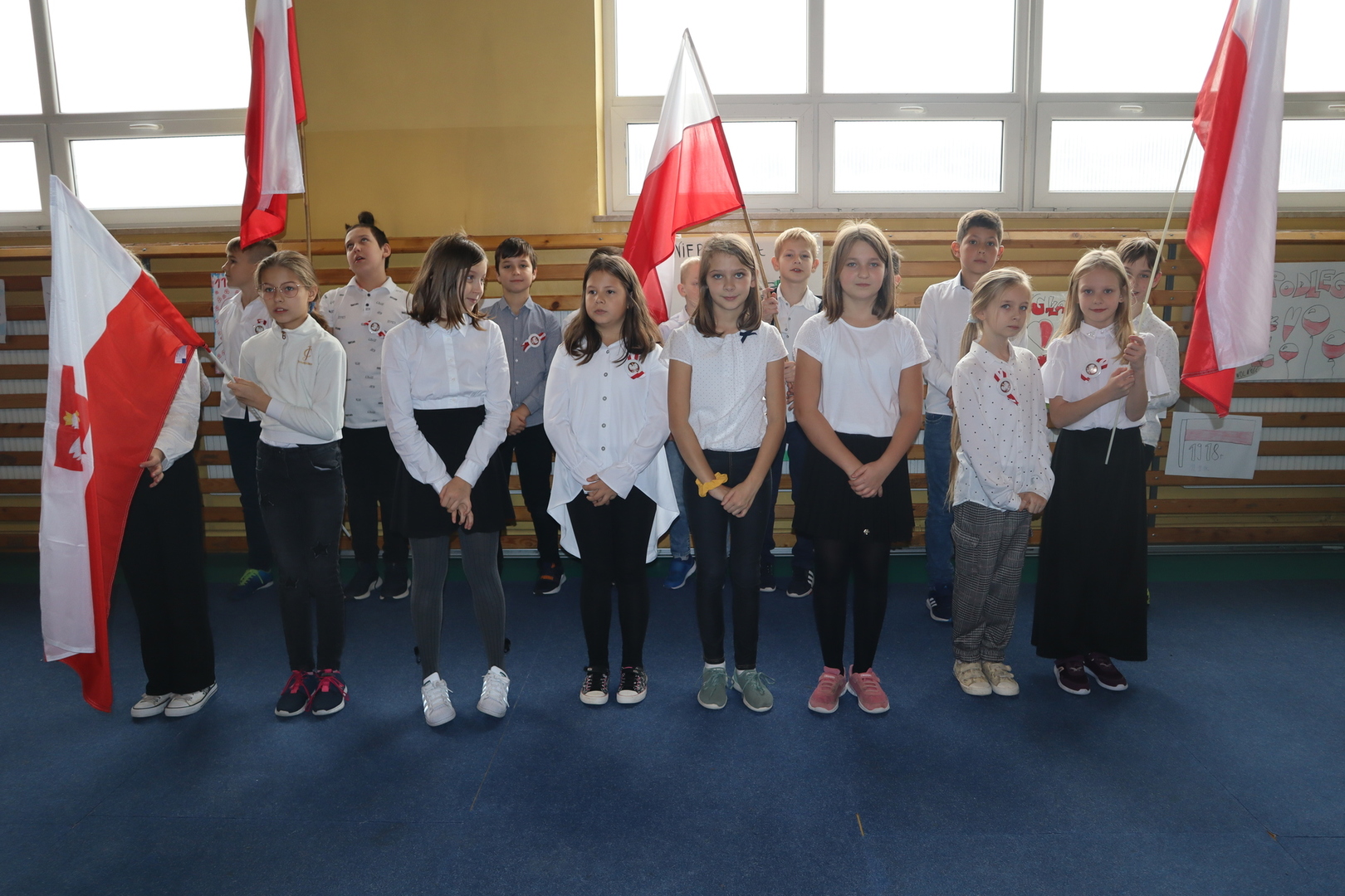 W dniu dzisiejszym (10. 11. 2022) uczniowie naszej szkoły ubrani na galowo i przystrojeni kotylionami wzięli udział w uroczystym apelu z okazji jutrzejszego Dnia Niepodległości. Najpierw obecności pocztu sztandarowego odśpiewany został w całości Hymn Narodowy. Tym samym Szkoła w Bratoszewicach wzięła udział w ogólnopolskiej akcji - "Szkoła do hymnu!". Następnie odbył się Szkolny Koncert Piosenki Patriotycznej. Uczniowie zaśpiewali przygotowane przez siebie najsłynniejsze piosenki patriotyczne. Cała sala udekorowana była plakatami związanymi z dniem - 11 Listopada - przygotowanymi na lekcjach plastyki pod okiem P. Aleksandry Miller. Wszyscy uczesticy koncertu nagrodzeni zostali gromkimi brawami.