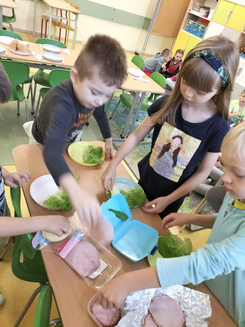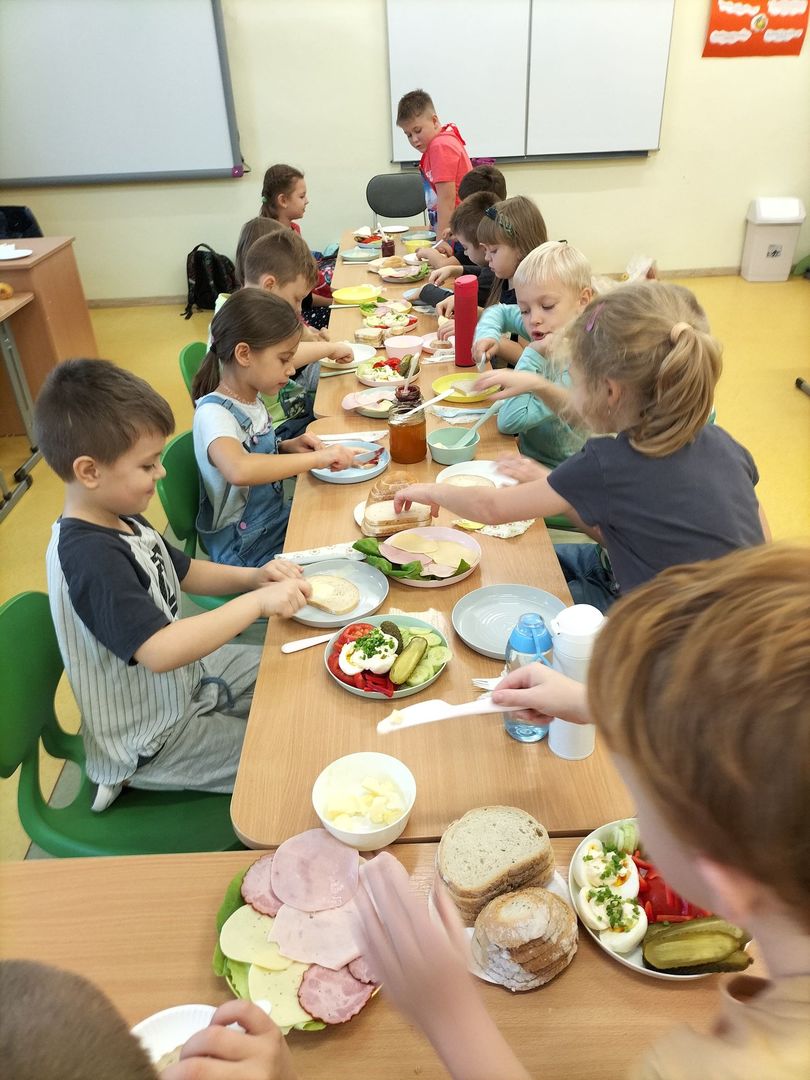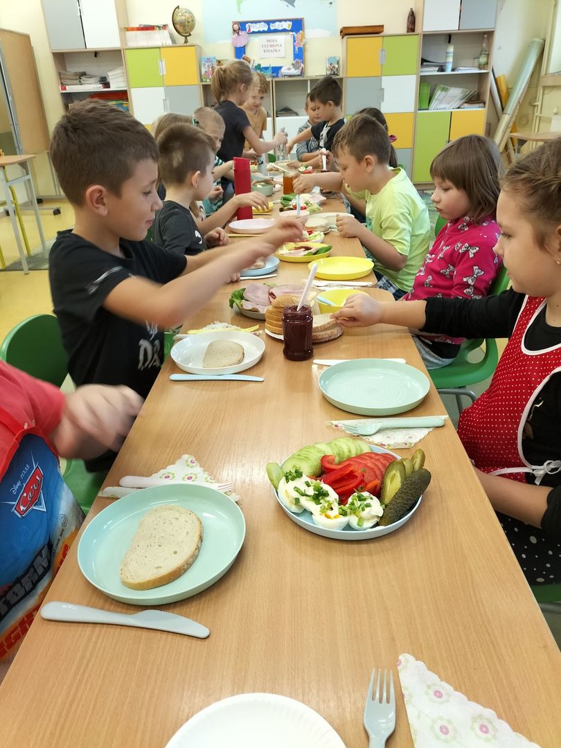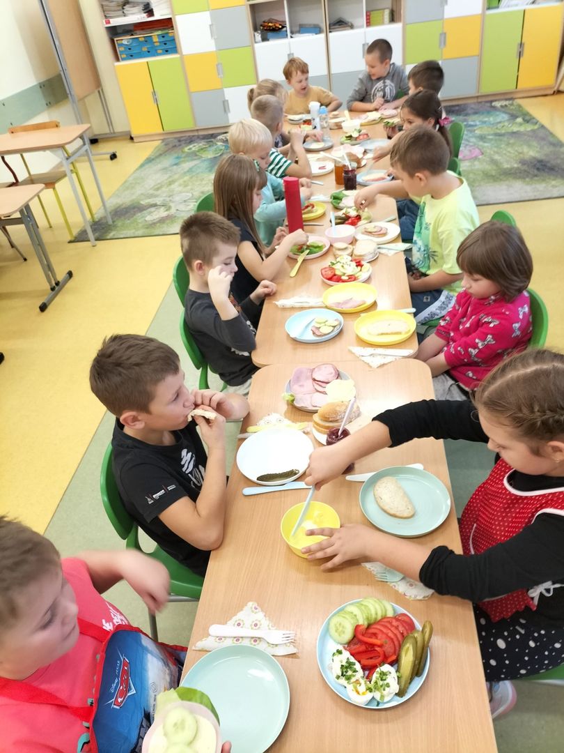 Uczniowie klas I - III w ramach realizacji podstawy programowej i udziału dzieci w "Programie dla szkół" przygotowali pyszne a przede wszystkim zdrowe śniadanie. Na "stolikach śniadaniowych" znalazły się kolorowe kanapki oraz zdrowe ekologiczne dżemy i soki. Oprócz tego przeprowadzono pogadanki na temat roli śniadania jako najważniejszego posiłku w ciągu dnia. Dzięki niemu dzieci mają siłę do nauki i zabawy i lepiej koncentrują się na wykonywanych zadaniach. Akcja była dla uczniów wspaniałą zabawą i integracją podczas prac grupowych oraz zwiększyła świadomość na temat zdrowego odżywiania i roli śniadania.