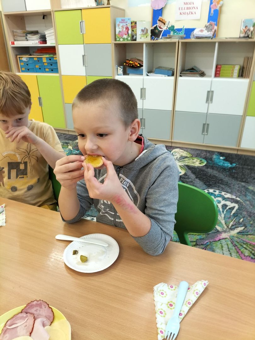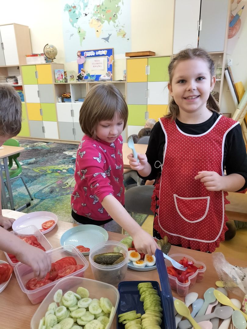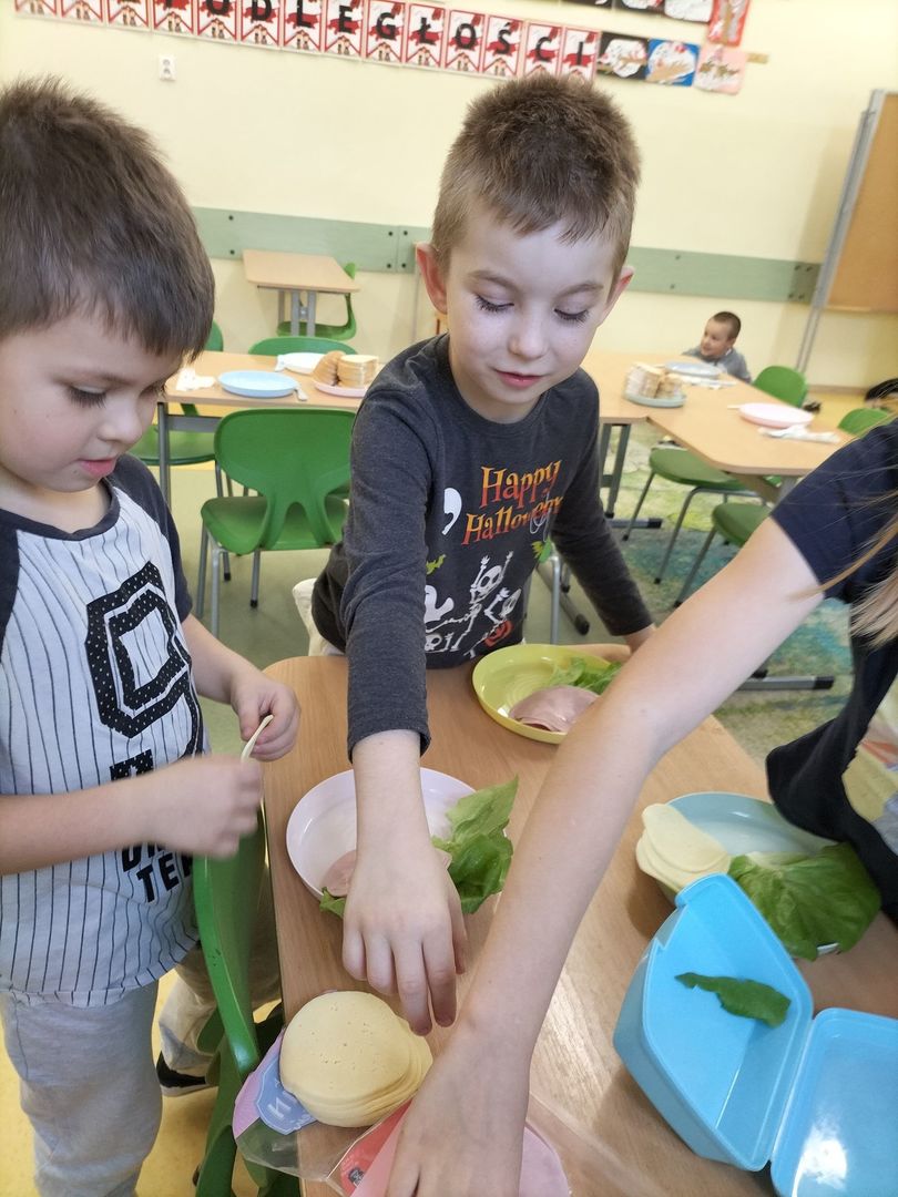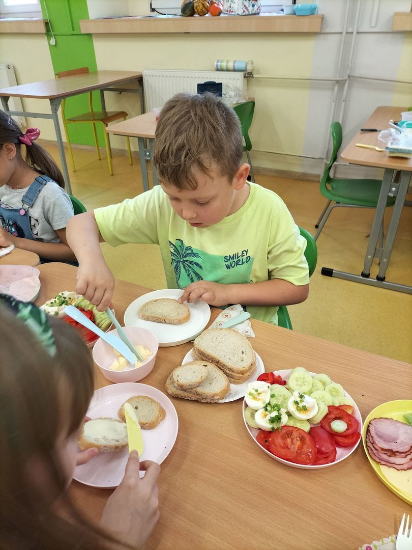 Uczniowie klas I - III w ramach realizacji podstawy programowej i udziału dzieci w "Programie dla szkół" przygotowali pyszne a przede wszystkim zdrowe śniadanie. Na "stolikach śniadaniowych" znalazły się kolorowe kanapki oraz zdrowe ekologiczne dżemy i soki. Oprócz tego przeprowadzono pogadanki na temat roli śniadania jako najważniejszego posiłku w ciągu dnia. Dzięki niemu dzieci mają siłę do nauki i zabawy i lepiej koncentrują się na wykonywanych zadaniach. Akcja była dla uczniów wspaniałą zabawą i integracją podczas prac grupowych oraz zwiększyła świadomość na temat zdrowego odżywiania i roli śniadania.