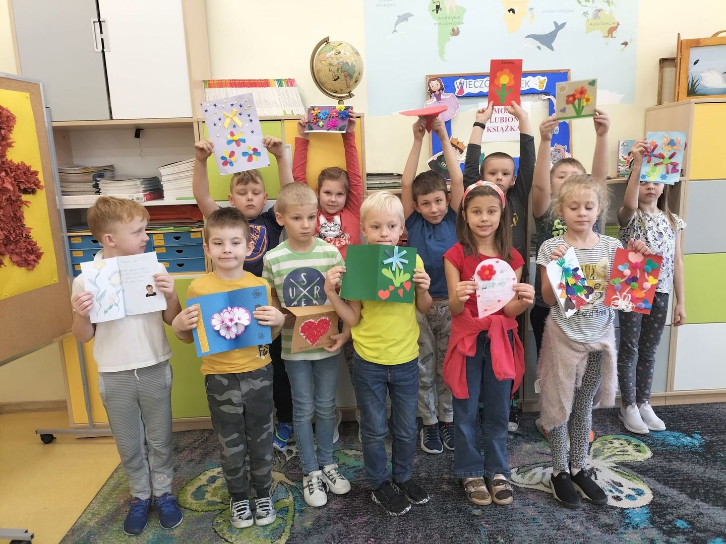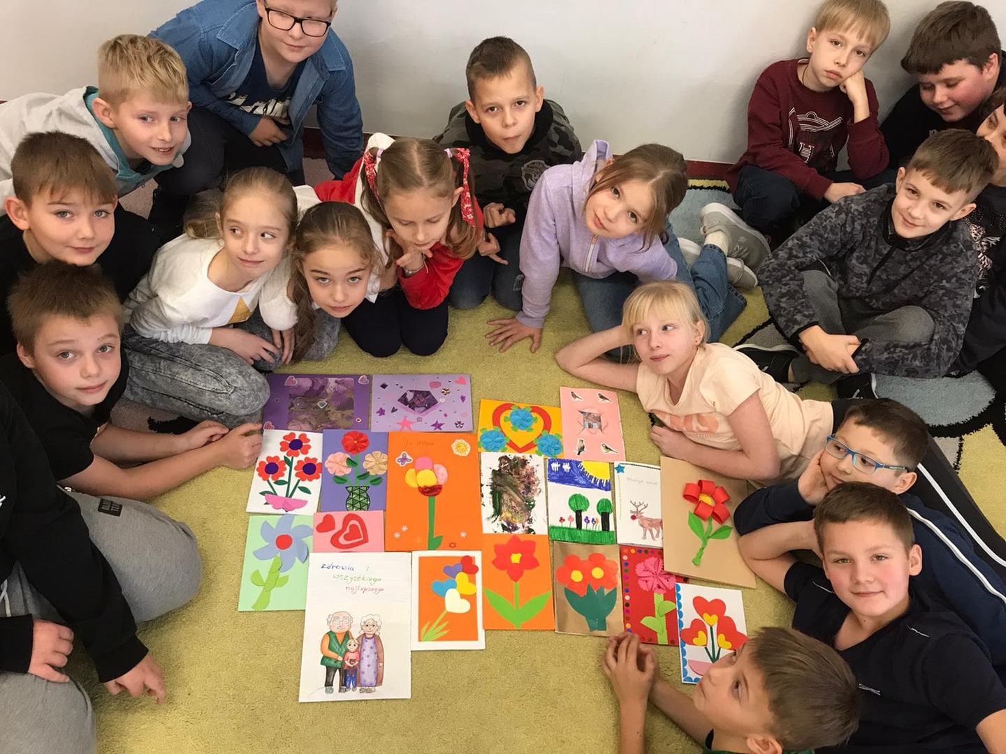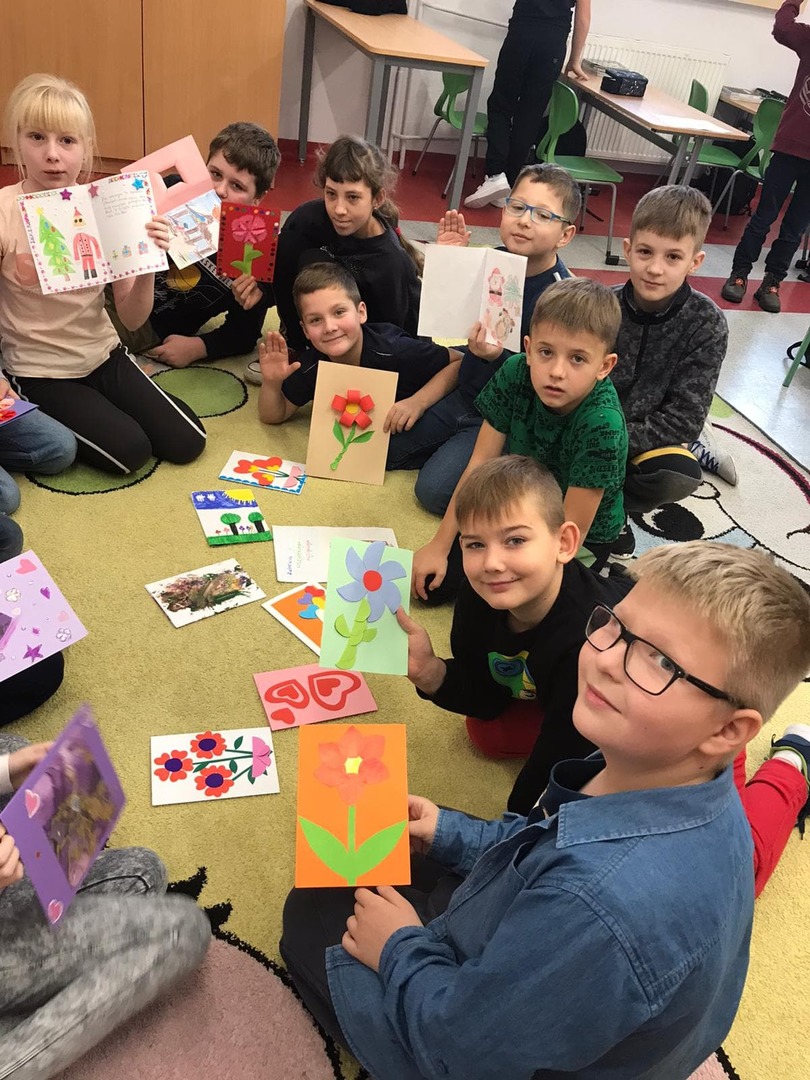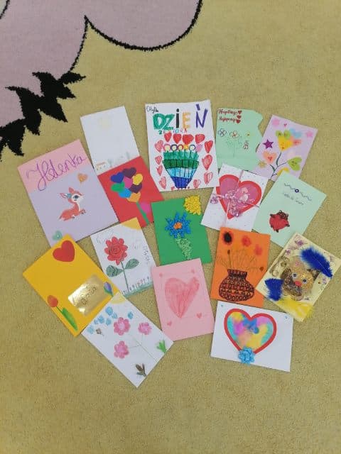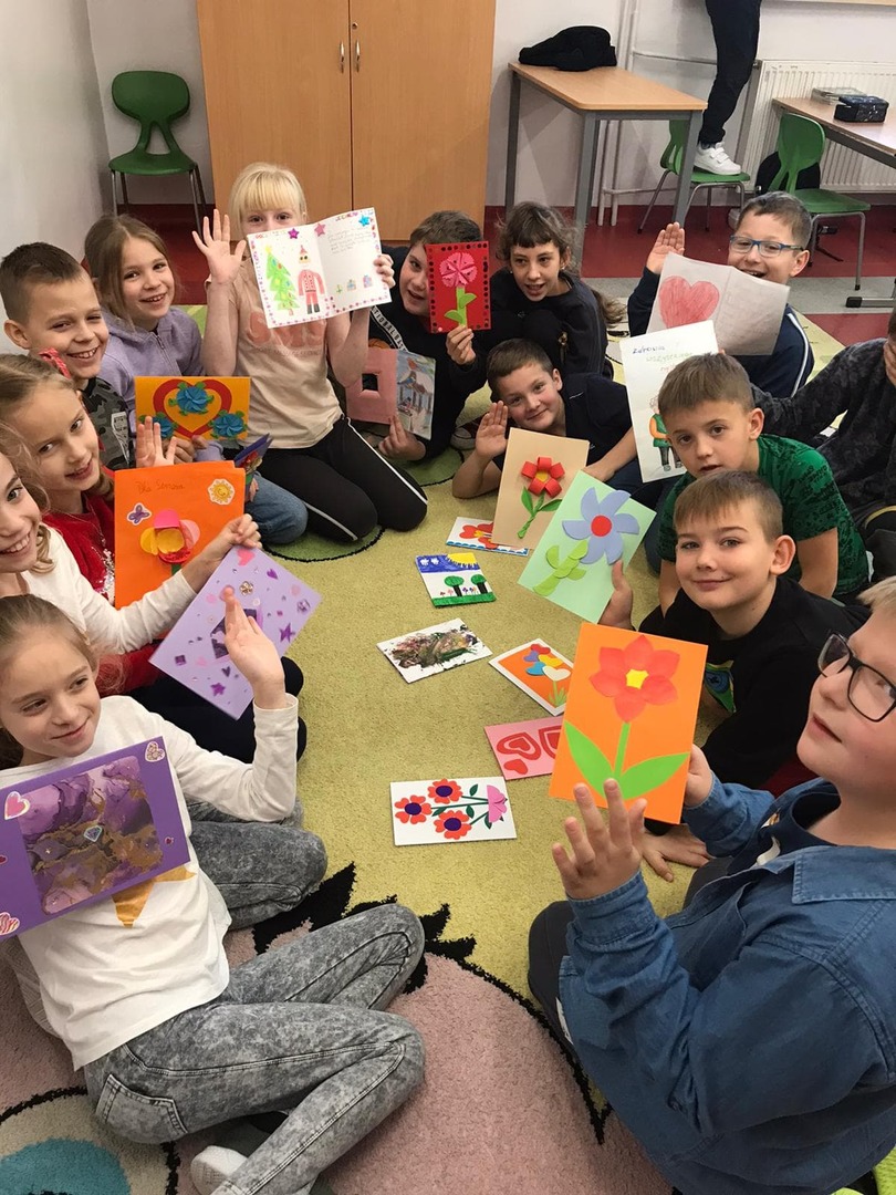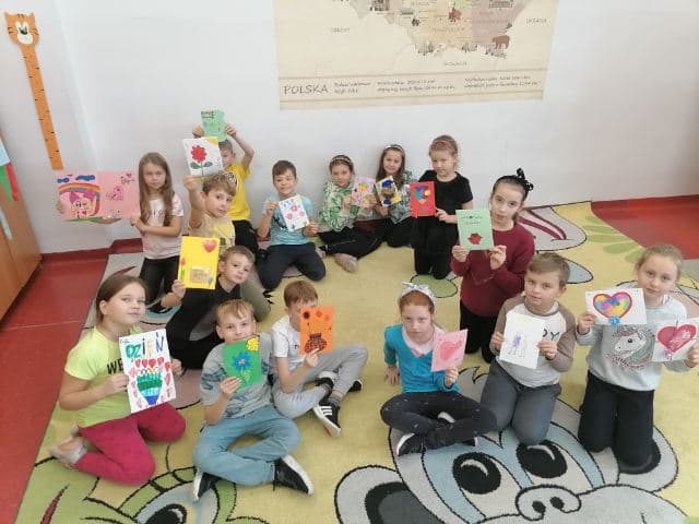 Uczniowie klas I - III również włączyli się w przygotowanie pięknych laurek z okazji Dnia Życzliwości. Laurki z życzeniami zostaną przekazane dla Seniorów z Domu Pomocy Społecznej w Głownie.