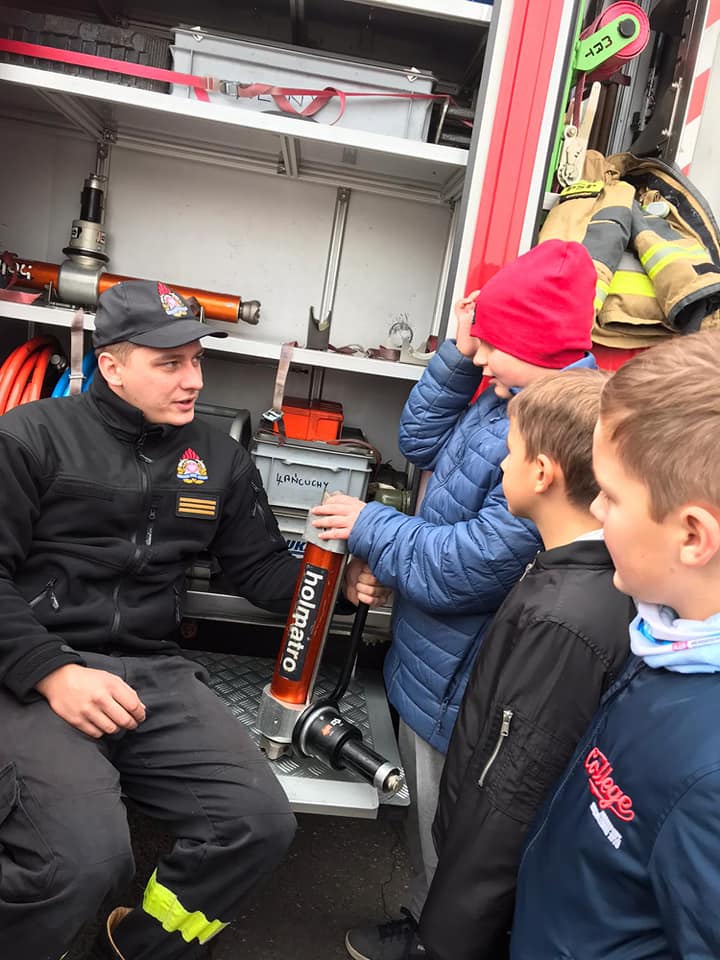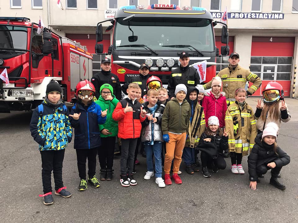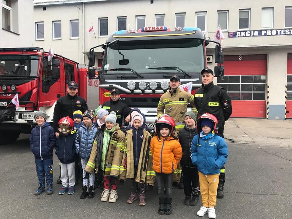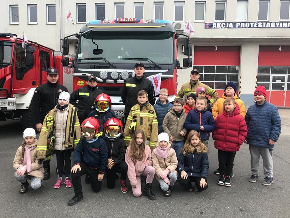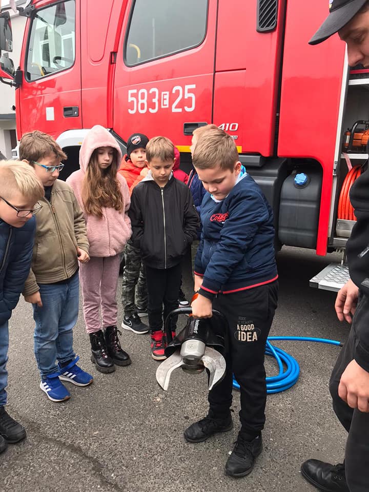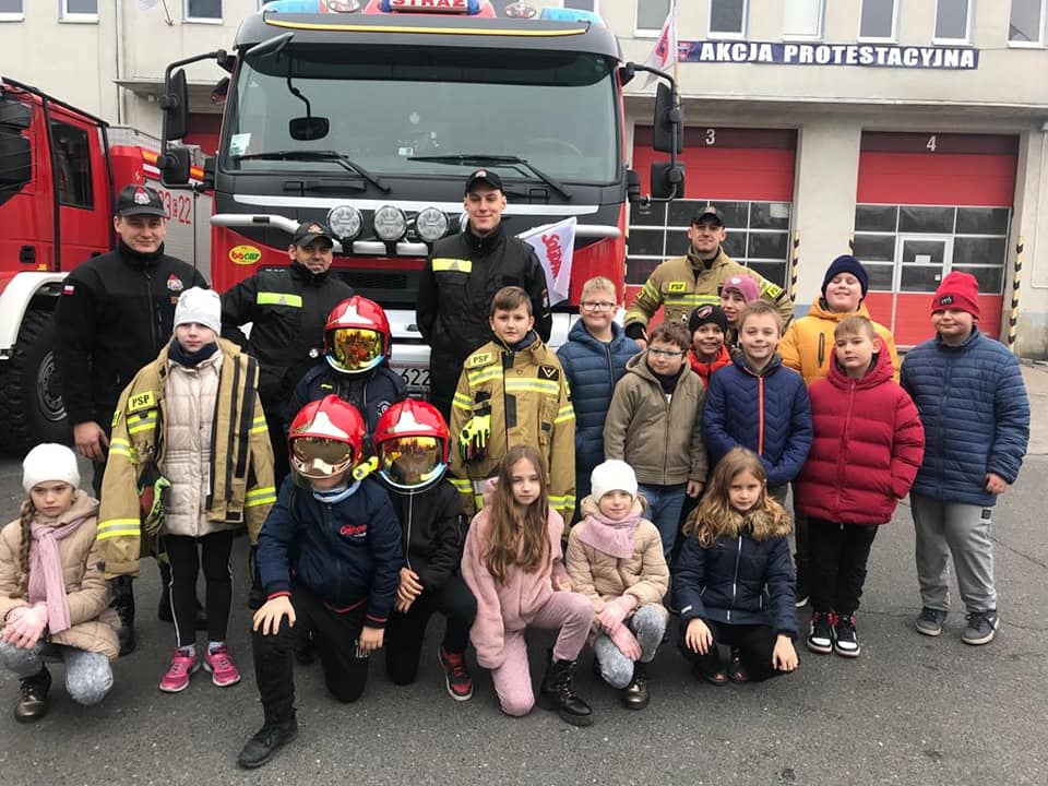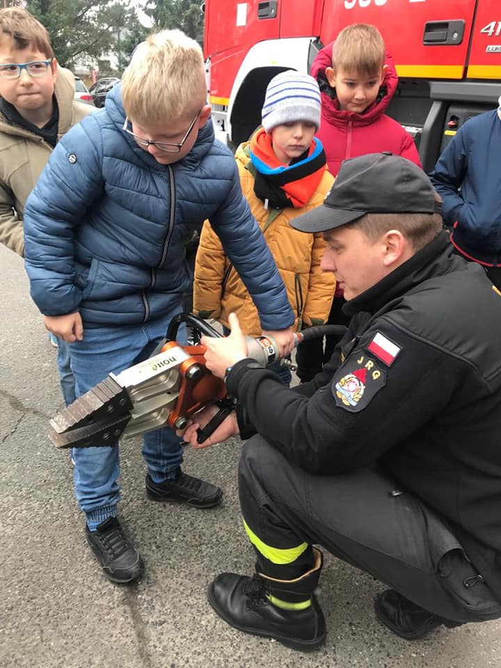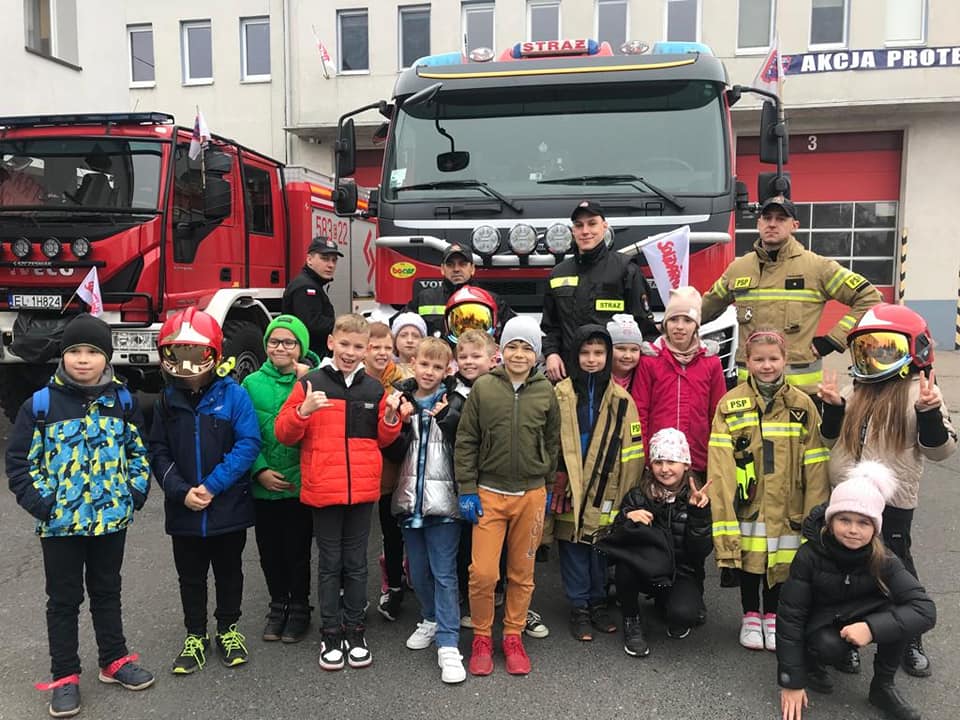 W dniu 14 listopada 2022 r. uczniowie klas I – III z naszej szkoły, odwiedzili Jednostkę Ratowniczo - Gaśniczą Państwowej Straży Pożarnej w Strykowie, dzięki uprzejmości dowódcy jednostki bryg. Marka Banasiaka. Uczniów podzielono na dwie grupy, zostali oni zapoznani z funkcjonowaniem oraz organizacją JRG w Strykowie. Strażacy z wielkim zaangażowaniem i cierpliwością prezentowali sprzęty i wyposażenie wozów strażackich oraz odpowiadali na wszystkie najbardziej dociekliwepytania zadawane przez uczniów. Podkreślili, że samochody pożarnicze należą do pojazdów uprzywilejowanych w ruchu drogowym, ich podstawowymi elementami wyposażenia są syreny oraz lampy do wysyłania sygnałów świetlnych i dźwiękowych. Zaprezentowali także system łączności w postaci radiotelefonów, umożliwiających stały kontakt między strażakami. Strażacy podkreślili, że w wozie przeciwpożarowym jest sprzęt strażacki niezbędny do akcji ratowniczych – nie tylko gaśniczych, ale również drogowych czy wymagających pracy na wysokości. Uczniowie mogli przymierzyć hełm strażacki oraz kurtkę ognioochronną, zobaczyć nożyce hydrauliczne, rozpieracz, różne węże, podnośniki, wyciągarki, podręczny sprzęt gaśniczy, taki jak gaśnice, koce gaśnicze, hydronetki i proszki gaśnicze. Po wielu wrażeniach, z nadzieją na kolejne spotkanie uczniowie podziękowali za ciekawą lekcję wszystkim strażakom z JRG ze Strykowa.