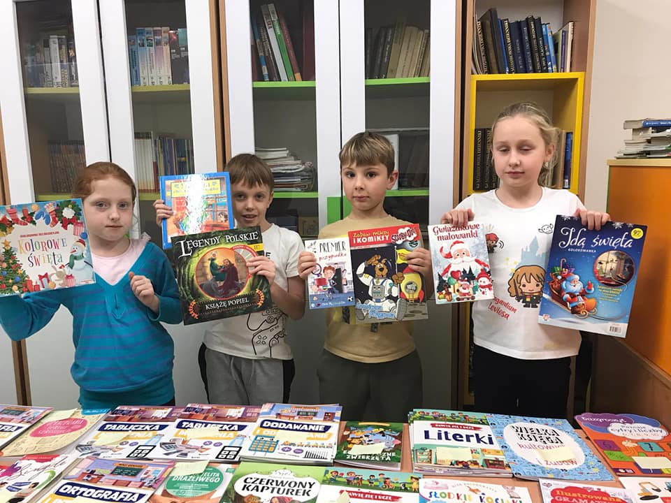 z Księgarnią Taniej Książki z Tuliszkowa. Na uczniów czekały różnorodne baśnie, powieści, opowiadania, poradniki, kolorowanki i książki z naklejkami. Każdy mógł znaleźć coś dla siebie, a ceny były naprawdę wyjątkowe. Największym zainteresowaniem cieszyły się książeczki o tematyce bożonarodzeniowej, mimo że do świąt jeszcze daleko. Mamy nadzieję, że tak samo jak my, Wy również nie możeciesię doczekać kolejnej wiosennej edycji Kiermaszu.