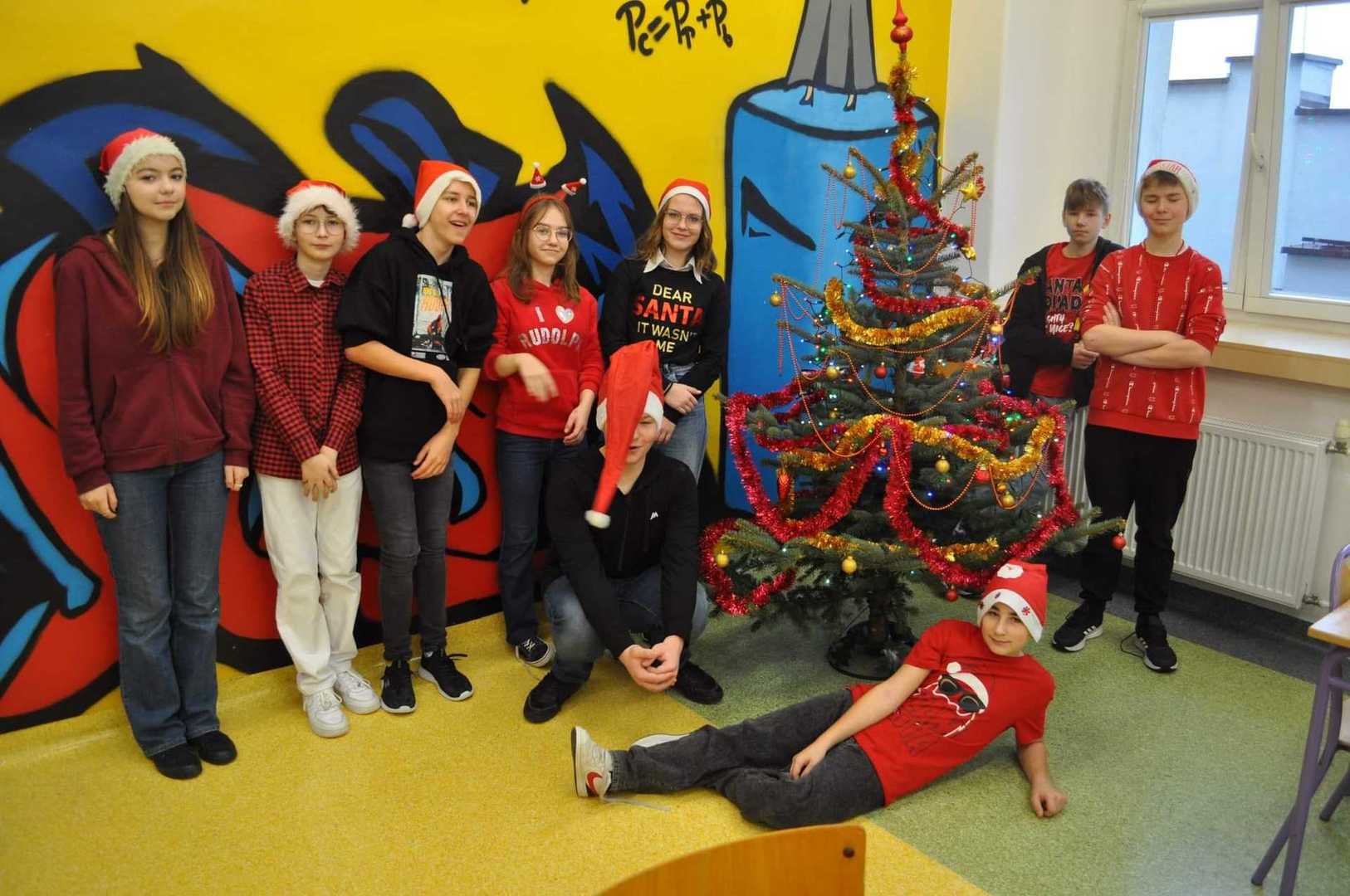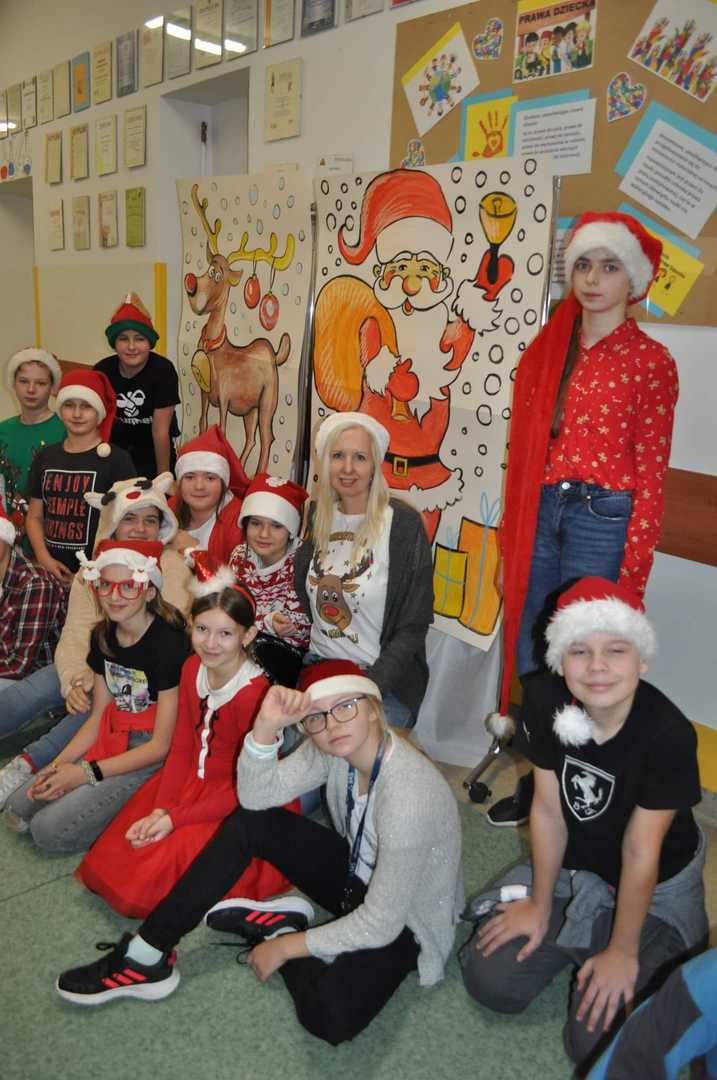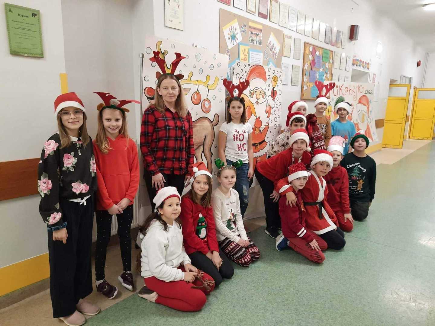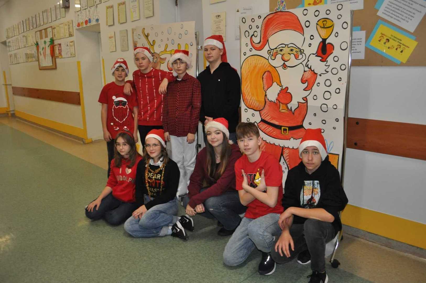 W dniu dzisiejszym 6.12.2022 r. z inicjatywy Samorządu Uczniowskiego wraz z opiekunem panią Aleksandrą Miller nasi uczniowie wzięli udział w obchodach imienin św. Mikołaja - czyli w tzw. Mikołajkach! Kto żyw założył dziś czerwoną czapkę z białym pomponem i wziął udział w szkolnej sesji zdjęciowej Nie brakowało także elfów, reniferów i innych elementów związanych ze Świętami. W wielu klasach stanęły ubrane choinki. A świąteczne drzewko na dolnym korytarzu przystrojone zostało ozdobami zrobionymi przez uczniów na lekcjach plastyki
