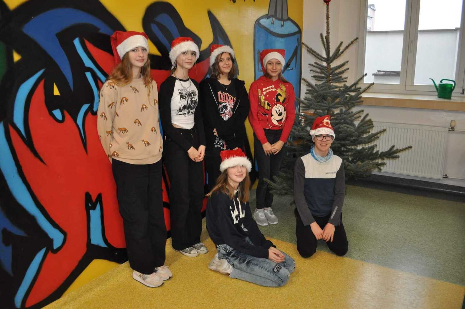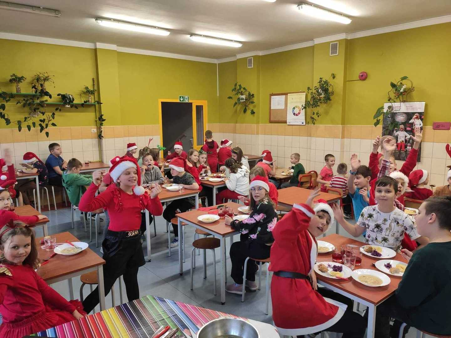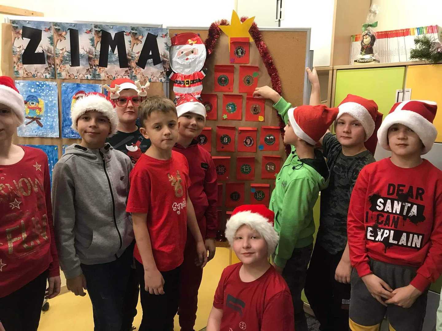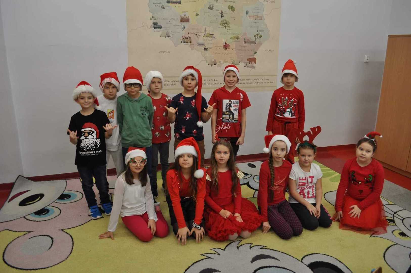 W dniu dzisiejszym 6.12.2022 r. z inicjatywy Samorządu Uczniowskiego wraz z opiekunem panią Aleksandrą Miller nasi uczniowie wzięli udział w obchodach imienin św. Mikołaja - czyli w tzw. Mikołajkach! Kto żyw założył dziś czerwoną czapkę z białym pomponem i wziął udział w szkolnej sesji zdjęciowej Nie brakowało także elfów, reniferów i innych elementów związanych ze Świętami. W wielu klasach stanęły ubrane choinki. A świąteczne drzewko na dolnym korytarzu przystrojone zostało ozdobami zrobionymi przez uczniów na lekcjach plastyki