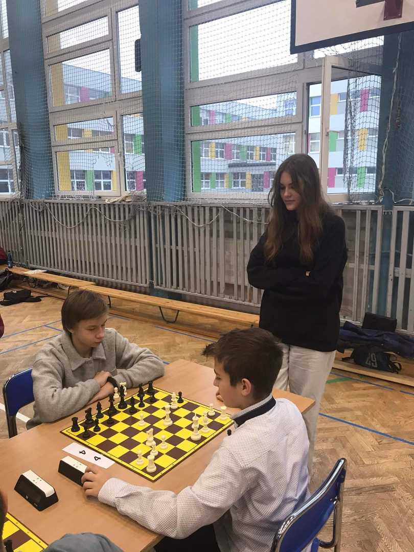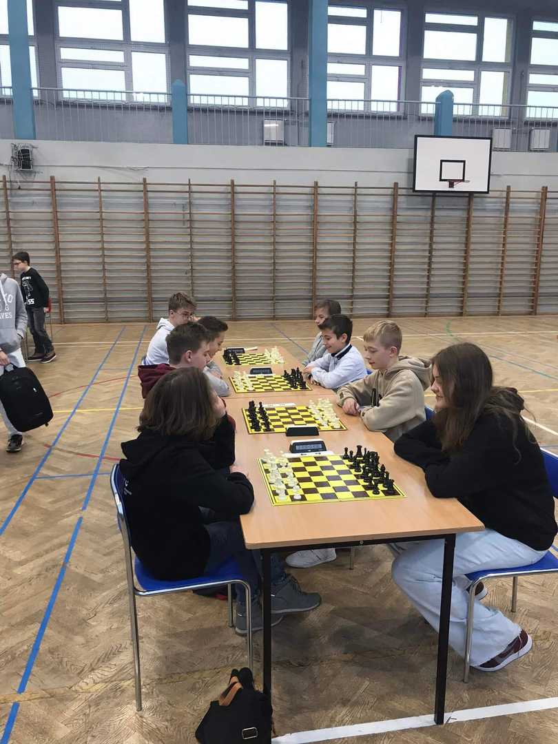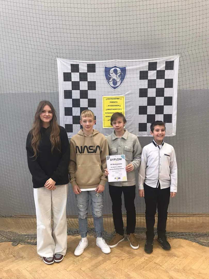 W dniu 6.12.2022 laureaci Gminnych Igrzysk Młodzieży Szkolnej w szachach Milena Markowska, Krystian Szepke, Miłosz Kaczmarek oraz Jan Gocek z klasy VIII wzięli udział w Mistrzostwach Powiatu Zgierskiego w szachach drużynowych w Zgierzu. Pomimo nie zajęcia miejsca na podium zawodnicy wrócili bogatsi o nowe doświadczenia oraz wspaniale wspomnienia.