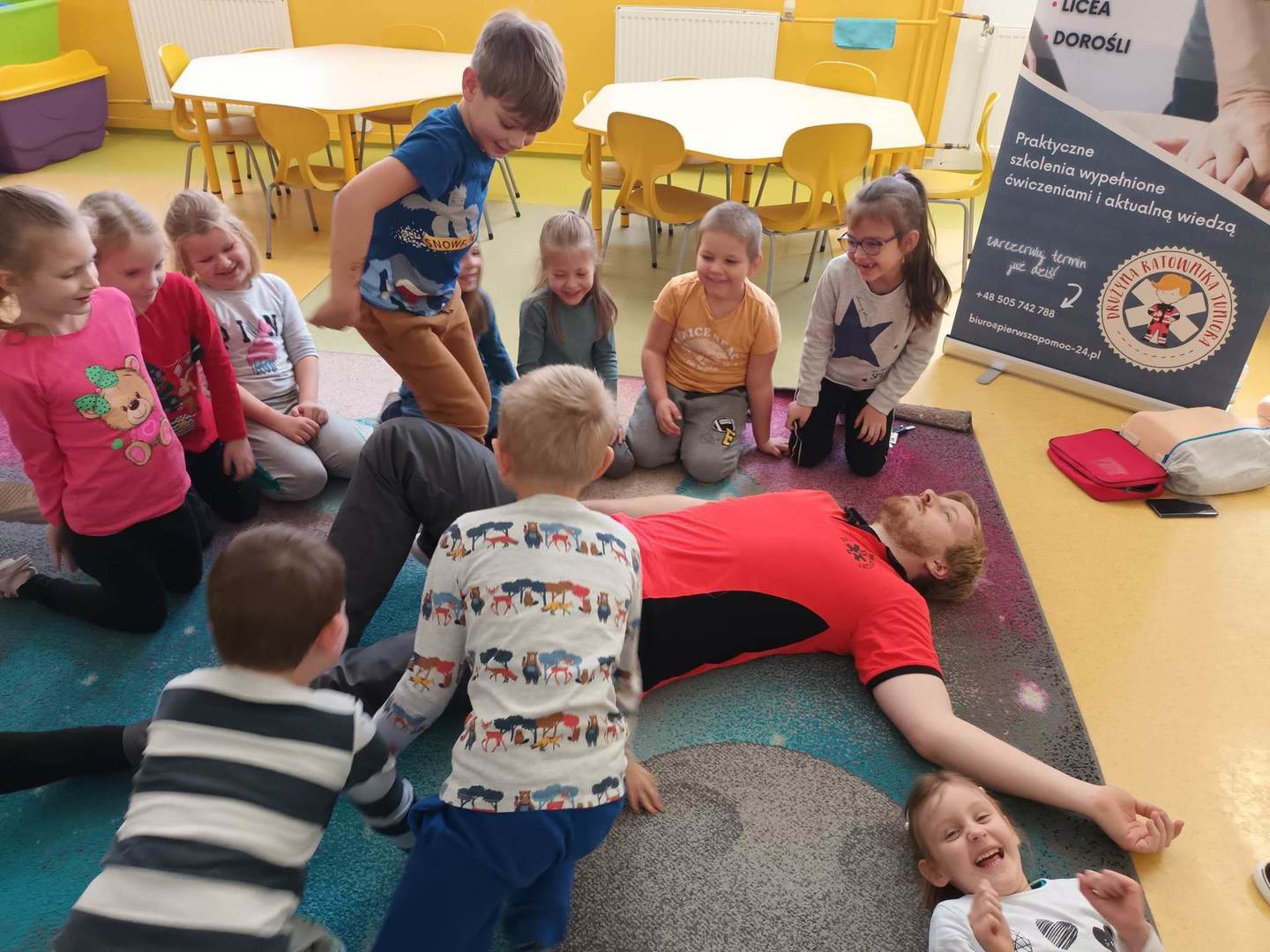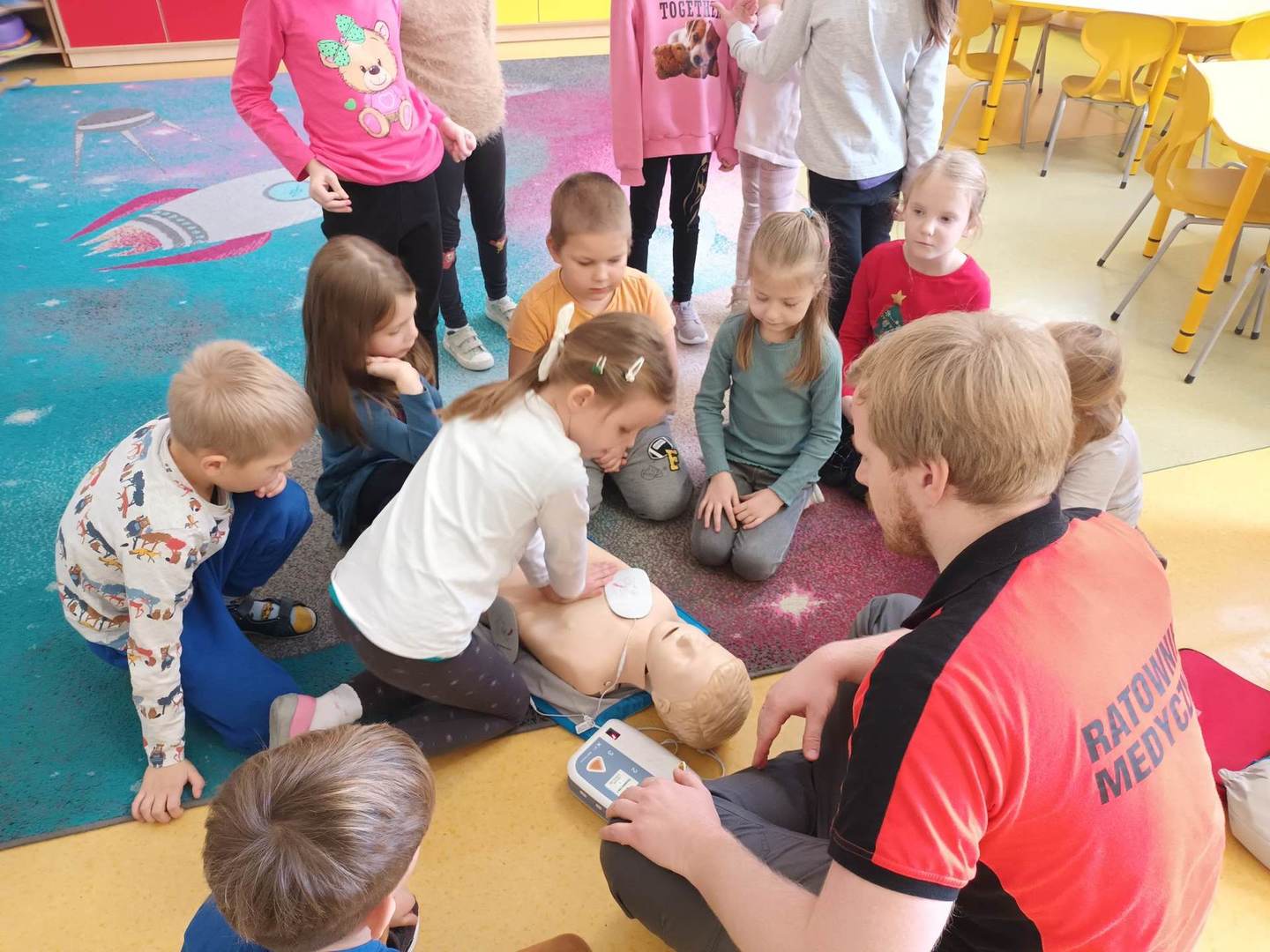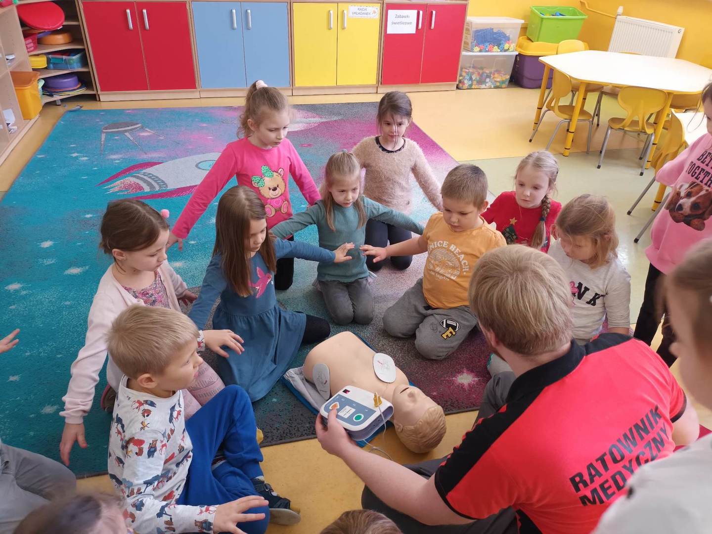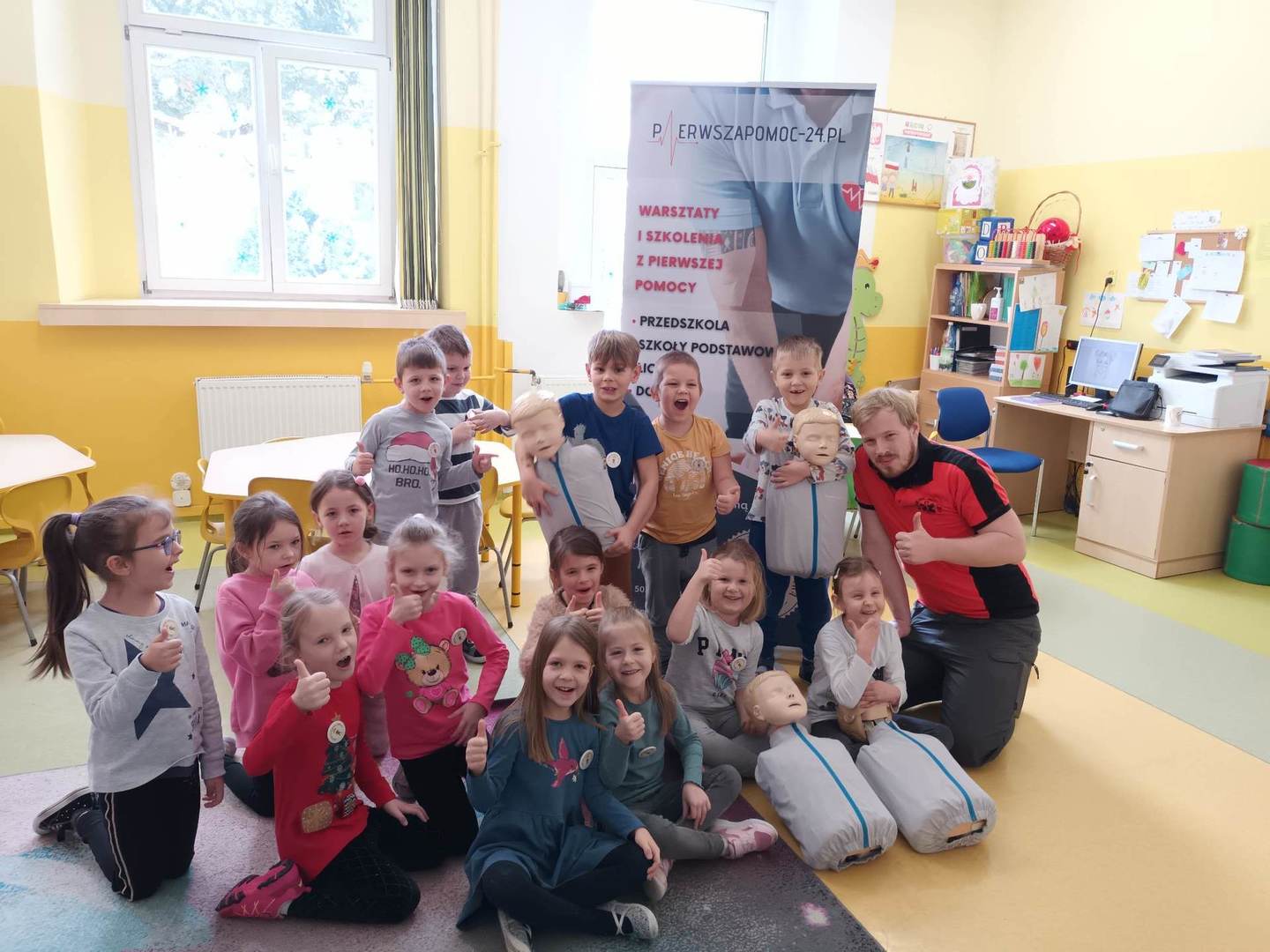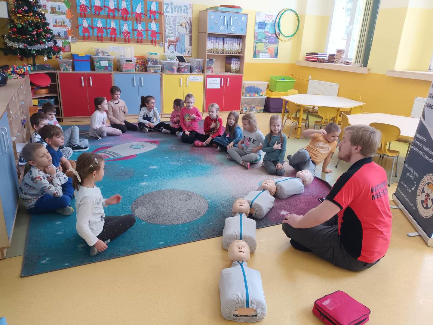 13.12. W naszym przedszkolu zostały zorganizowane zajecia profilaktyczne z zakresu udzielania pierwszej pomocy przedmedycznej. Pan Michał Ewertowski- ratownik medyczny pokazał przedszkolakom w jaki sposób udzielić poszkodowanemu pierwszej pomocy i jak właściwie reagować w sytuacjach zagrożenia życia i zdrowia. Mamy nadzieję,że przeprowadzone warsztaty pozwolą dzieciom zaznajomić się z problematyką udzielania pierwszej pomocy ![]()