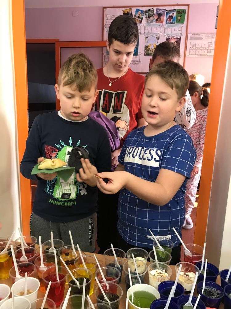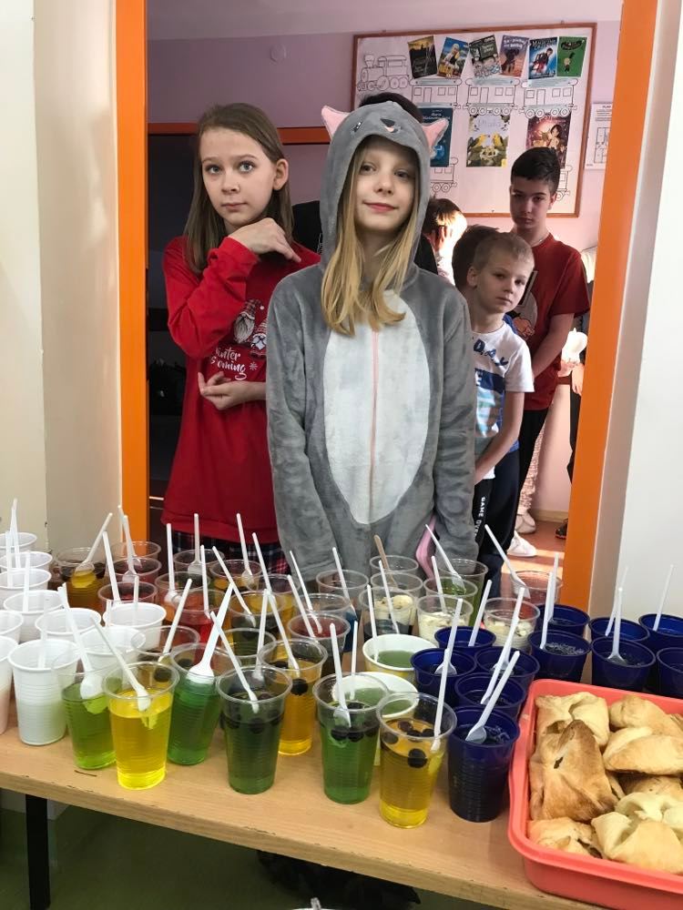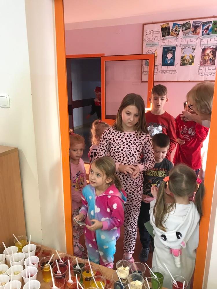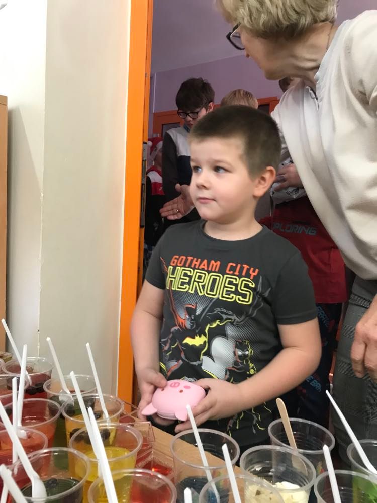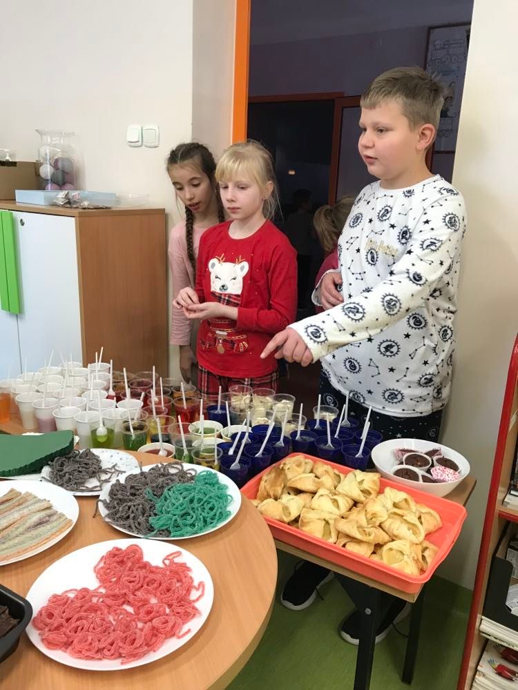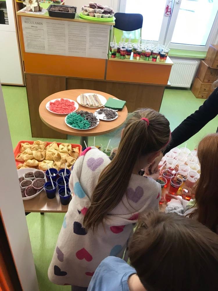 z rodzicami przygotowali różnorodne smakołyki. Największym powodzeniem cieszyły się przepyszne galaretki, gorące tosty, smakowite babeczki, kwaśne żelki, świeże soki oraz domowe ciasta. Całkowity dochód z akcji zostanie przeznaczony na rehabilitację i pomoc dla ucznia naszej szkoły. Dzięki zaangażowaniu całej społeczności szkolnej udało nam się zebrać naprawdę znaczącą kwotę.