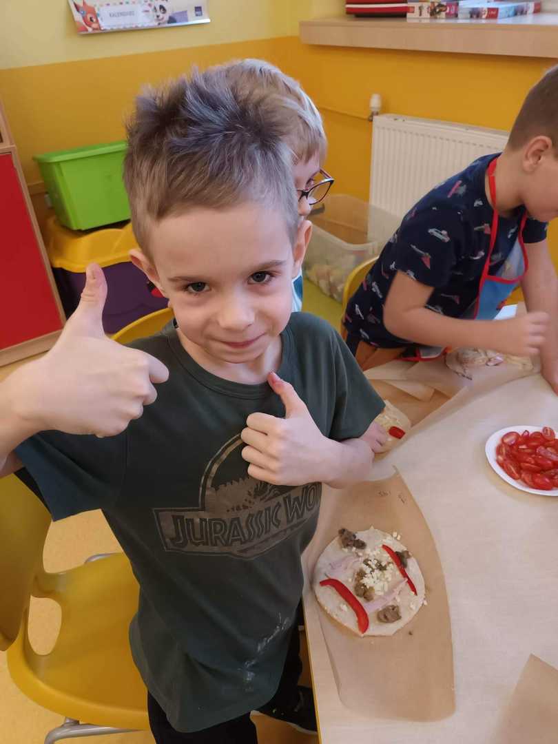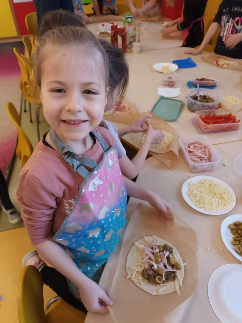 Pizza jest jedną z najpopularniejszych potraw na świecie. Uwielbiają ją zarówno dzieci, jak i dorośli, dlatego dzisiaj w naszej grupie obchodziliśmy Międzynarodowy Dzień Pizzy. Podczas zajęć dzieci poznały krótką historię pizzy, dowiedziały się, z jakiego kraju pochodzi oraz poznały składniki, które są niezbędne do jej przygotowania, a następnie samodzielnie wykonywały swoje placki. To był pyszny dzień!