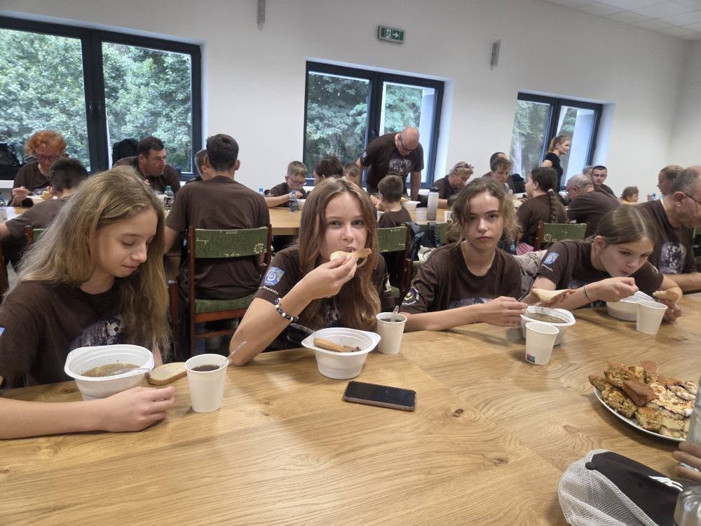 Następnie ruszyliśmy w trasę powrotną do Starych Skoszew. Na mecie rajdu w remizie OSP czekała na nas smaczna zupa, ciasto i gorąca herbata. Nasi uczniowie i rodzice wzięli udział w konkursie wiedzy historycznej i jednocześnie wygrali historyczne gry edukacyjne, które zasilą zbiory szkolnej świetlicy. Każdy uczestnik otrzymał koszulkę rajdowy.