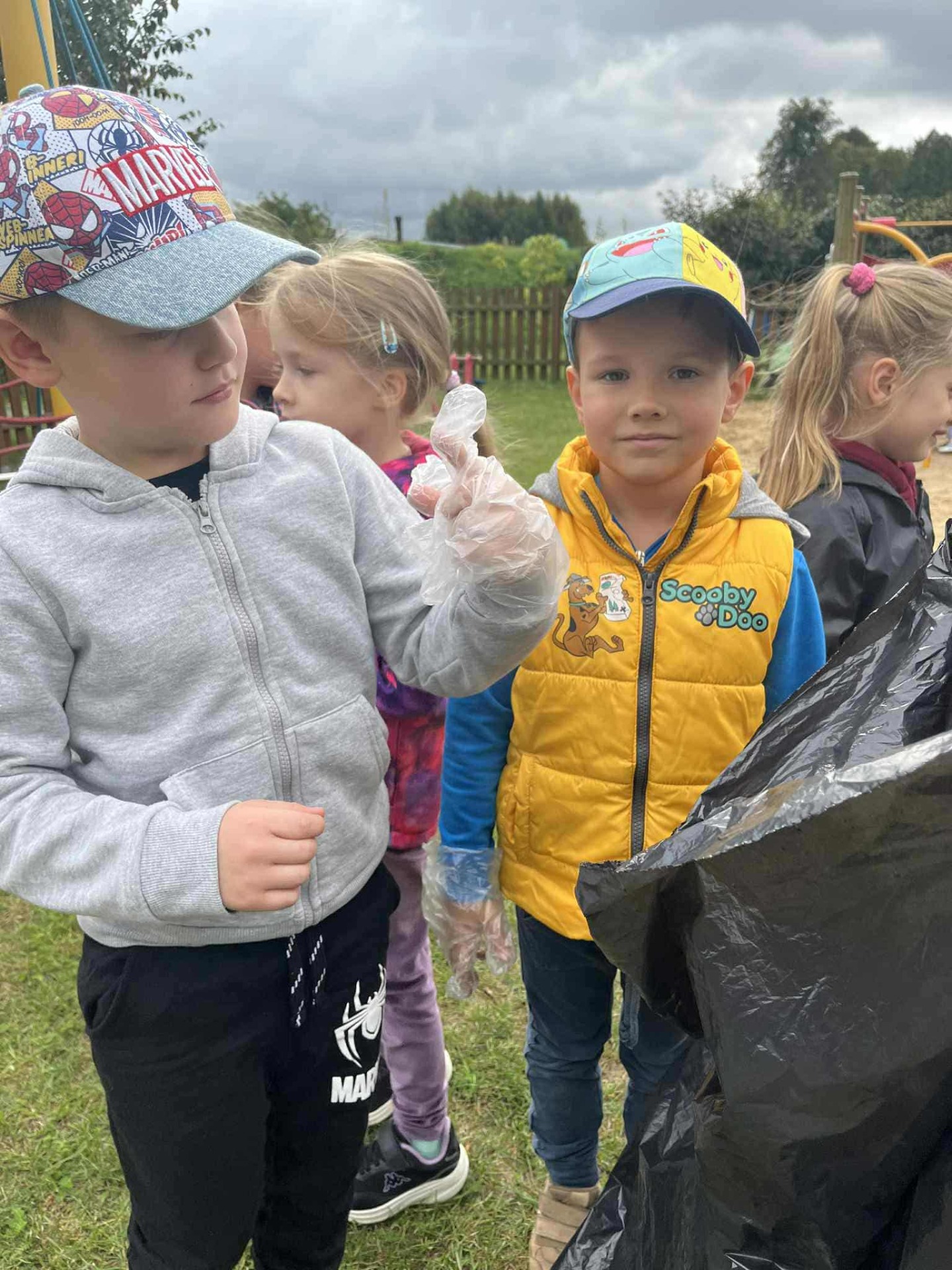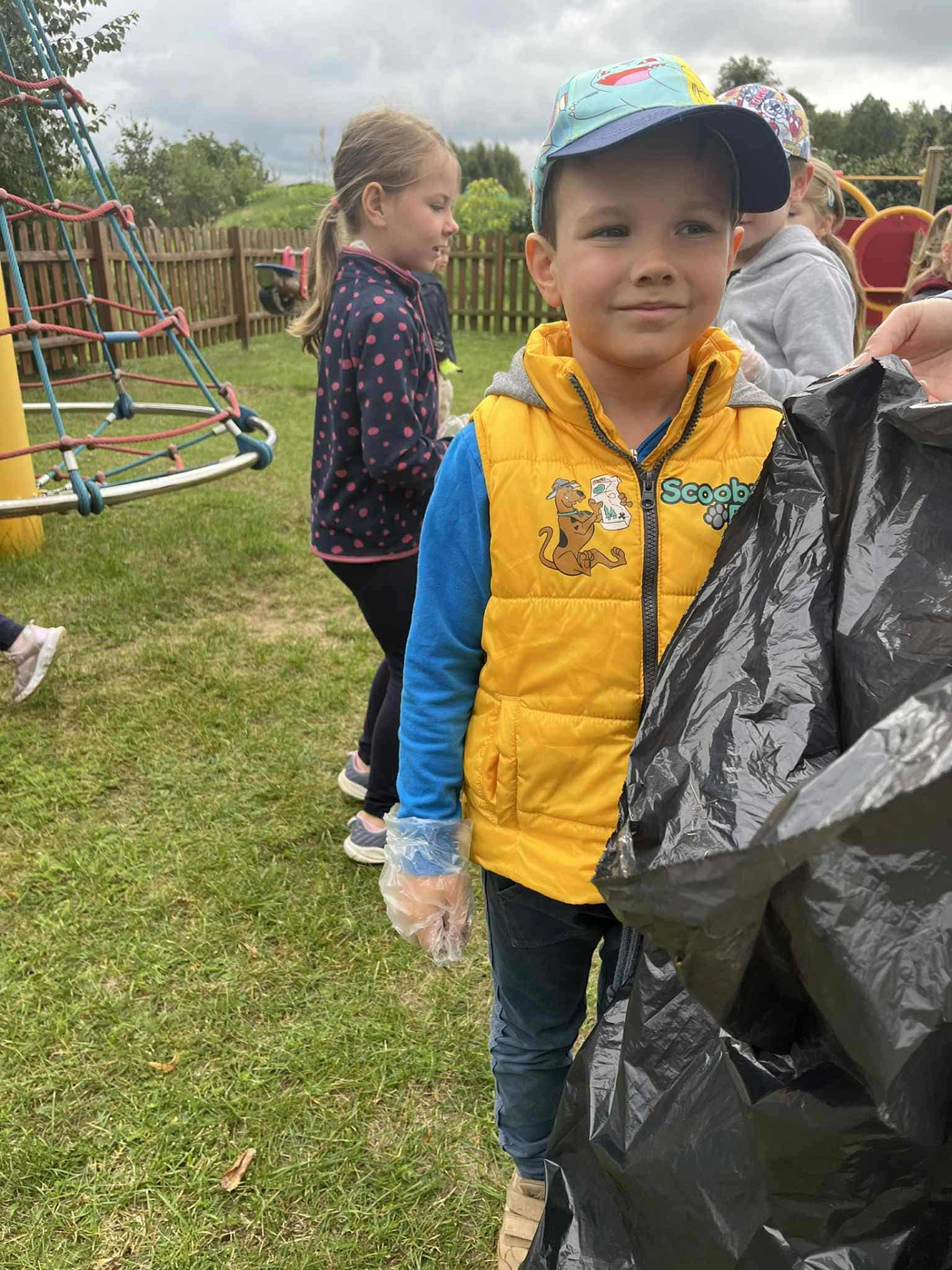 W dniu 19 września dzieci z naszego oddziału przedszkolnego już po raz kolejny wzięły udział w sprzątaniu okolicy wokół naszego przedszkola partycypując w ten sposób w ogólnopolskiej akcji „Sprzątania świata”.