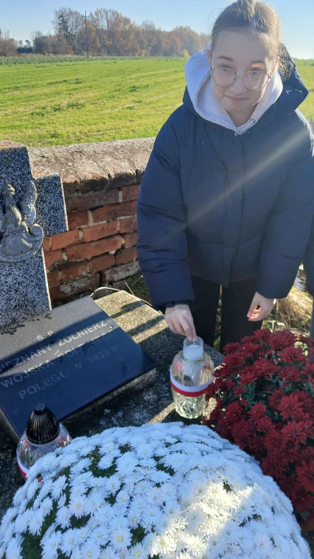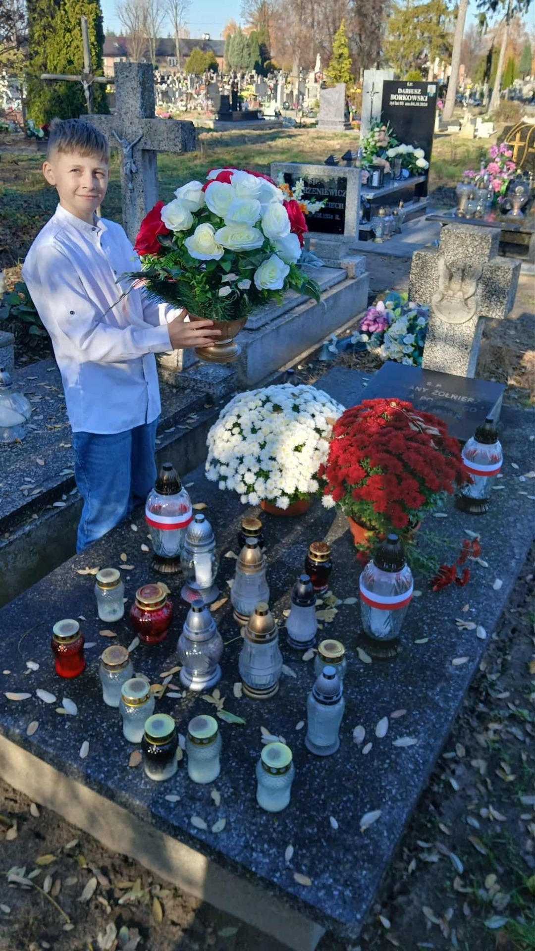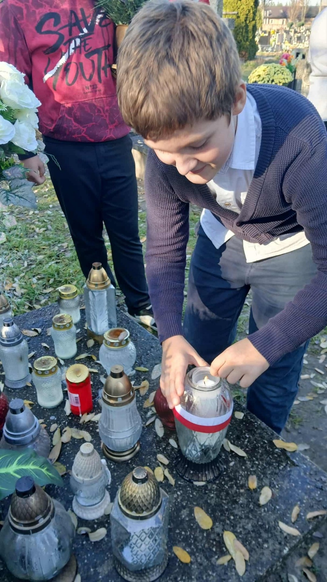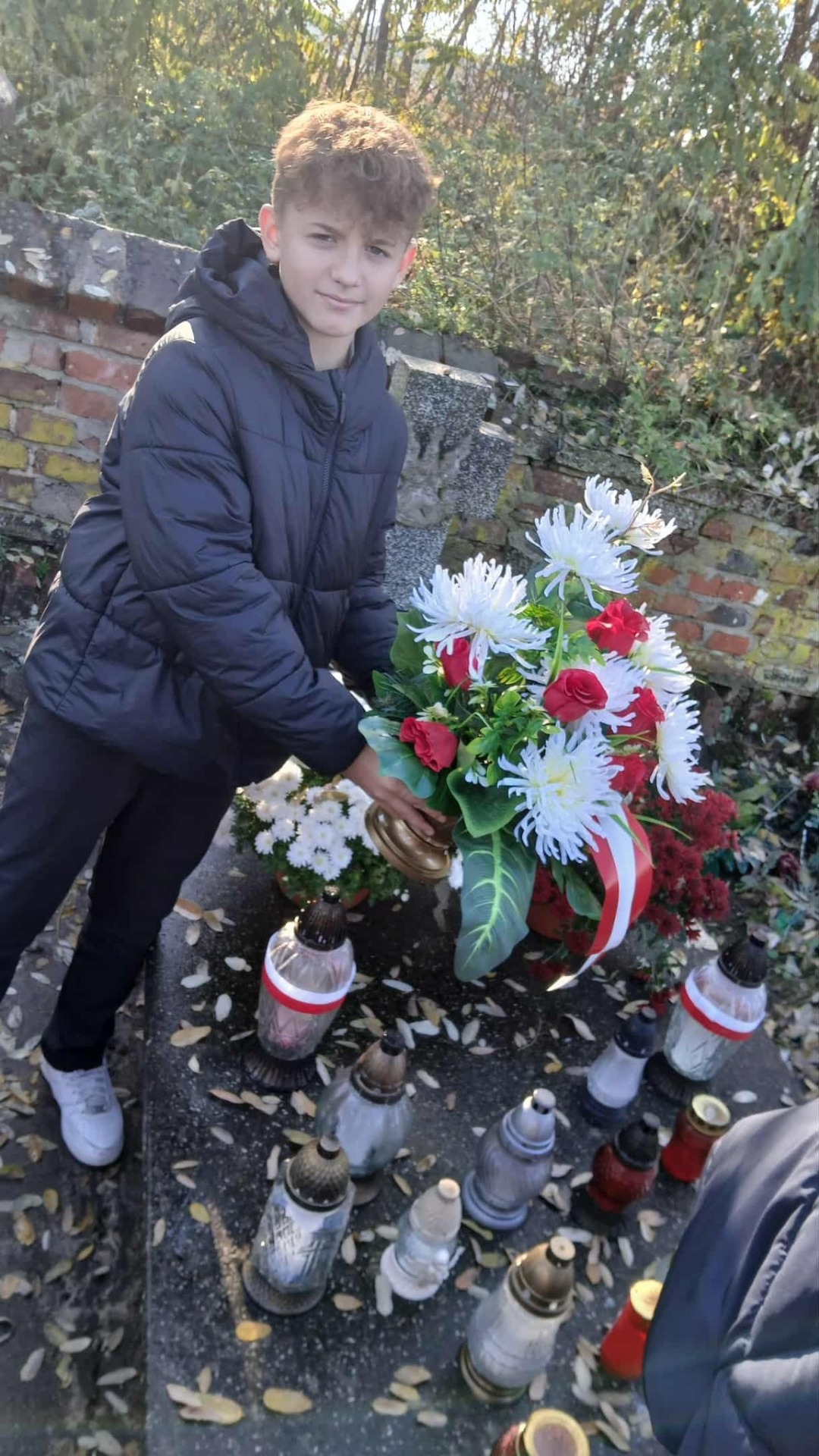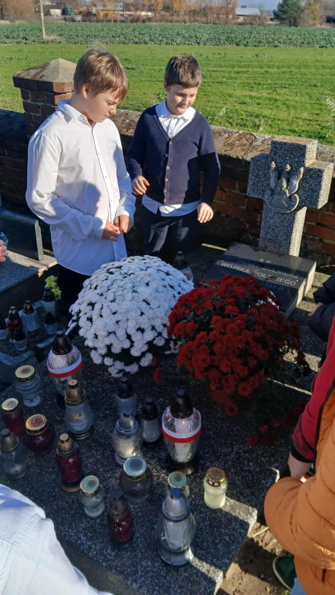 W dniu dzisiejszym 7.11.25 reprezentanci naszej szkoły (klasa 6) wraz z opiekunem samorządu szkolnego - p. Aleksandrą Miller- Sujecką udali się na pobliski cmentarz w celu złożenia kwiatów i zapalenia zniczy na grobach bohaterskich Polaków walczących w obronie naszej niepodległości. Kwiaty i znicze otrzymaliśmy od władz Gminy Stryków, która w ten symboliczny sposób pragnęła uczcić pamięć bohaterów w związku ze zbliżającymi się obchodami kolejnej rocznicy odzyskania przez Polskę niepodległości ![]()