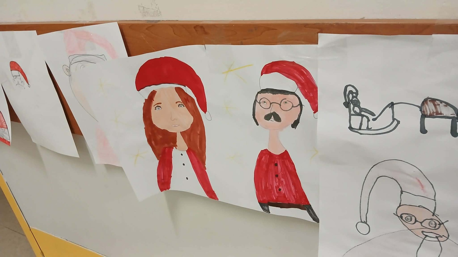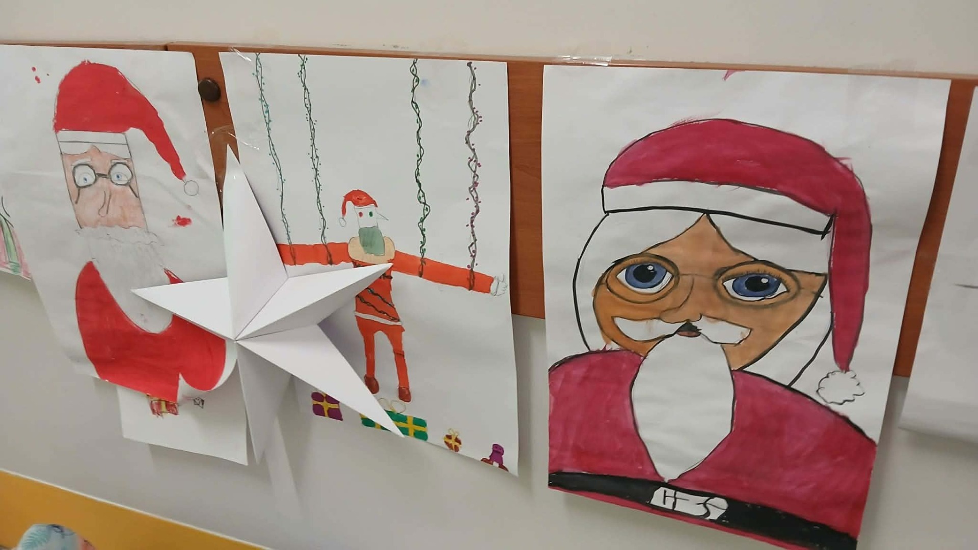 Korytarz szkolny ozdobiły różnorodne portrety świętego wykonanane przez dzieci na lekcjach plastyki. Można śmiało stwierdzić, że dziś Mikołaje i Mikołajki zawładnęły naszą szkołą