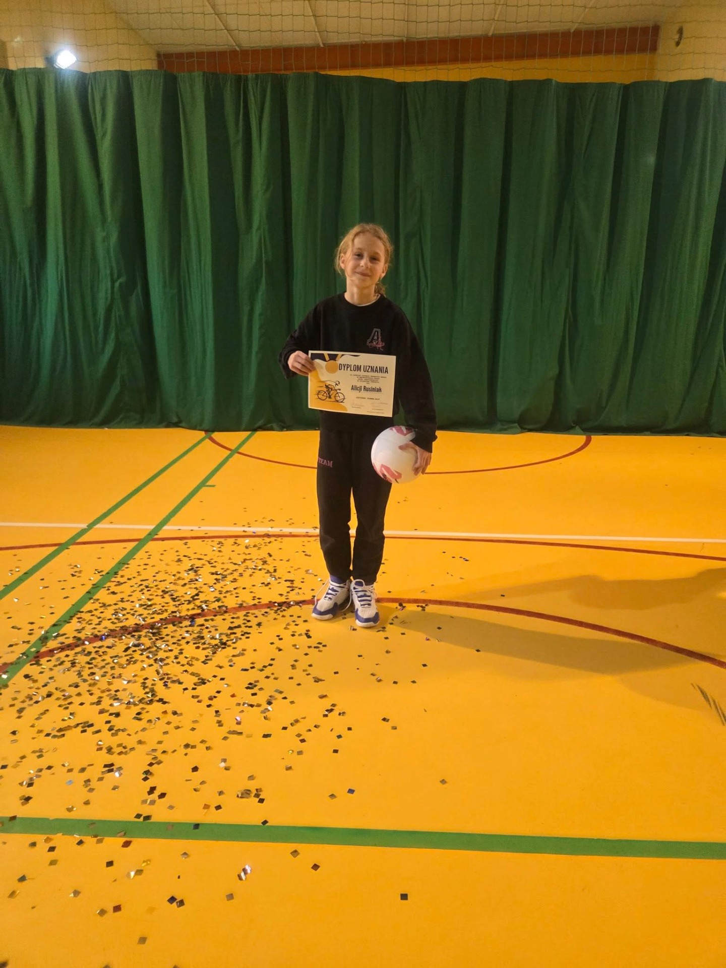 Nasza uczennica klasy 4 Alicja Rusiniak w miniony weekend ( 6-7 grudnia) reprezentowała naszą szkołę w Mistrzostwach Polski Szkół Podstawowych w kolarstwie torowym, które rozgrywały się w Pruszkowie. Alicja zdobyła aż 4 srebrne medale, w czterech konkurencjach: 250 m z lotu, scratch, wyścig eliminacyjny i wyścig punktowy. Z tej okazji w czartek na naszej sali gimnastycznej odbył się apel, w czasie którego pani dyrektor Ewa Piórkowska pogratulowała Alicji sukcesów sportowych oraz życzyła wytrwałości w dalszych treningach. Do gratulacji przyłączyła się cała społeczność uczniowska. Alicja od cztrech miesięcy trenuje kolarstwo w Klubie Kolarskim LUKS DWÓJKA STRYKÓW.