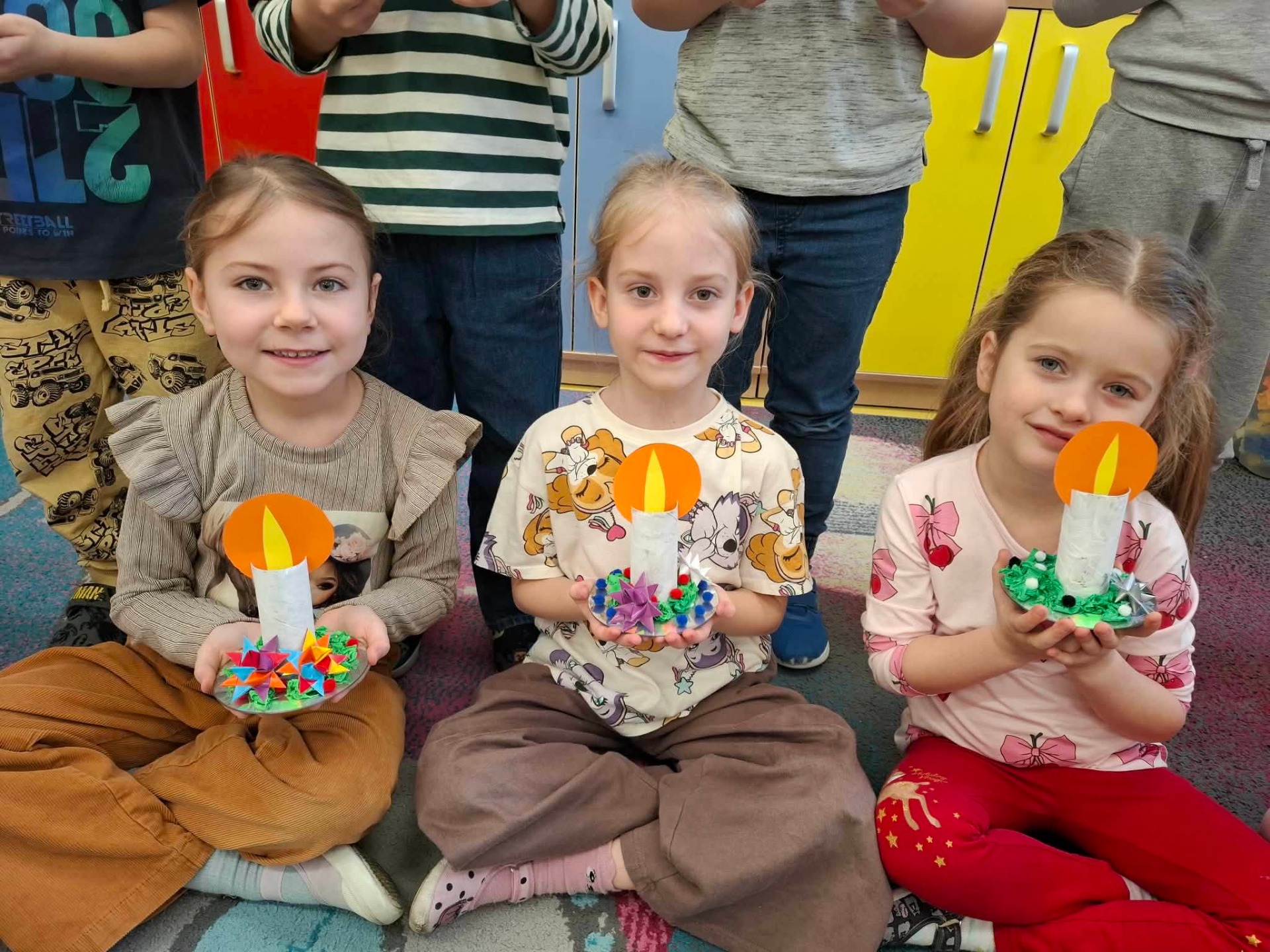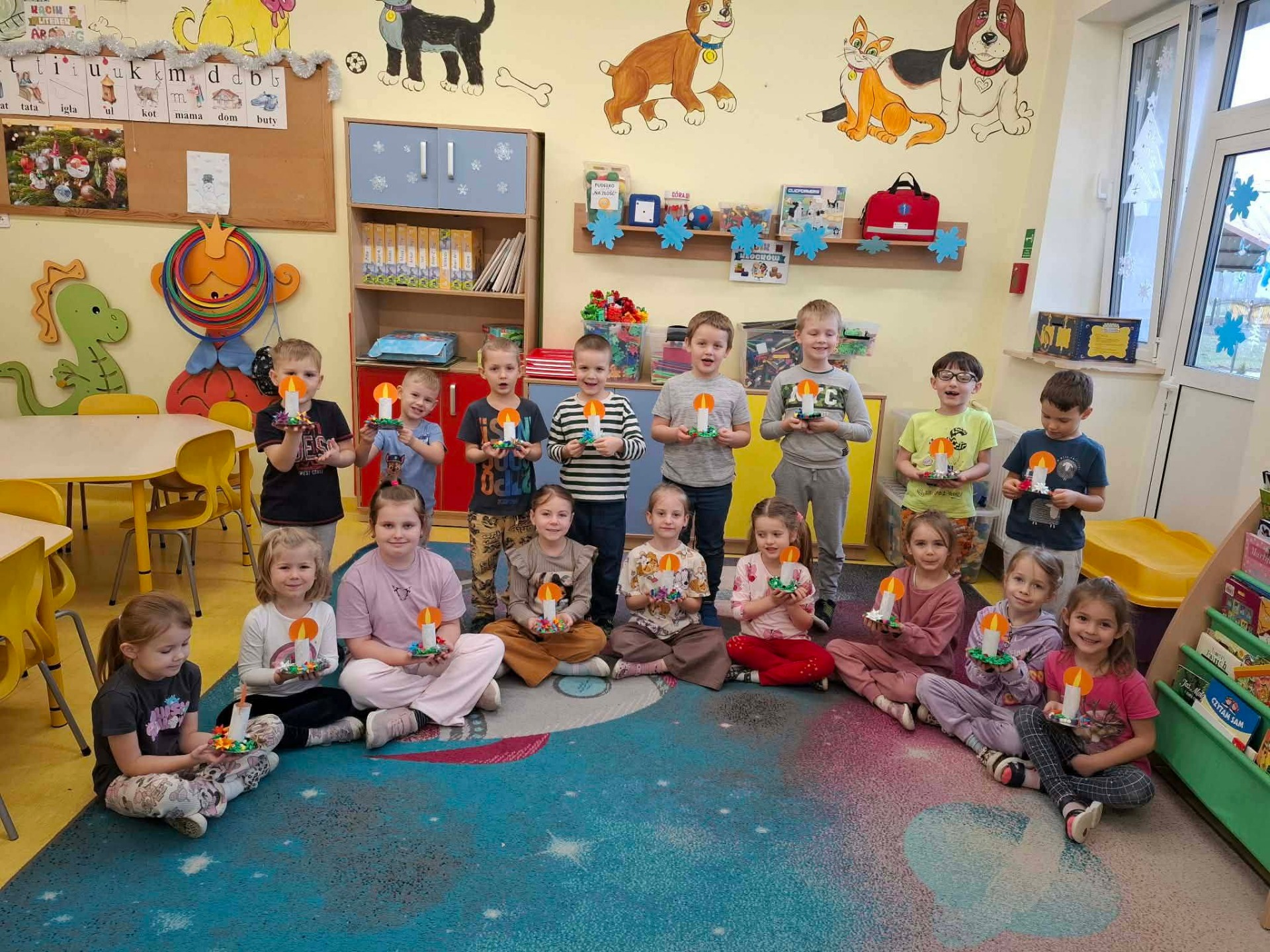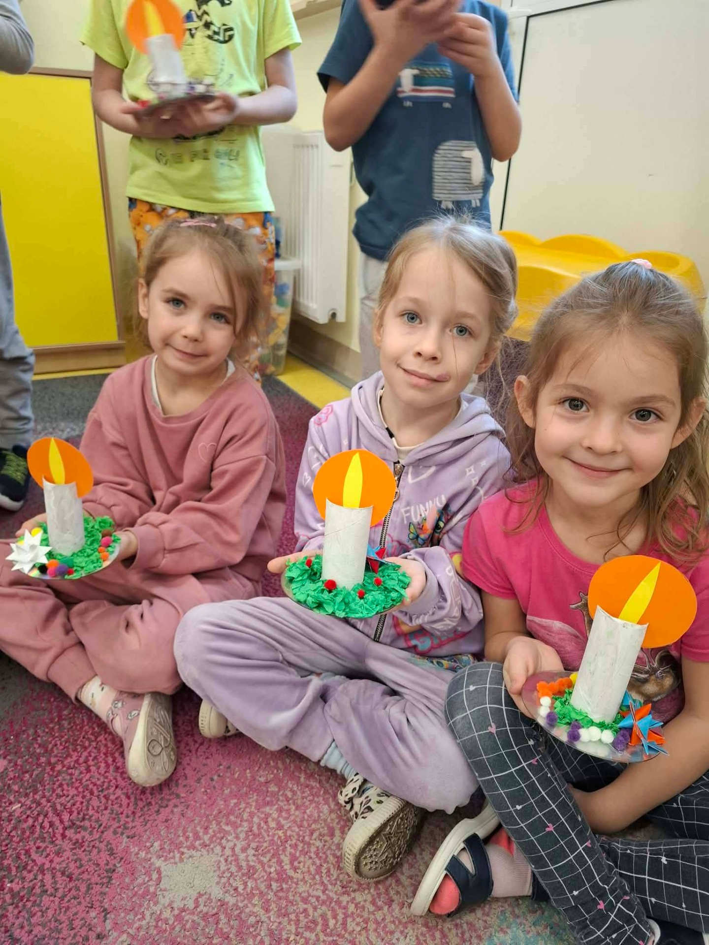 W tym roku przedszkolaki zrobiły także unikatowe świąteczne świeczniki (dziękujemy P. Stanisławie Turek za pomoc i P. Kasi Franaszek za nadzorowanie pracy ), które opiekunka Samorządu- P. Ola Miller wraz z katechetą P. Zbyszkiem Motylem dostarczyli do DPS.